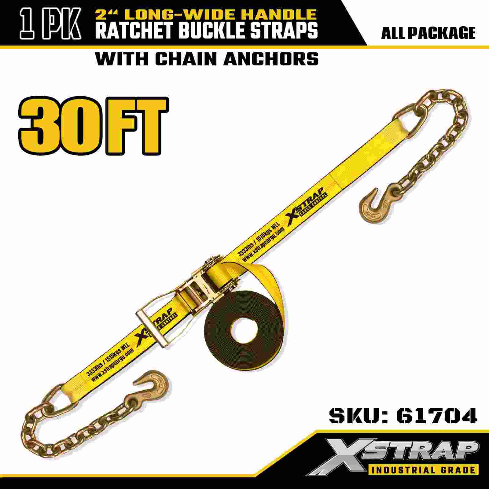 এক্সস্ট্র্যাপ 61704 লং ওয়াইড হ্যান্ডেল র্যাচেট বাকল স্ট্র্যাপ 2" x 30ft (1-প্যাক) - চেইন হুক, 10,000 পাউন্ড ব্রেক স্ট্রেন্থ, কার্গো ও ইকুইপমেন্ট পরিবহনের জন্য হেভি ডিউটি টাই ডাউন স্ট্র্যাপ