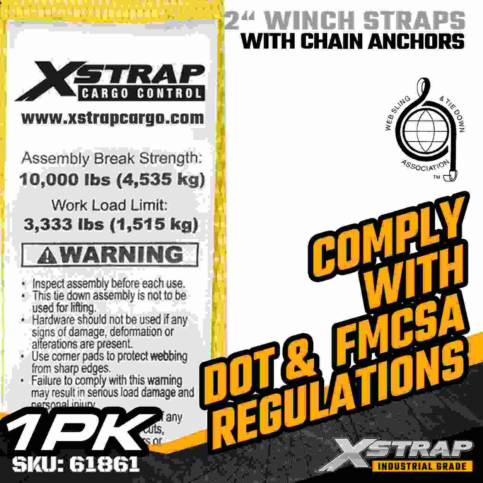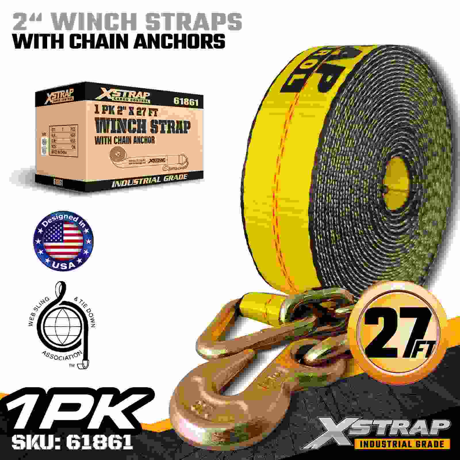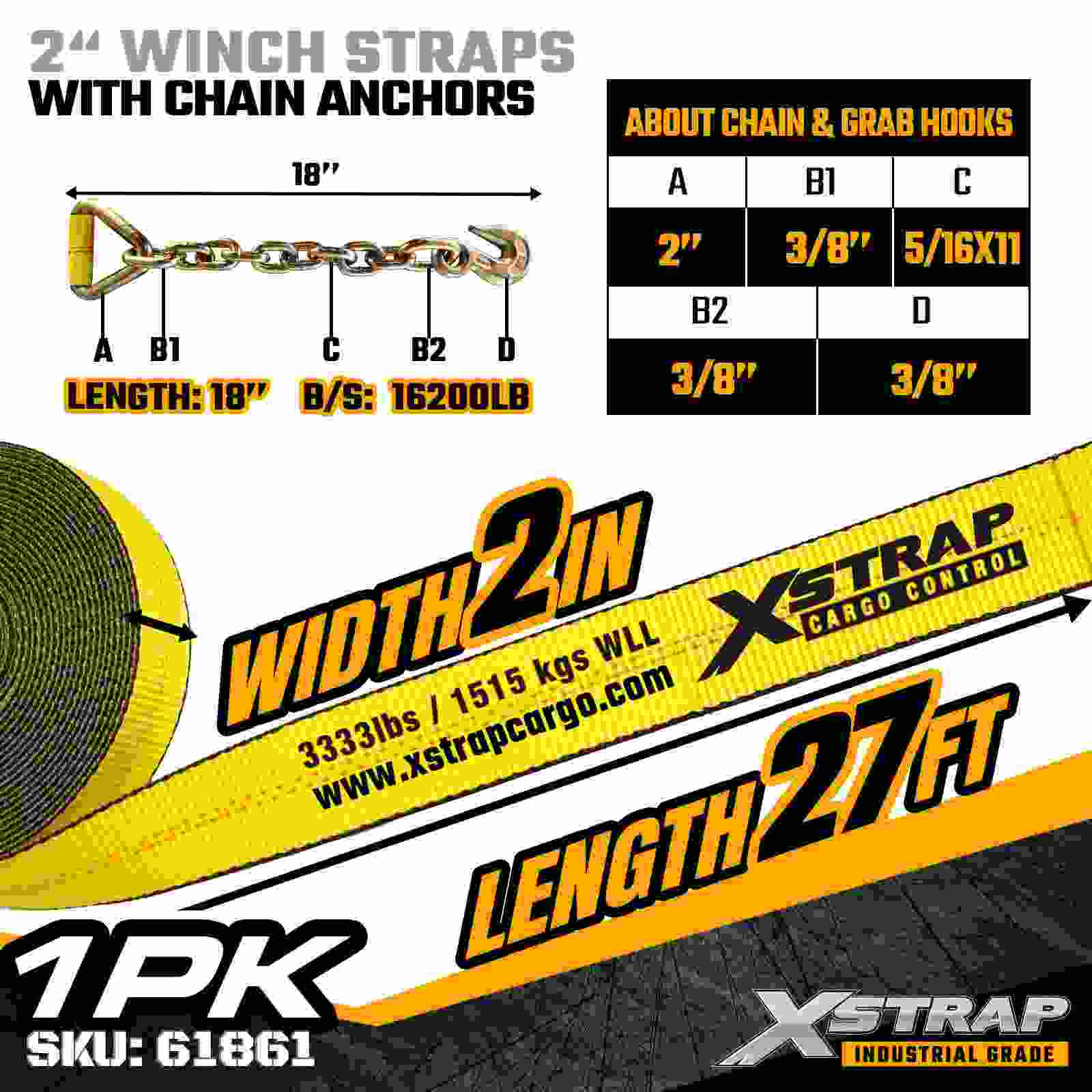 চেইন অ্যাঙ্কর সহ 2" × 27 ফুট স্ট্যান্ডার্ড উইঞ্চ স্ট্র্যাপ