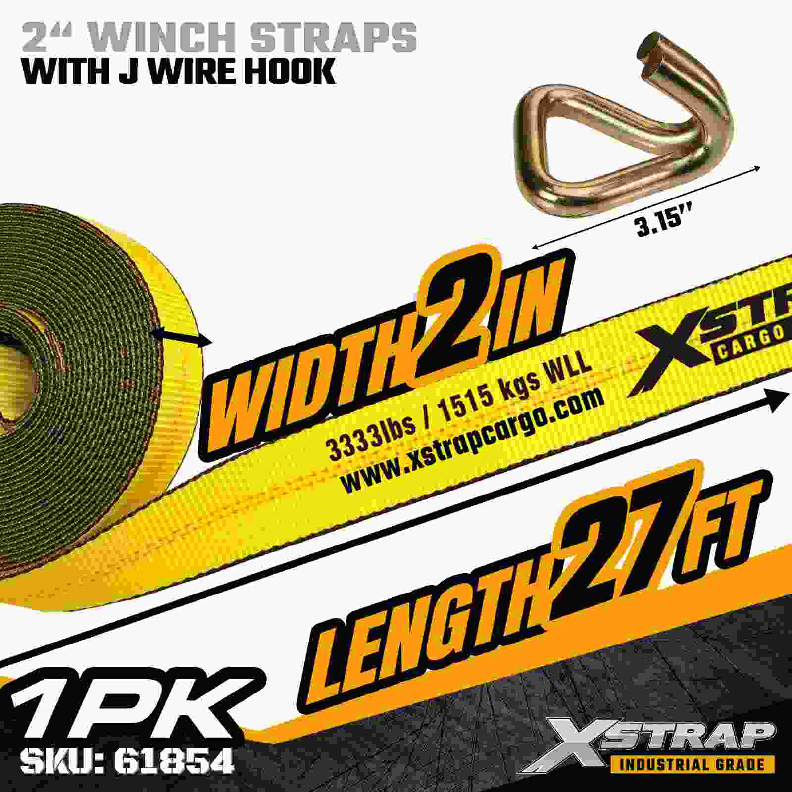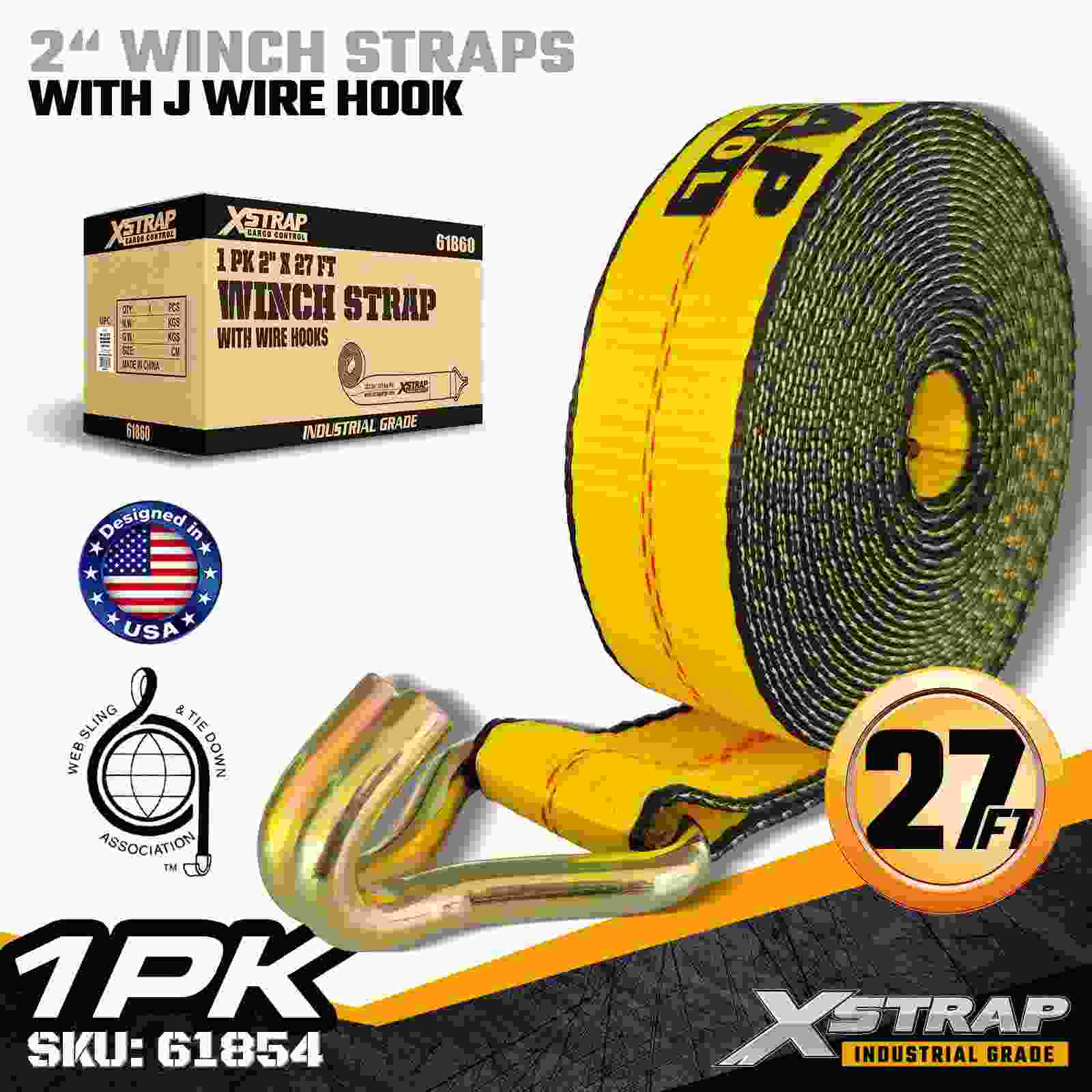 তারের হুক সহ 2" × 27 ফুট স্ট্যান্ডার্ড উইঞ্চ স্ট্র্যাপ