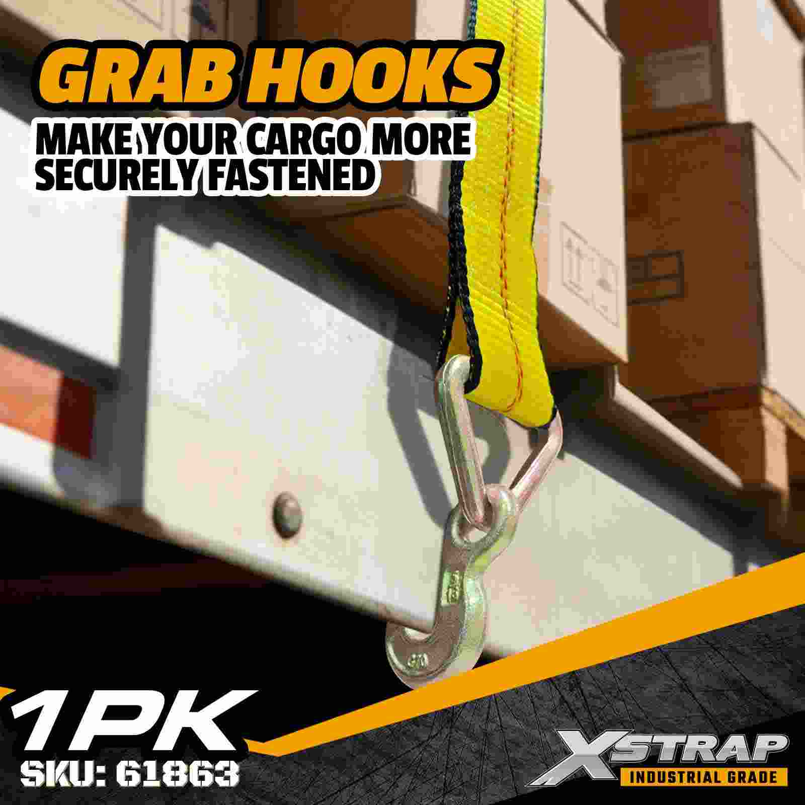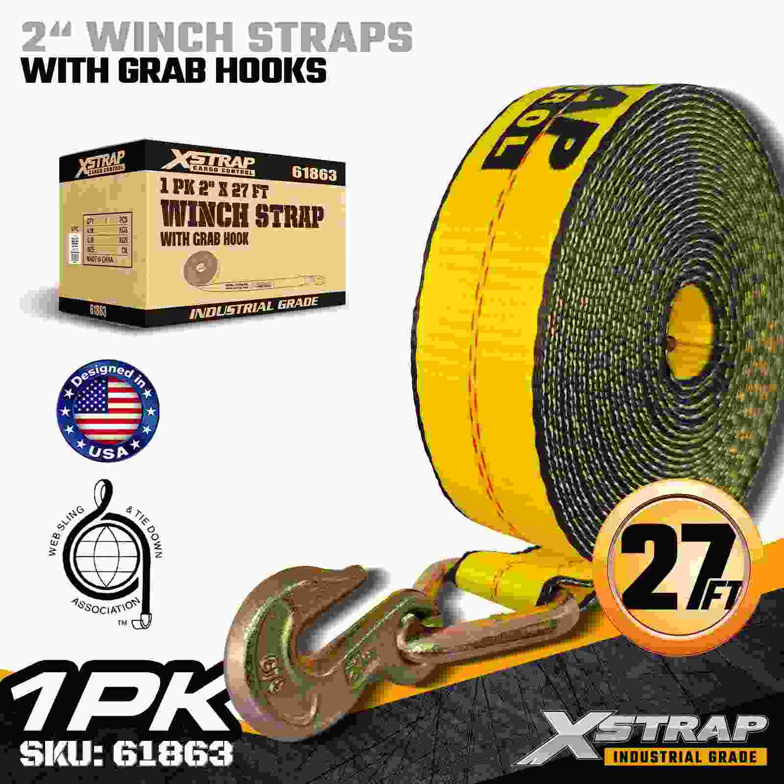 গ্র্যাব হুক সহ 2" × 27 ফুট স্ট্যান্ডার্ড উইঞ্চ স্ট্র্যাপ