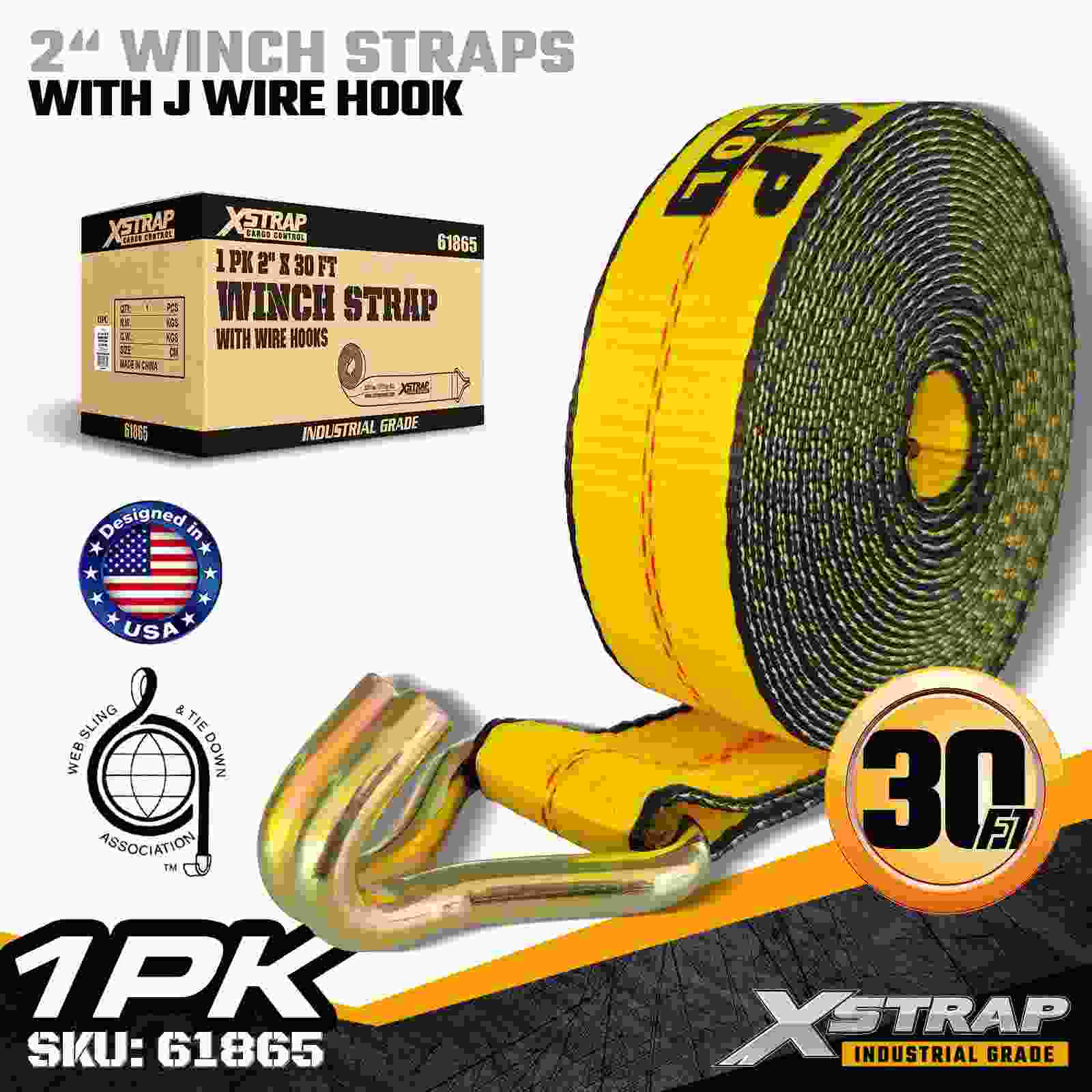 তারের হুক সহ 2" × 30 ফুট স্ট্যান্ডার্ড উইঞ্চ স্ট্র্যাপ
