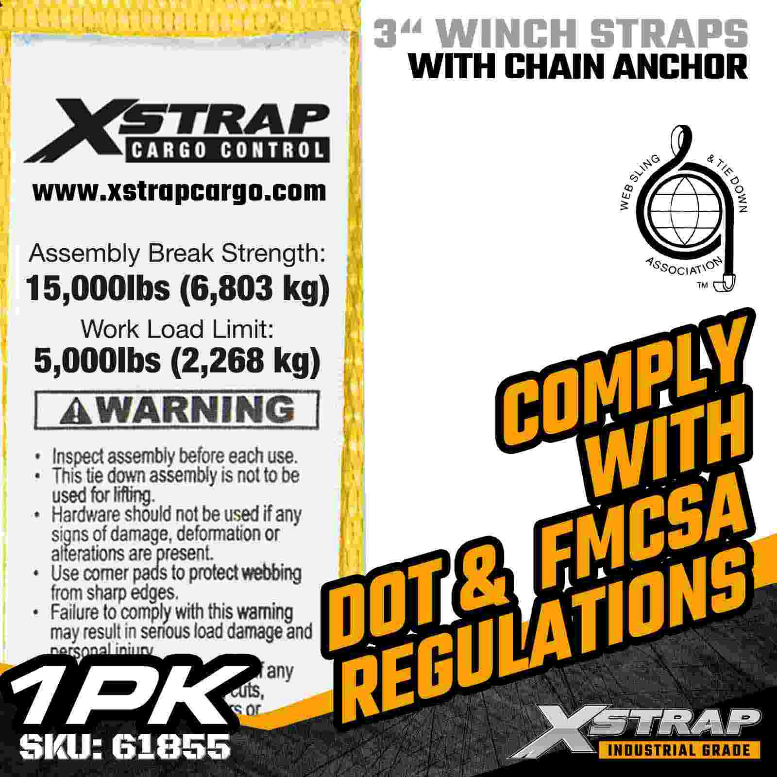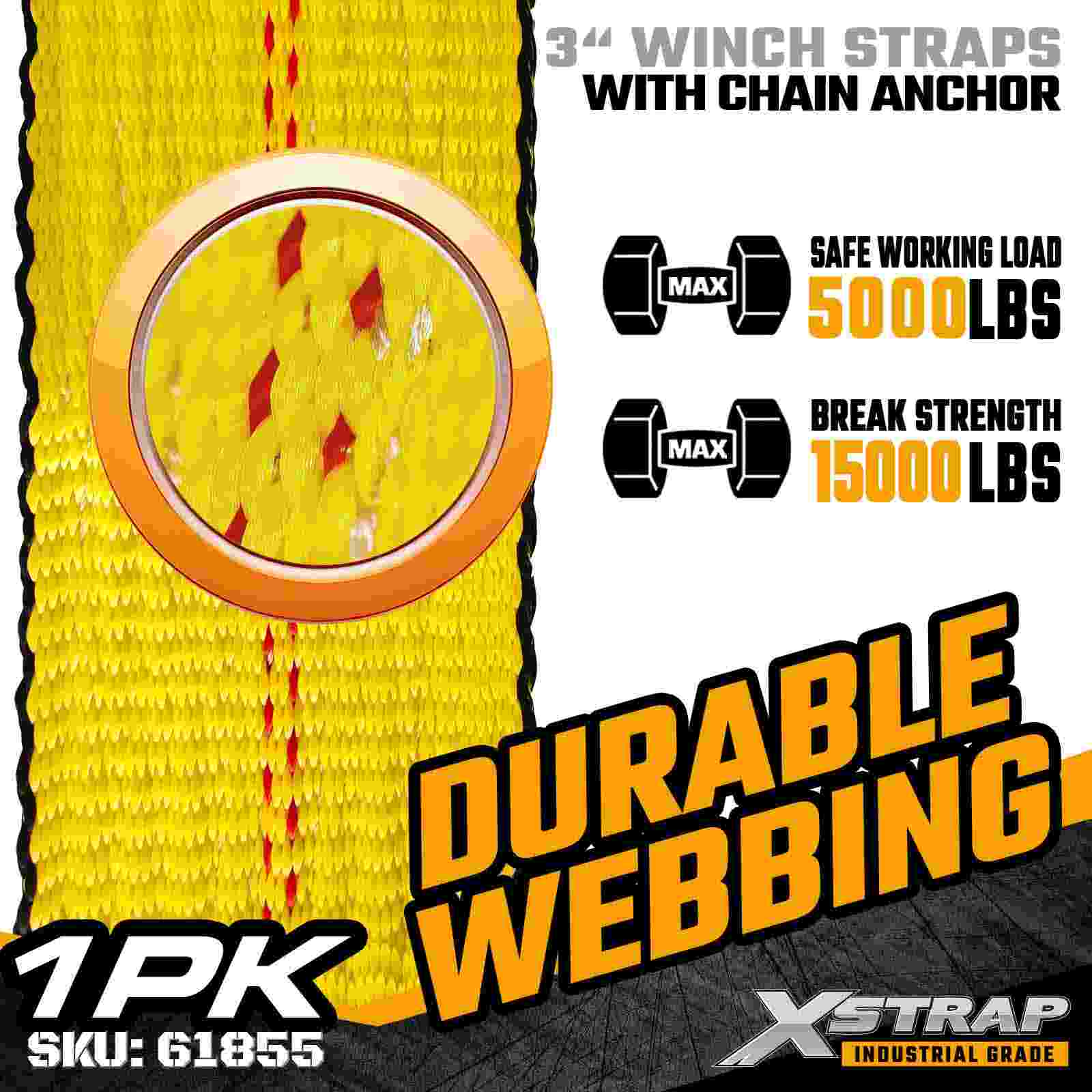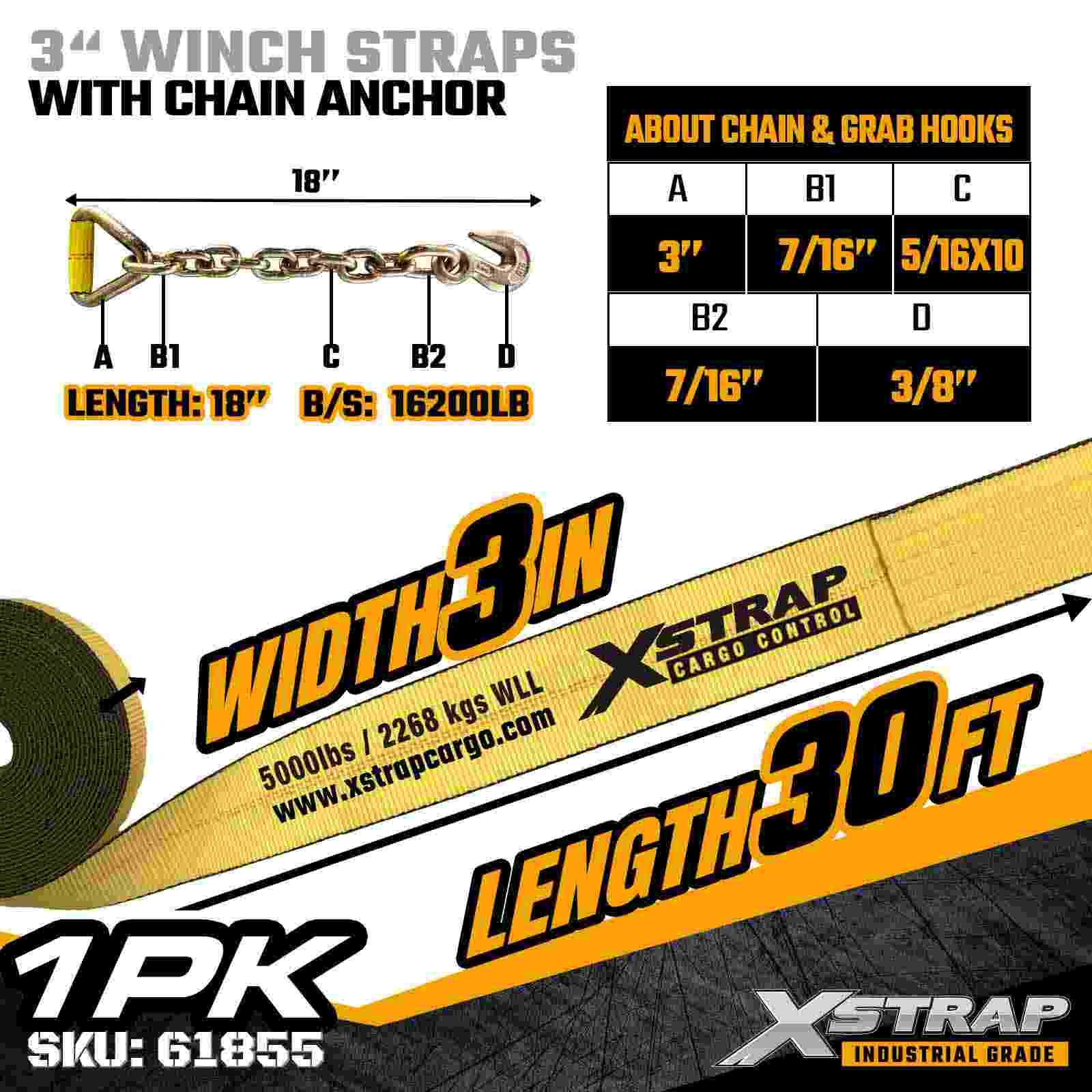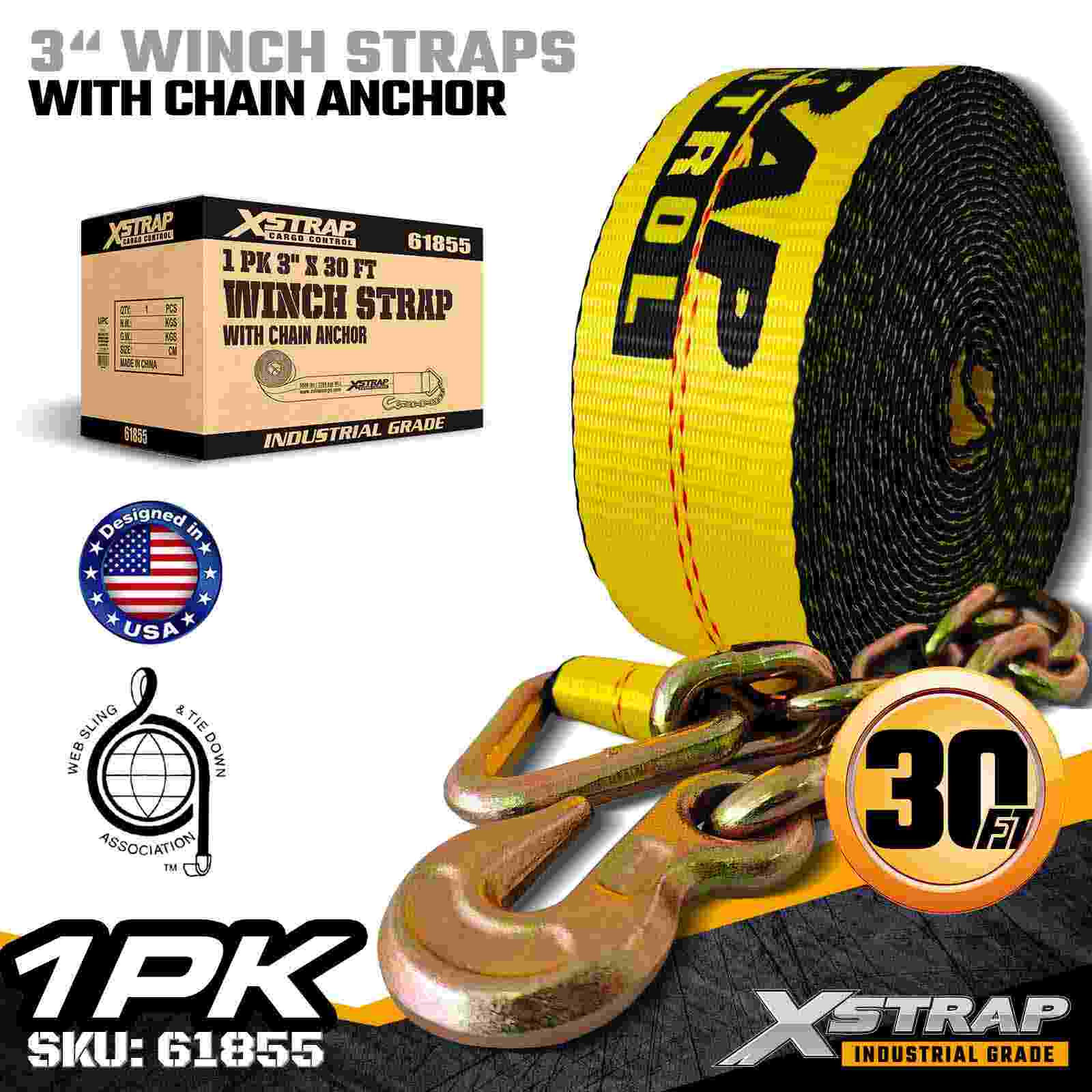 চেইন অ্যাঙ্কর সহ 3" × 30 ফুট স্ট্যান্ডার্ড উইঞ্চ স্ট্র্যাপ