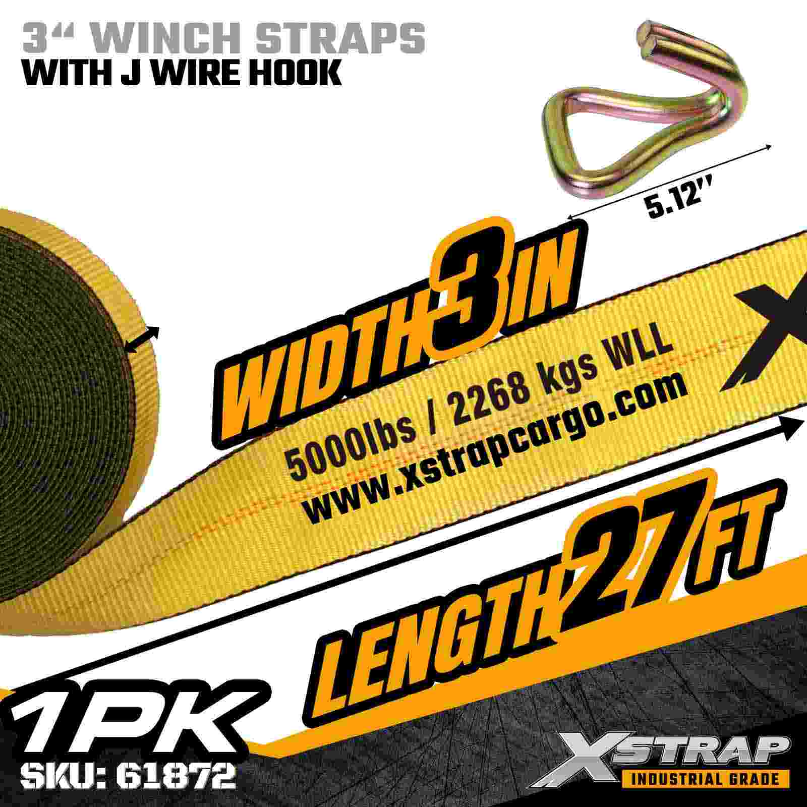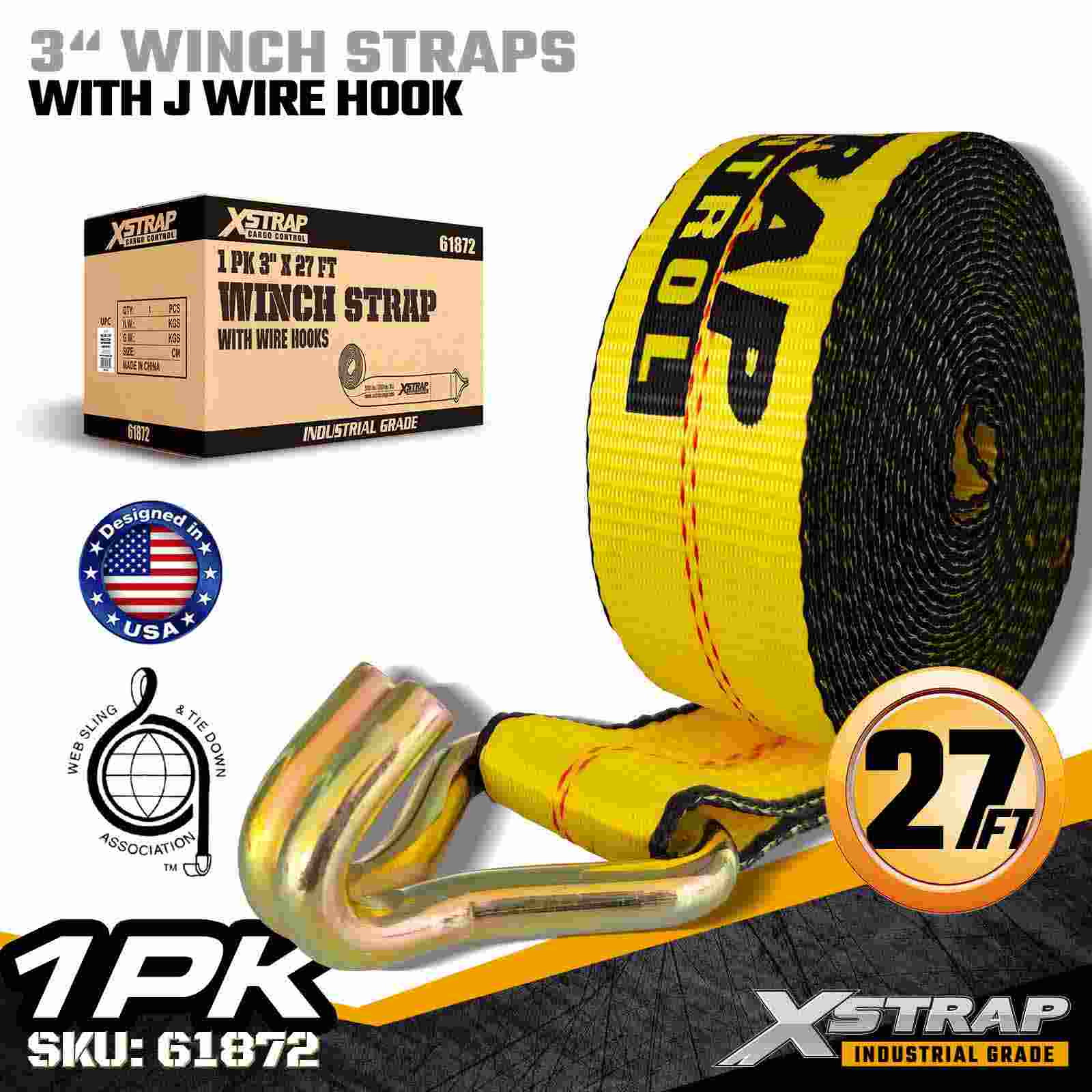 তারের হুক সহ 3" × 27 ফুট স্ট্যান্ডার্ড উইঞ্চ স্ট্র্যাপ