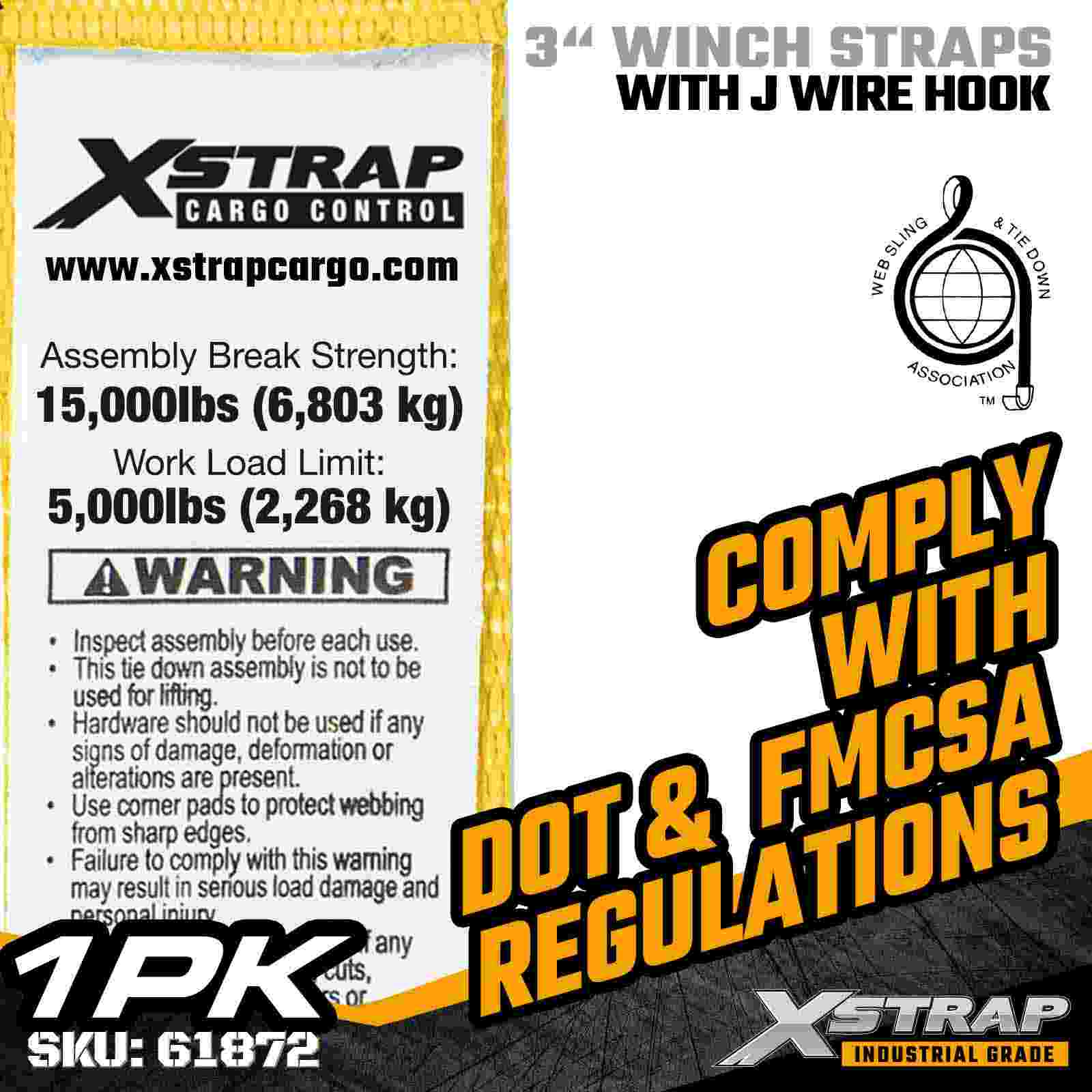 Xstrap 61872 3" × 27 ফুট স্ট্যান্ডার্ড উইঞ্চ স্ট্র্যাপ হল একটি ভারী-শুল্ক কার্গো সুরক্ষা সমাধান যা ফ্ল্যাটবেড ট্রেলার এবং শিল্প পরিবহনের জন্য ডিজাইন করা হয়েছে৷ একটি রিইনফোর্সড ওয়্যার হুক এবং অতিরিক্ত-প্রশস্ত 3-ইঞ্চি পলিয়েস্টার ওয়েবিং দিয়ে সজ্জিত, এই 3 ইঞ্চি উইঞ্চ স্ট্র্যাপটি একটি 5,000 লিটার, 01,000 লিটার ওয়ার্ক প্রদান করে। ব্রেক স্ট্রেংথ দ্য ওয়্যার হুক ডিজাইন নমনীয় সংযুক্তি বিকল্পগুলি অফার করে, এটি অপারেটরদের জন্য আদর্শ করে, যাদের দৈনিক হাউলিং অপারেশনের সময় দ্রুত, বহুমুখী সংযোগ পয়েন্টের প্রয়োজন হয়৷