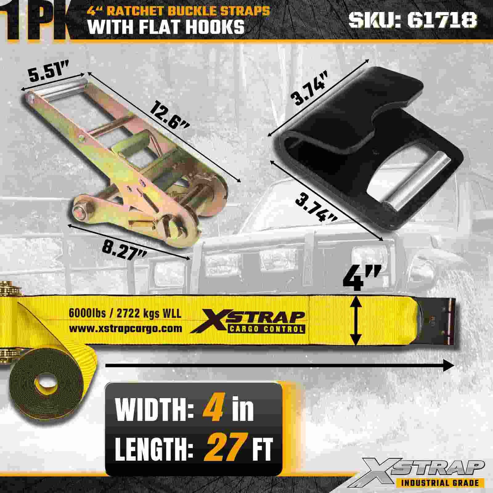 ফ্ল্যাট হুক সহ 4" × 27 ফুট র্যাচেট বাকল স্ট্র্যাপ