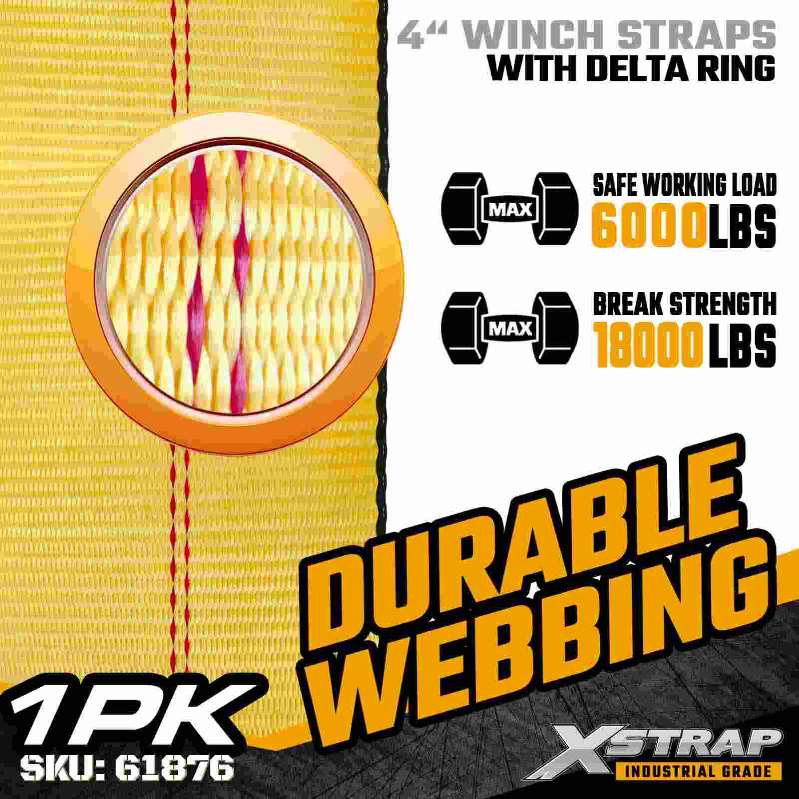 ডেল্টা রিং সহ 4" × 27 ফুট স্ট্যান্ডার্ড উইঞ্চ স্ট্র্যাপ