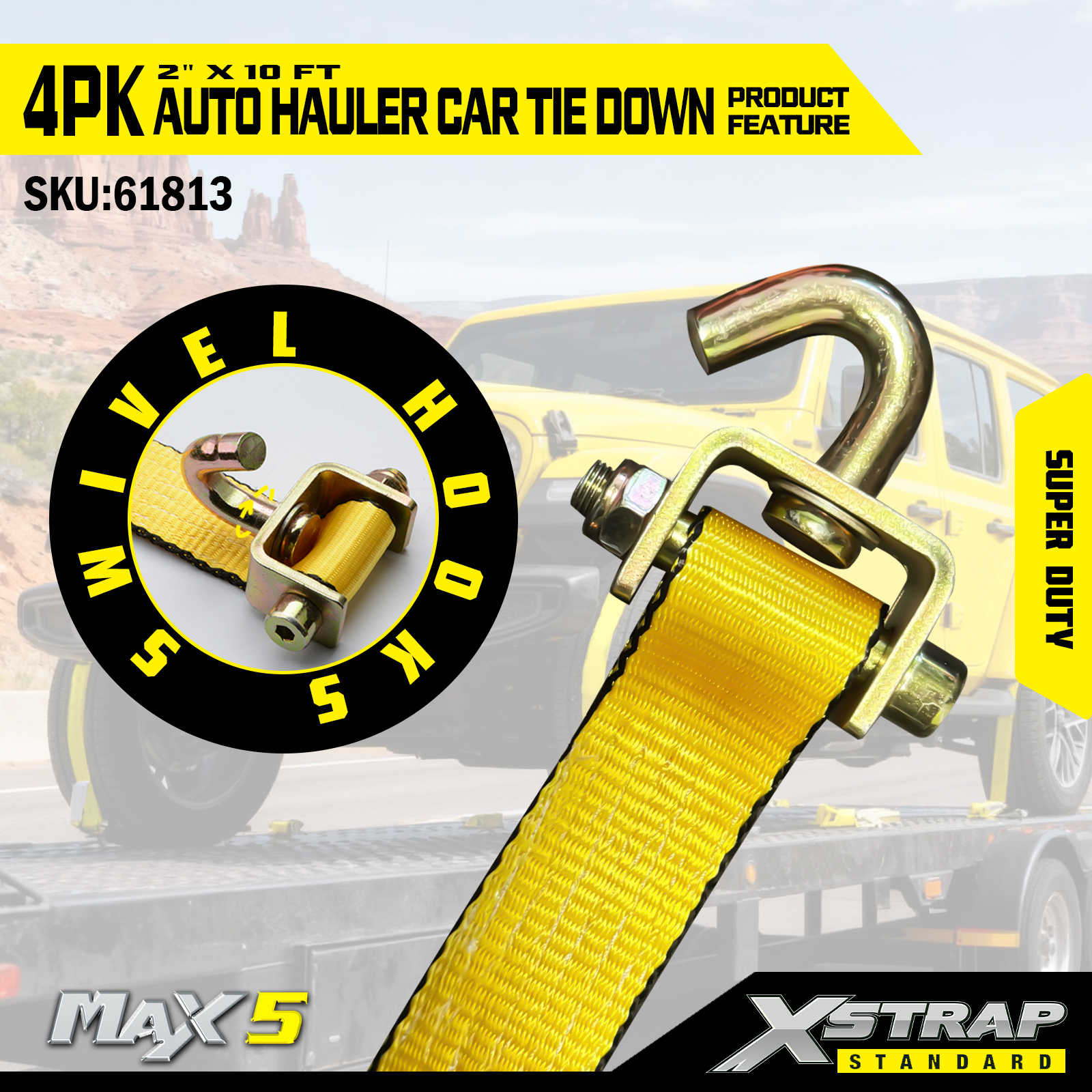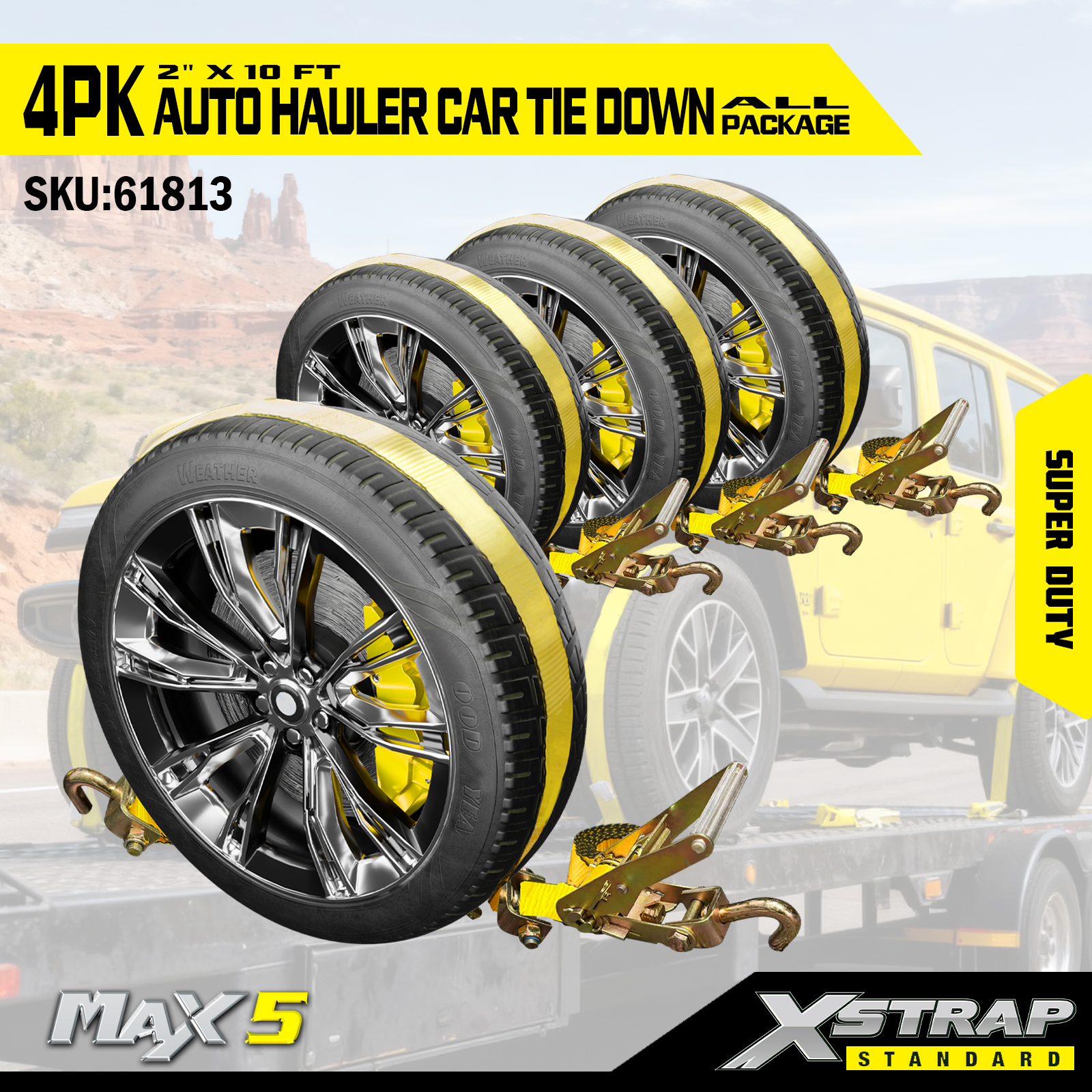 - 4-প্যাক সম্পূর্ণ কভারেজ: 4-পিস সেট প্রতি টায়ারে একটি টাই ডাউন প্রদান করে, যা পরিবহনের সময় একটি গাড়ির জন্য সম্পূর্ণ লোড নিরাপত্তা প্রদান করে।