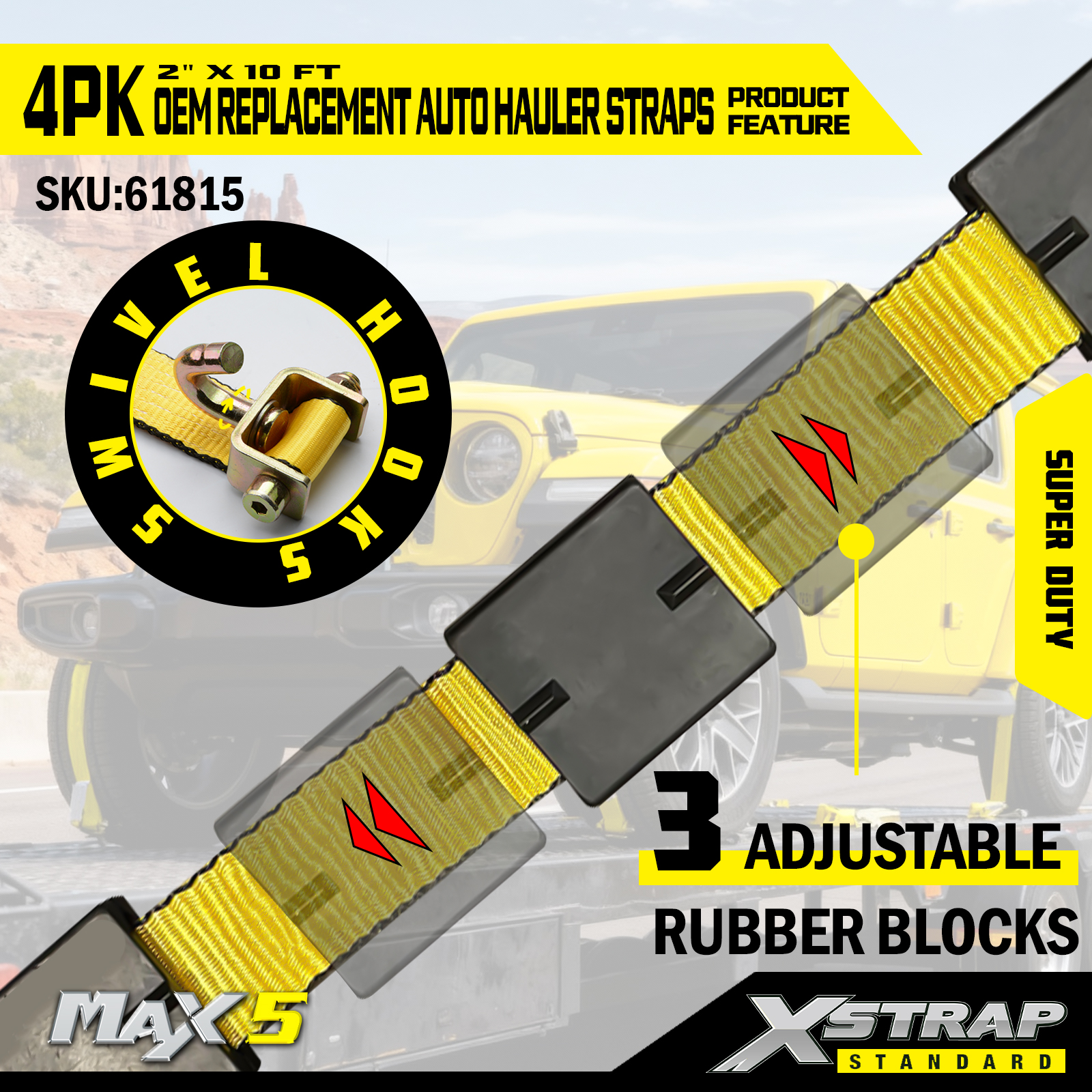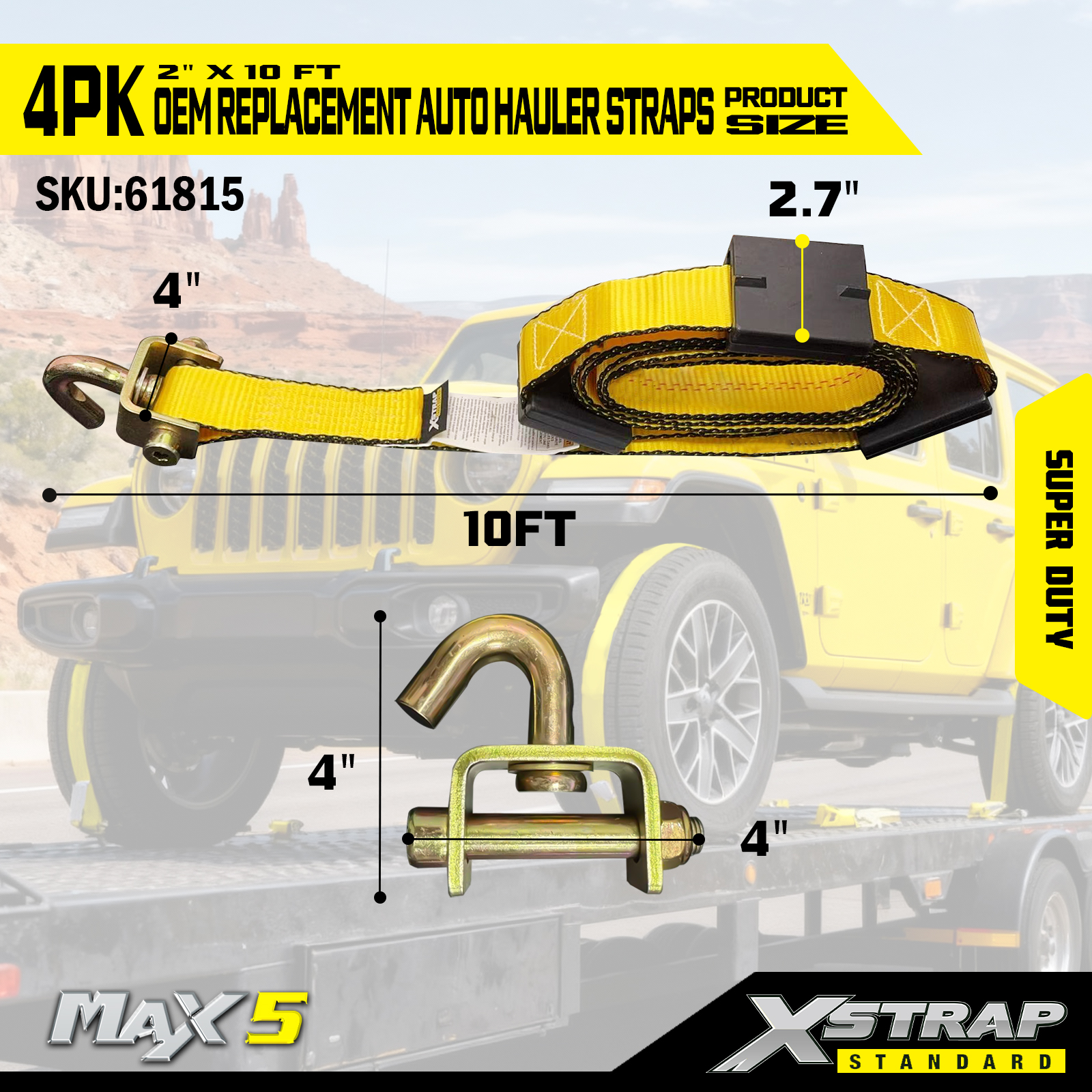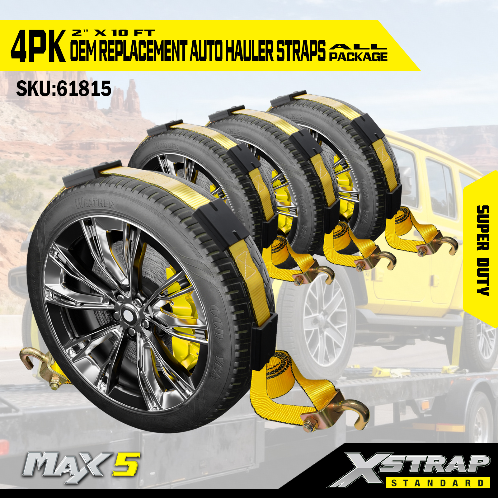 - 4-প্যাক সম্পূর্ণ প্রতিস্থাপন: 4-পিস সেট একটি একক গাড়ির জন্য সমস্ত টাই ডাউন প্রতিস্থাপন করে, যা হলারদের জন্য সম্পূর্ণ কভারেজ (টায়ার প্রতি একটি স্ট্র্যাপ) প্রদান করে।