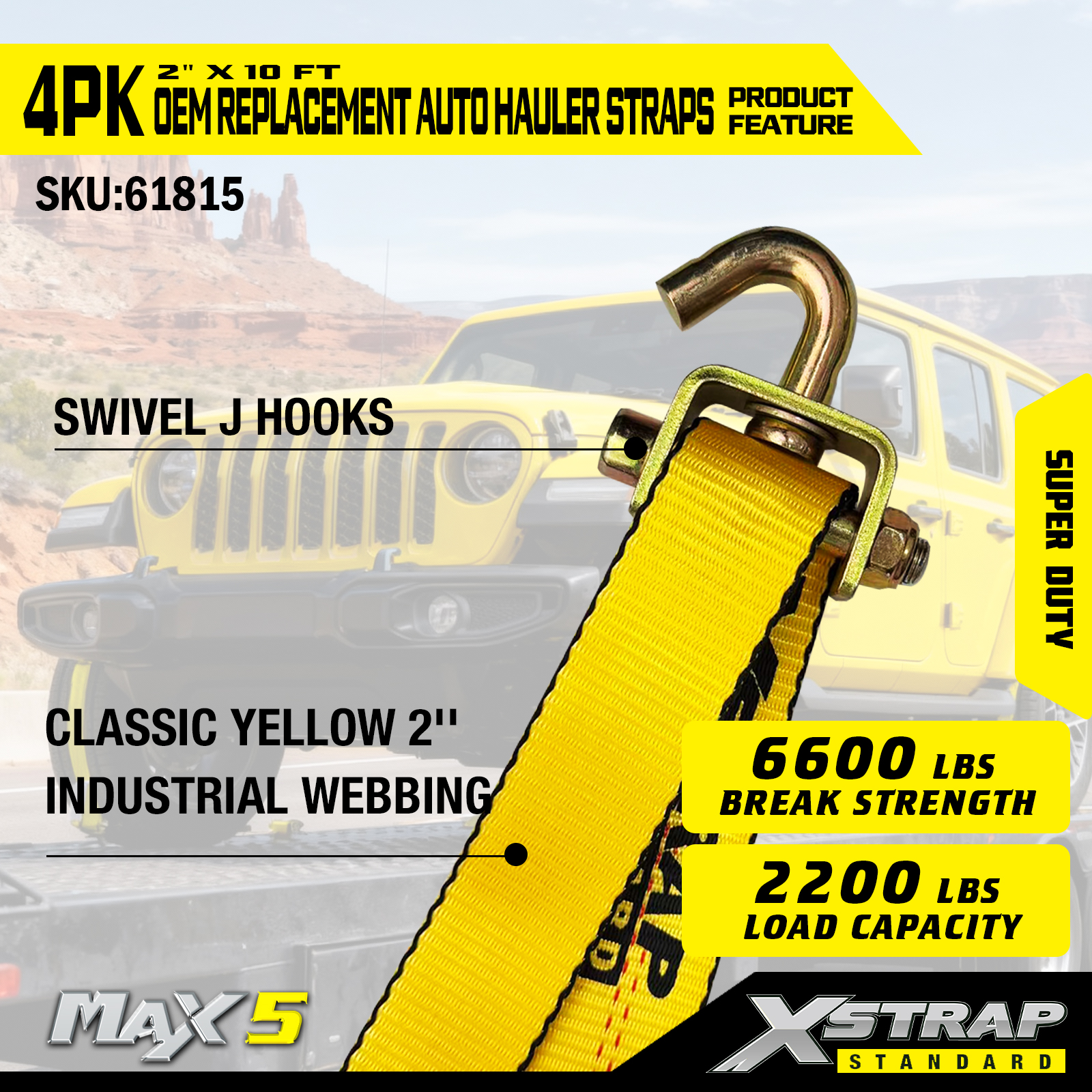 - সুপার ডিউটি লোড ক্যাপাসিটি: 2,200LBS নিরাপদ কাজের লোড এবং 6,600LBS ব্রেকিং স্ট্রেন্থের জন্য রেট করা হয়েছে, এটি ভারী যানবাহন পরিবহনের চাহিদা পূরণ করে৷