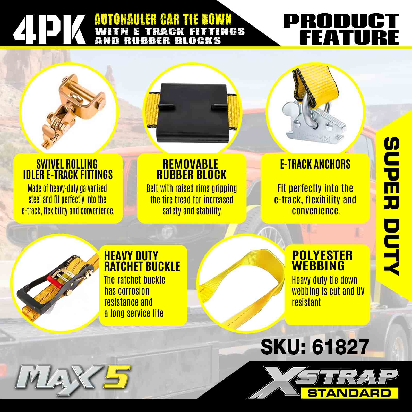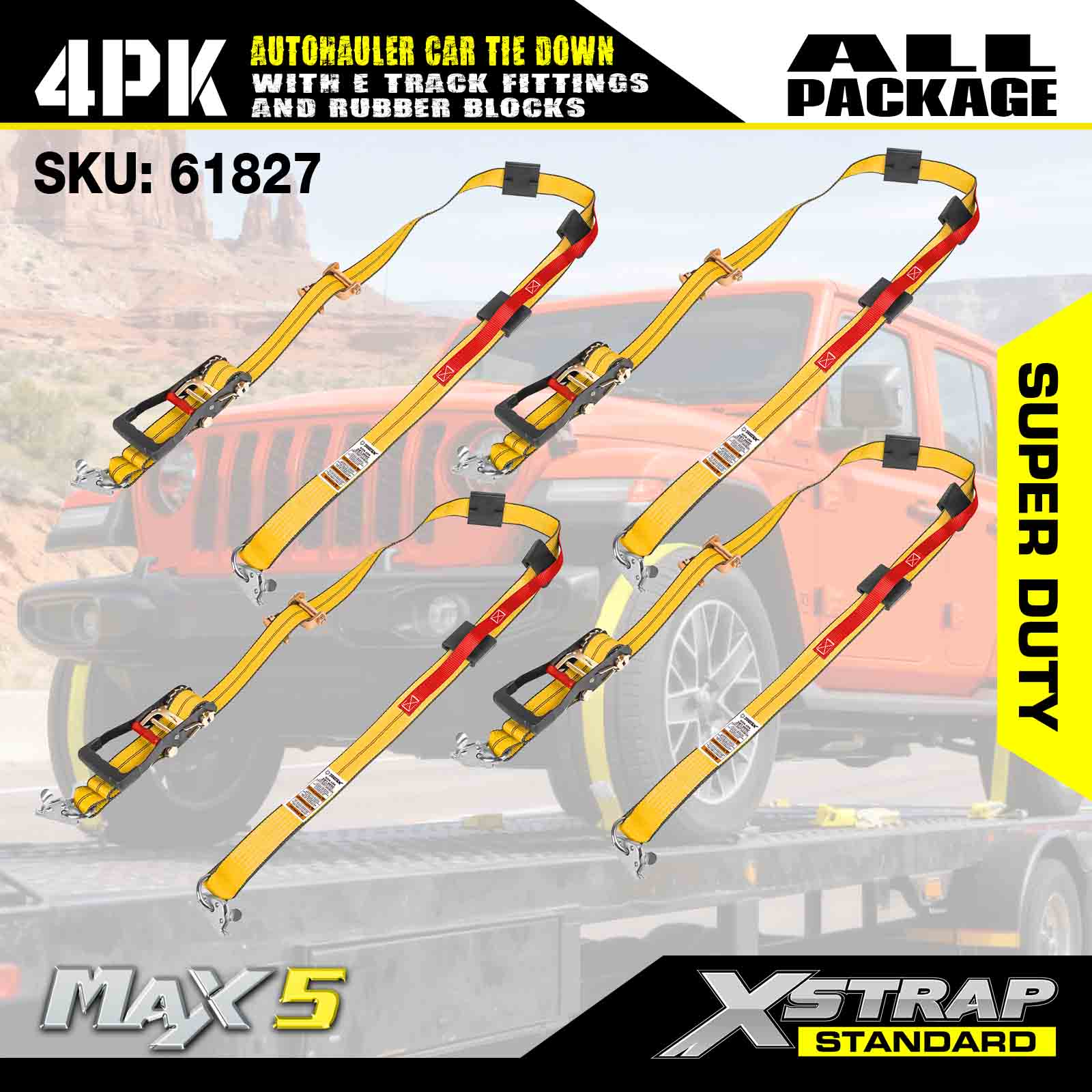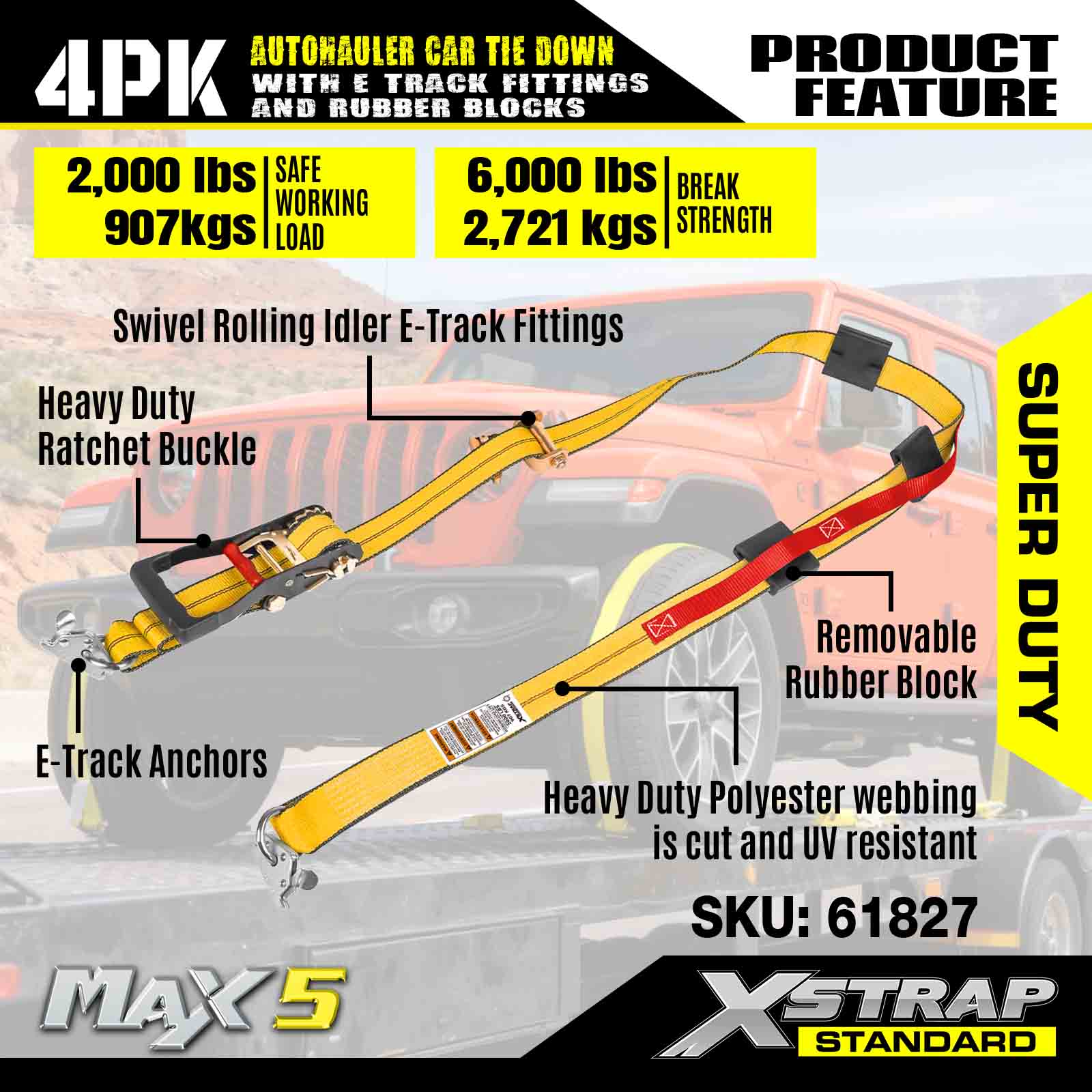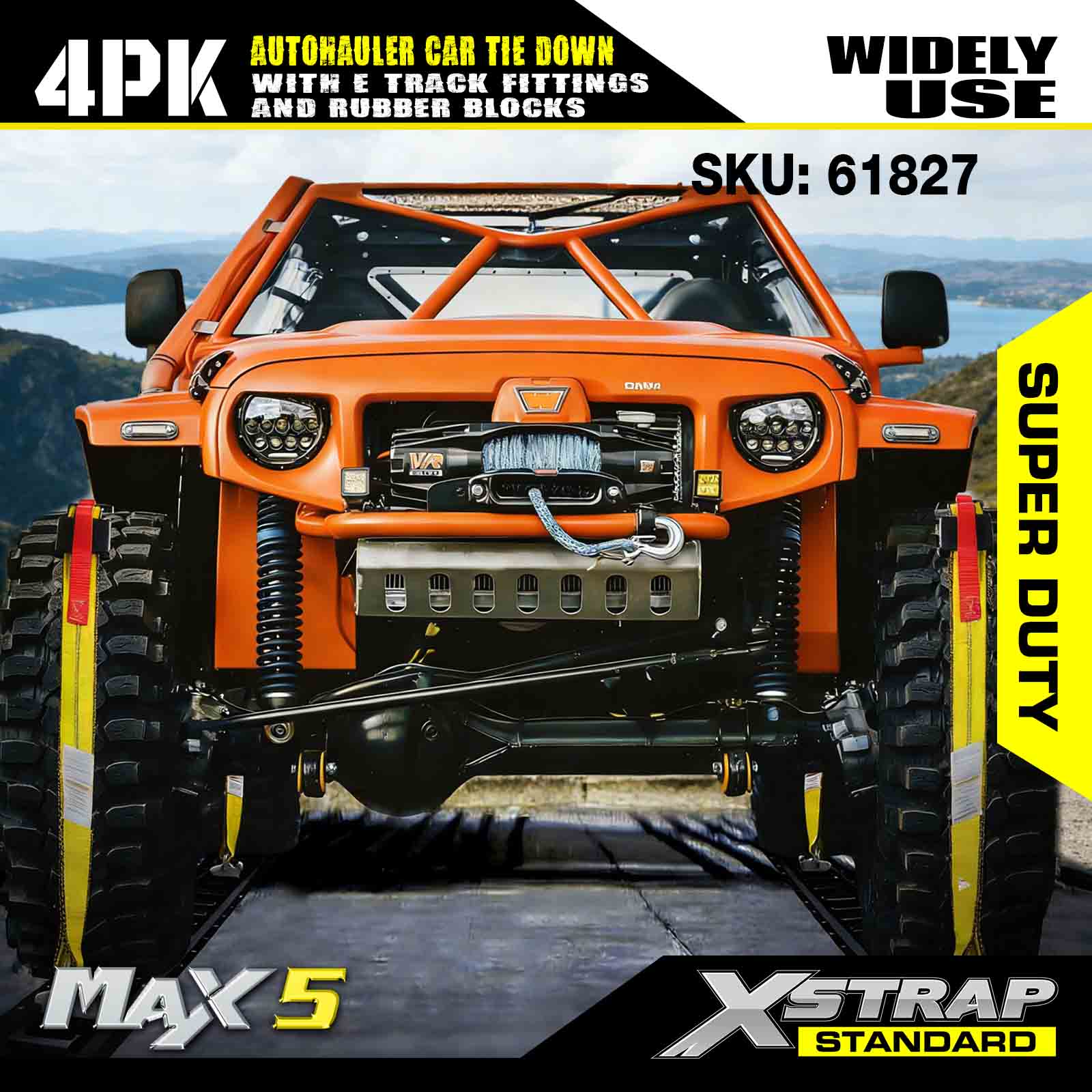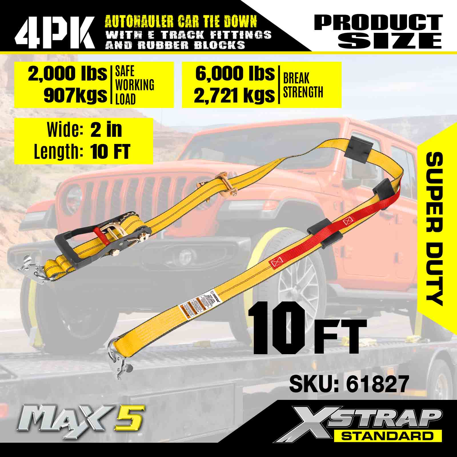 ট্রেলারের জন্য এক্সস্ট্র্যাপ এক্সস্ট্র্যাপ ই ট্র্যাক টায়ার স্ট্র্যাপস হেভি ডিউটি 2" x 10' অটো হোলার স্ট্র্যাপ-6,000lb গ্যারান্টিড ব্রেক স্ট্রেন্থ-(4) ট্রাকের জন্য রাবার ব্লক হুইল টাই-ডাউনস সহ প্রিমিয়াম ভেহিকেল টাই ডাউন কিট, UTV