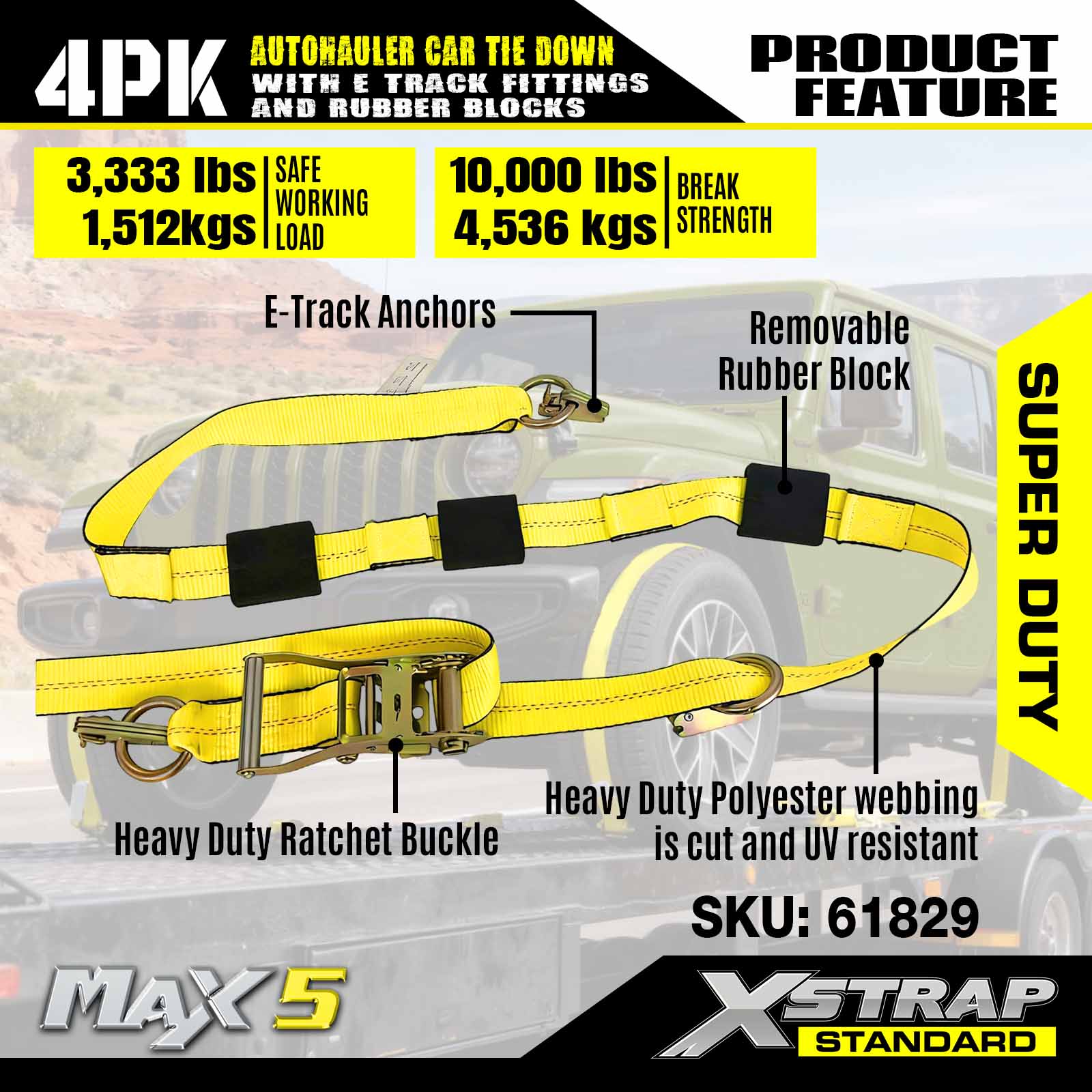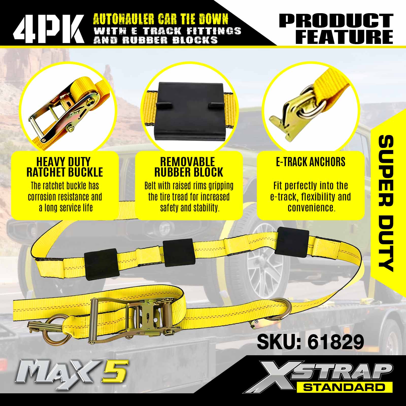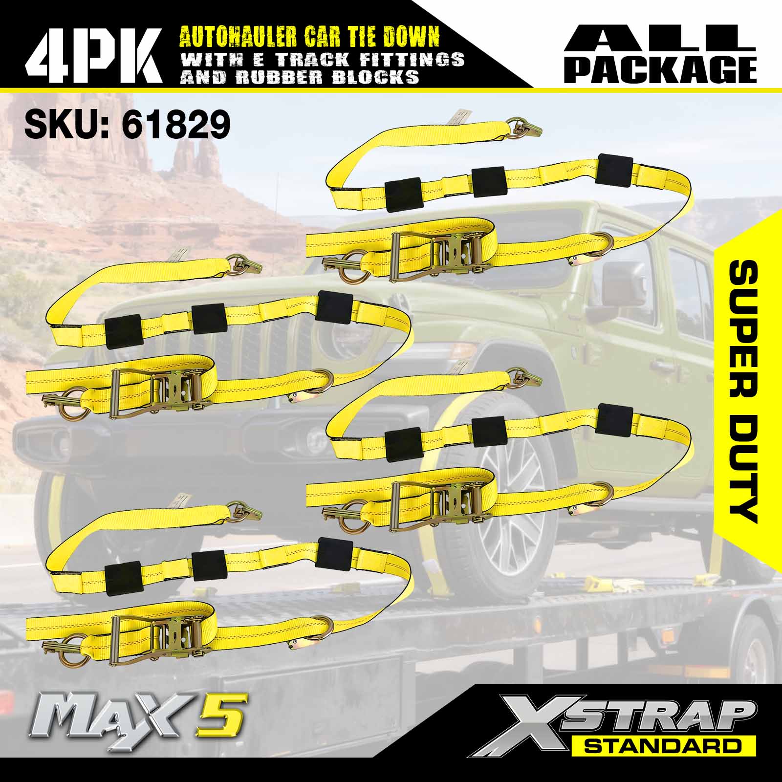 - নিরাপত্তা এবং বহুমুখিতা: 3,333 পাউন্ডের কাজের লোড সীমা এবং 10,000 পাউন্ডের বিরতি শক্তি সহ ডিজাইন করা হয়েছে, এই যানবাহনের স্ট্র্যাপগুলি DOT এবং CVSA মানগুলি পূরণ করে, যে কোনও ট্রেলারে আপনার গাড়ি, ATV, UTV এবং রেস কারগুলির জন্য অতুলনীয় নিরাপত্তা প্রদান করে