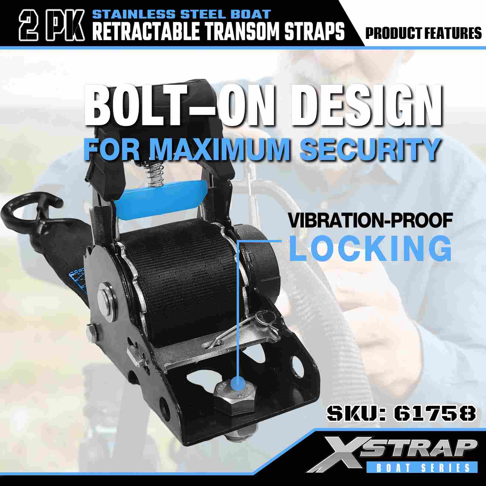 সেফটি এস হুক সহ Xstrap 2PK বোট রিট্র্যাক্টেবল ট্রান্সম স্ট্র্যাপ, 2” x 3.6’ পলিয়েস্টার টাই ডাউন স্ট্র্যাপ রিট্র্যাক্টেবল স্ট্র্যাপ, 1000lbs ক্যাপাসিটি কার্গো ল্যাশিং সিকিউরিং স্ট্র্যাপস সেফটি এস হুক সহ সিরিয়াস প্রফেশনাল টু সিকিউর কার্গো ট্রেইলার, বোট কারগো ট্রেইলার, ফ্ল্যাটকি।