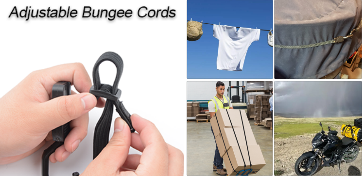 সামঞ্জস্যযোগ্য বাঞ্জি কর্ডগুলি উন্নত স্থিতিশীলতা এবং আইটেমগুলিতে খনন করার প্রবণতা হ্রাস করে। এগুলি বহুমুখী এবং বিস্তৃত অ্যাপ্লিকেশনের জন্য উপযুক্ত, যার মধ্যে রয়েছে সরঞ্জাম, সঞ্চয়স্থান সংগঠিত করা, লাগেজ বা টারপস বাঁধা, নিরাপদ বহিরঙ্গন গিয়ার, বাগান, গ্যারেজ বা ভ্রমণ অ্যাপ্লিকেশন।