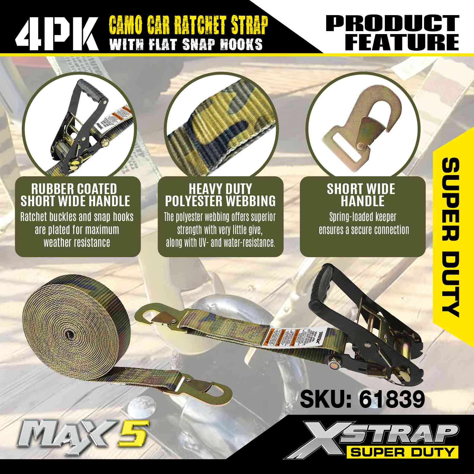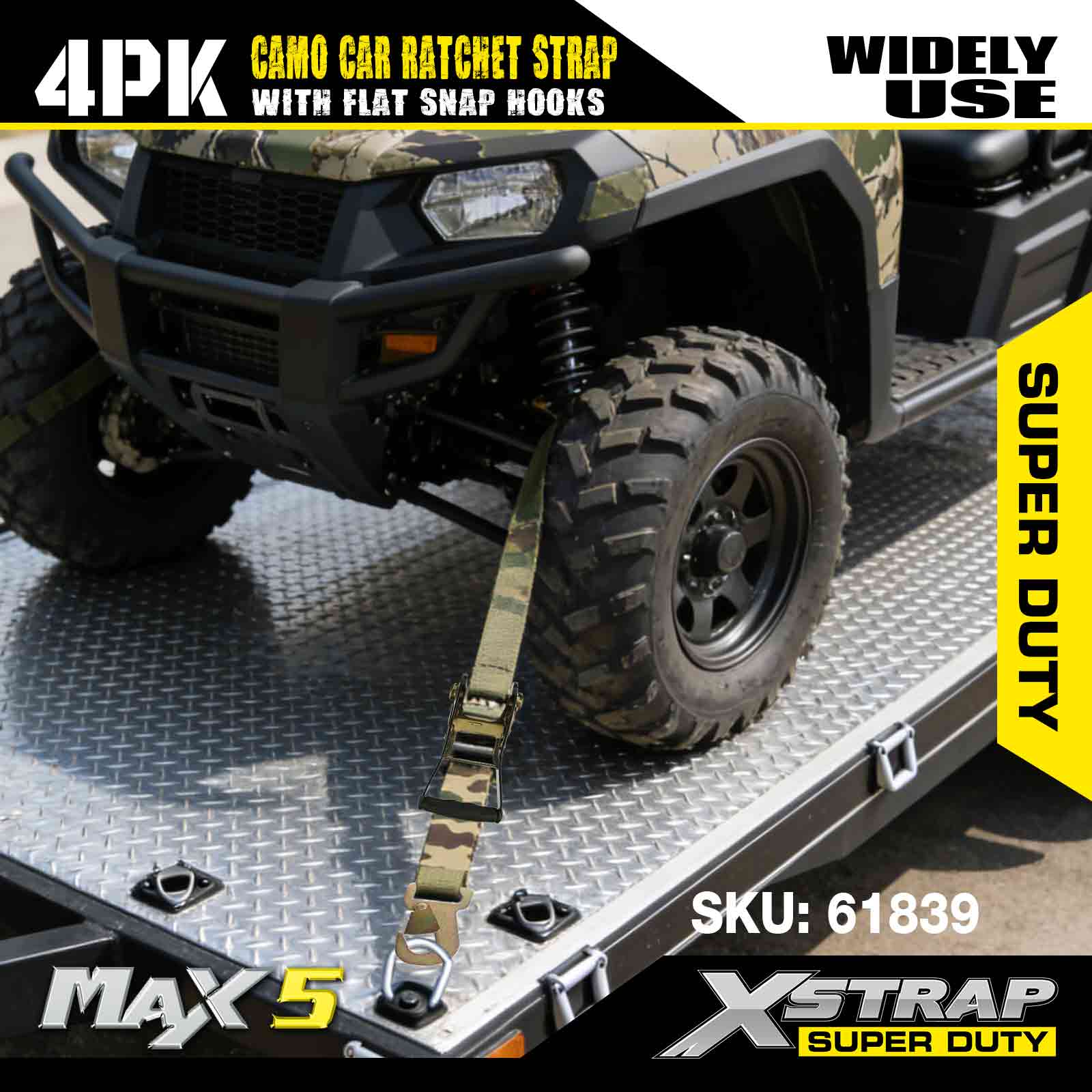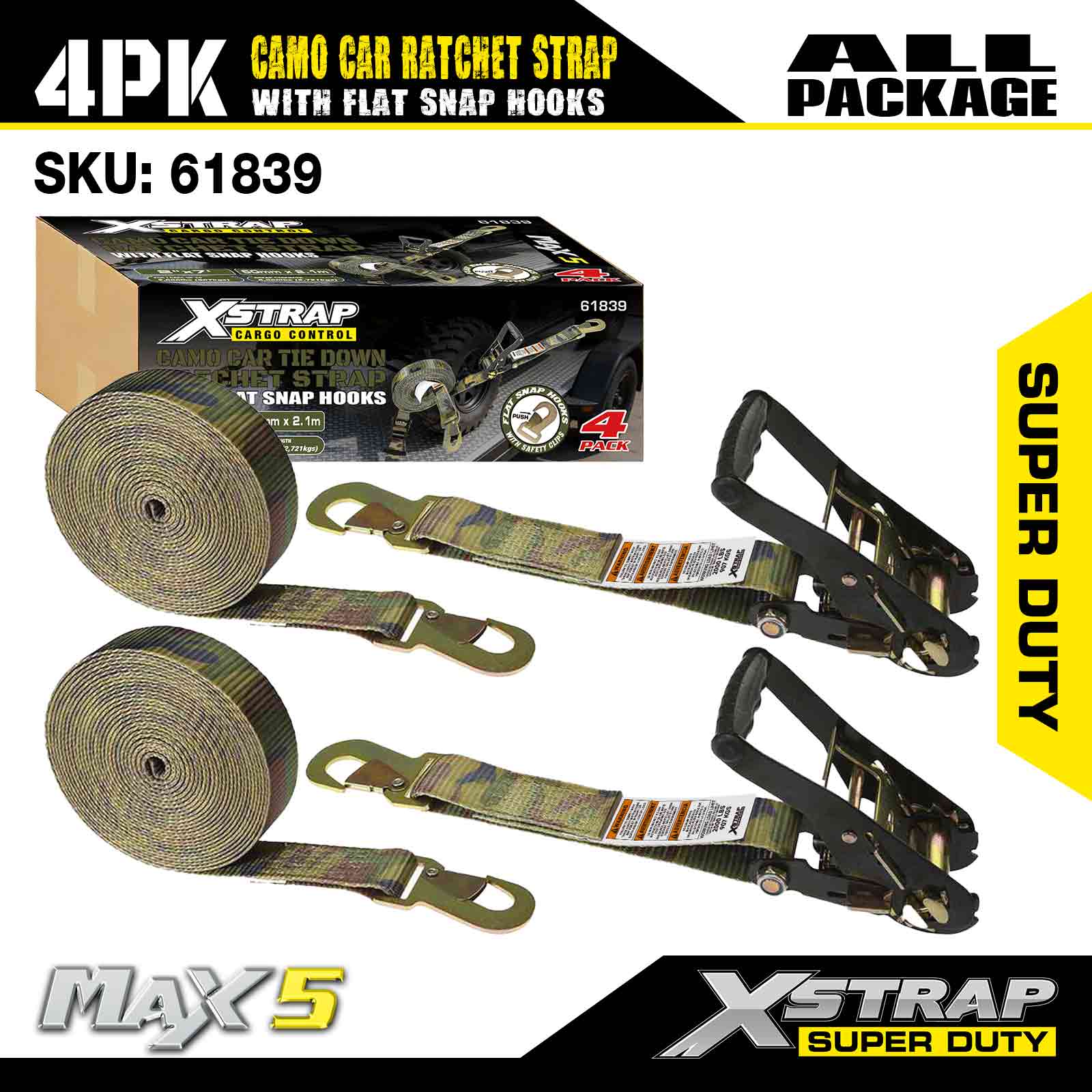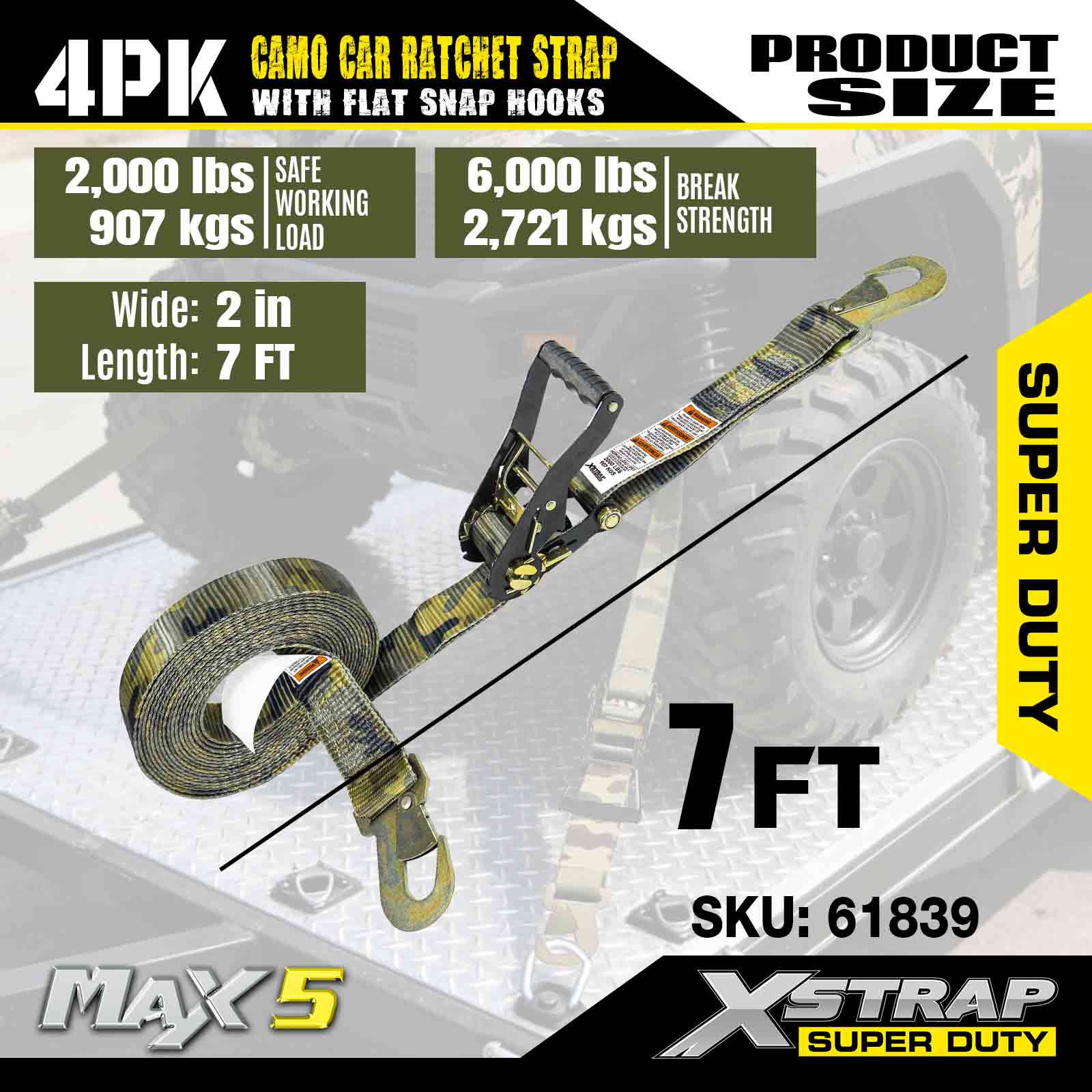 ফ্ল্যাট স্ন্যাপ হুক 2 ইঞ্চি x 7 ফুট (4-প্যাক), 6,000 এলবিএস ব্রেক স্ট্রেন্থ, ফ্ল্যাট লকিং হুক সহ বহুমুখী র্যাচেট স্ট্র্যাপ, টাই ডাউন কার, মোটরসাইকেল এবং অন্যান্য যানবাহন সহ এক্সস্ট্র্যাপ কার্গো কন্ট্রোল অটো র্যাচেট স্ট্র্যাপ