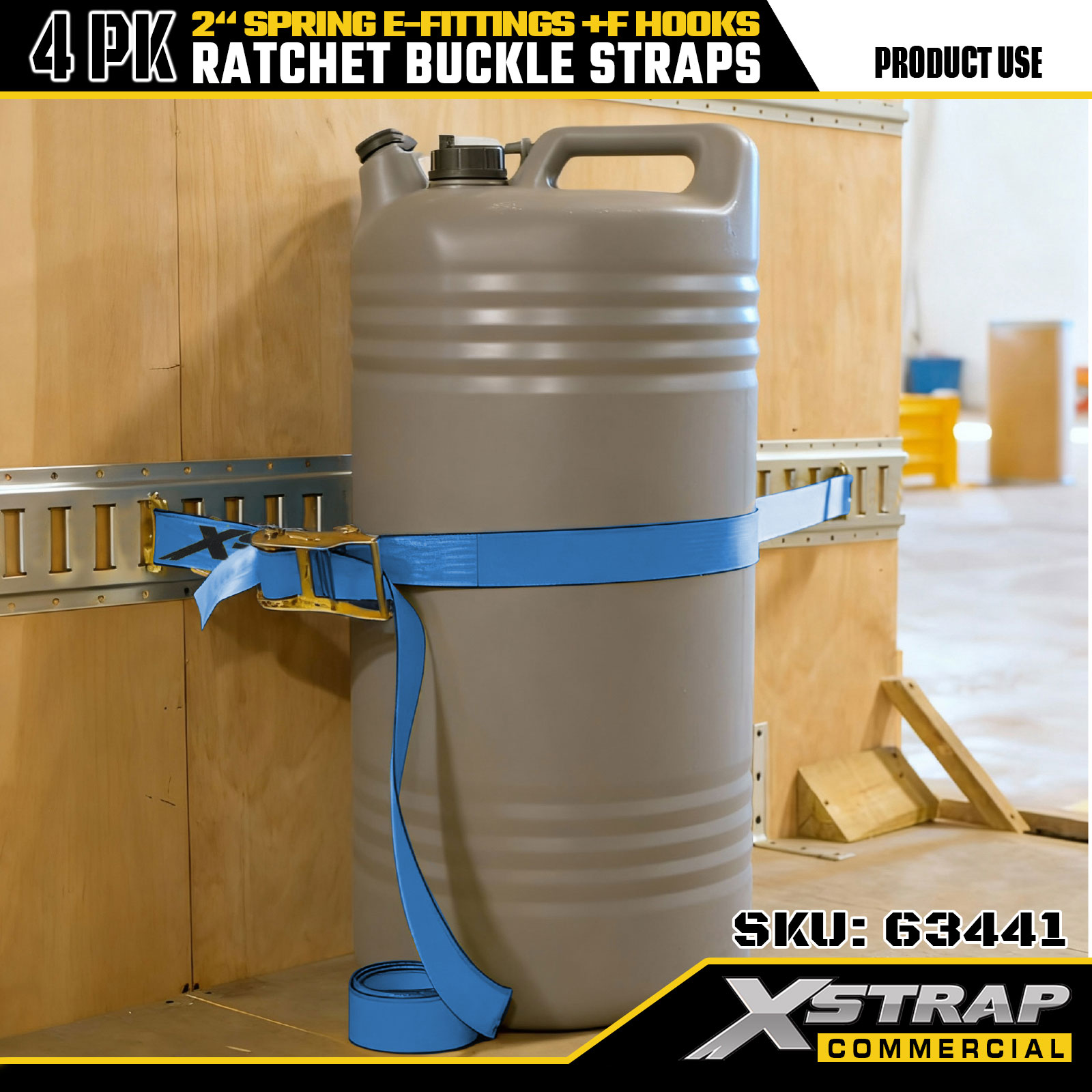 স্প্রিং ই-ফিটিংস এবং এফ হুক সহ 2" x 12' 4PK র্যাচেট স্ট্র্যাপস