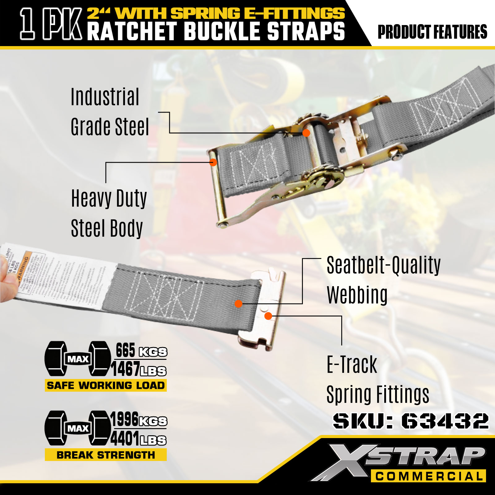 2" x 16' 1PK স্প্রিং ই-ফিটিং সহ র্যাচেট বাকল স্ট্র্যাপস