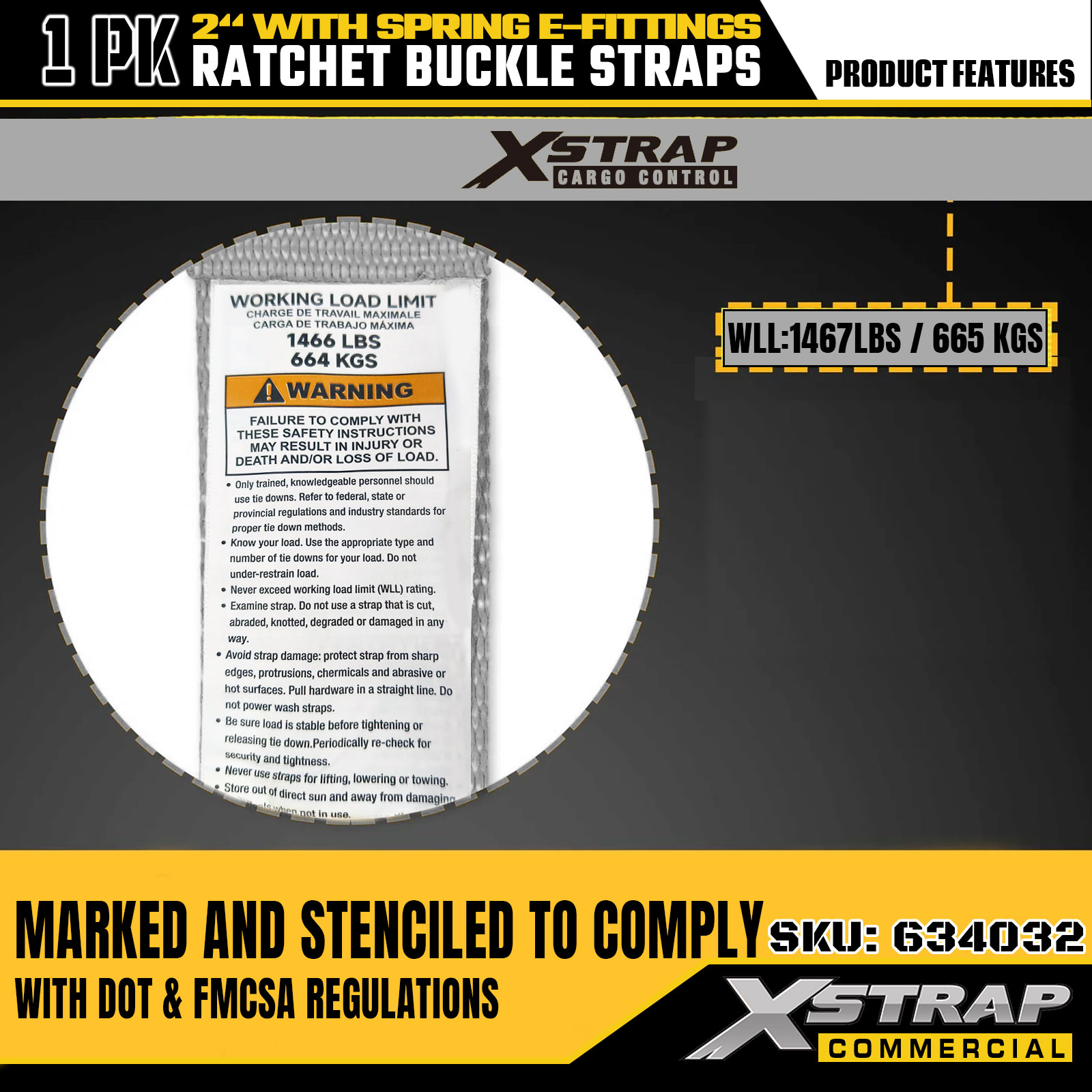 এক্সস্ট্র্যাপ 1-প্যাক র্যাচেট টাই-ডাউন স্ট্র্যাপস, 2" x 16' পলিয়েস্টার কার্গো সিকিউরিং স্ট্র্যাপস, 1467 পাউন্ড সেফ ওয়ার্কিং লোড এবং 4401 পাউন্ড ব্রেকিং স্ট্রেন্থ, ট্রাক, মাওয়ার, এটিভিগুলির জন্য স্প্রিং ই-ফিটিং সহ