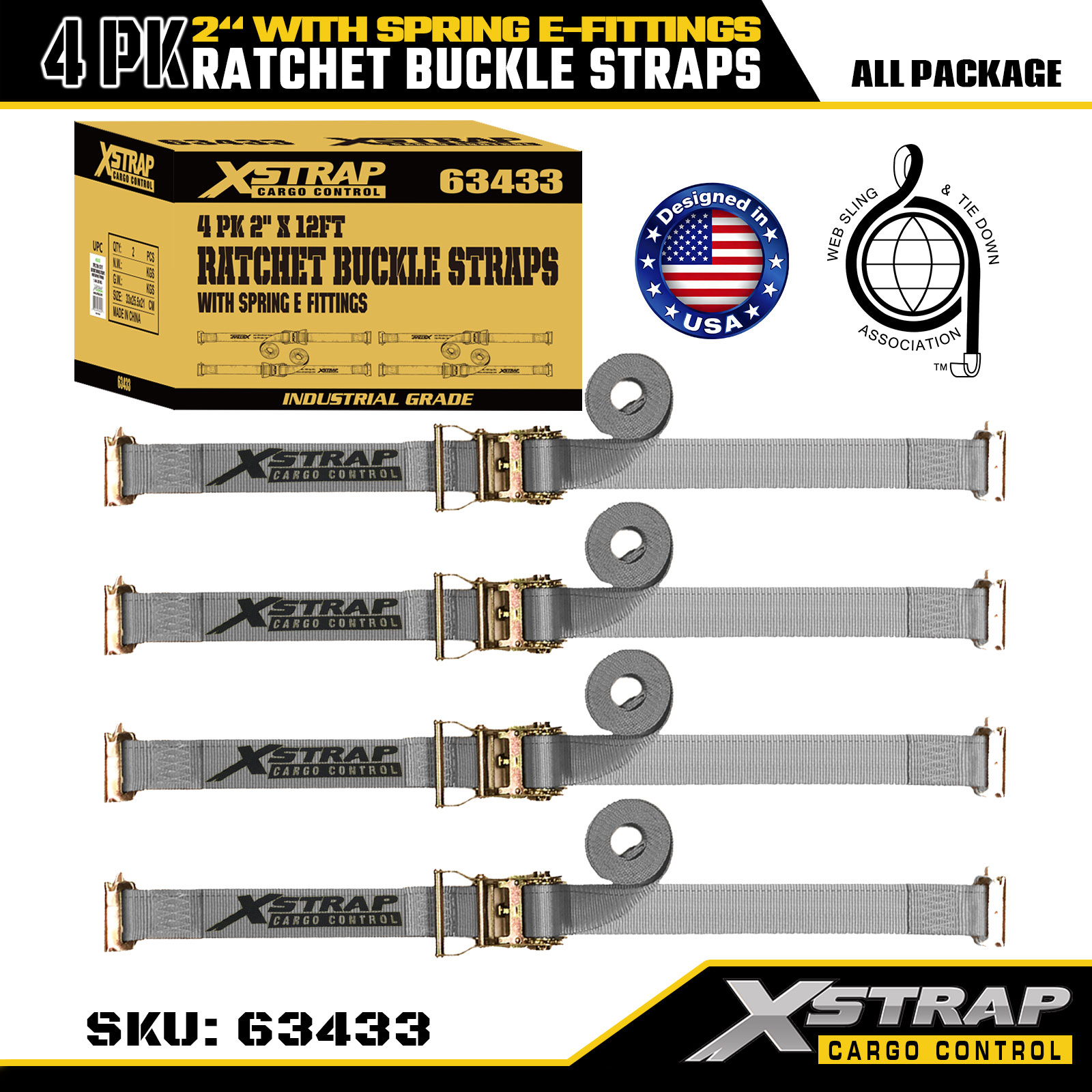 2" x 16' 4PK স্প্রিং ই-ফিটিং সহ র্যাচেট বাকল স্ট্র্যাপস