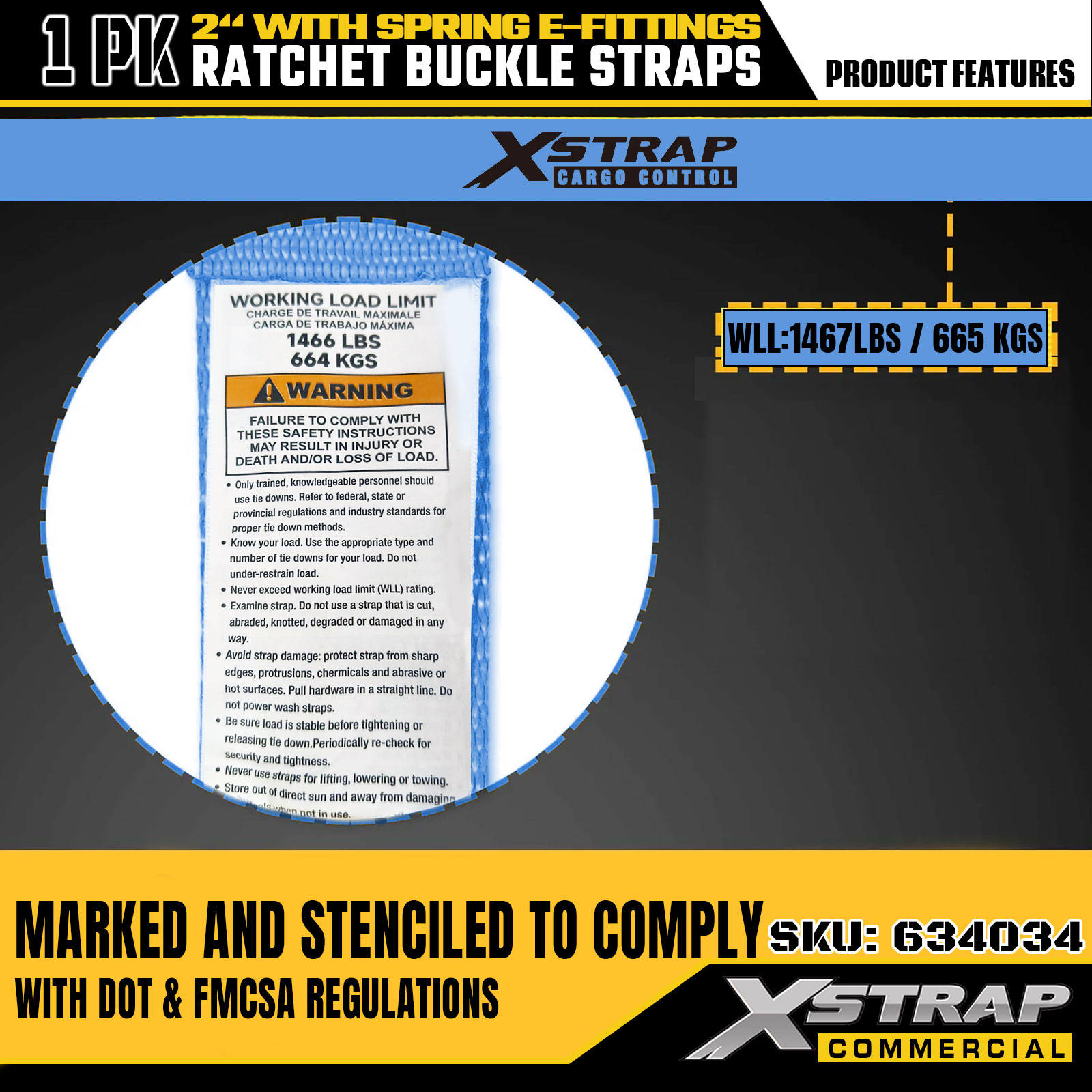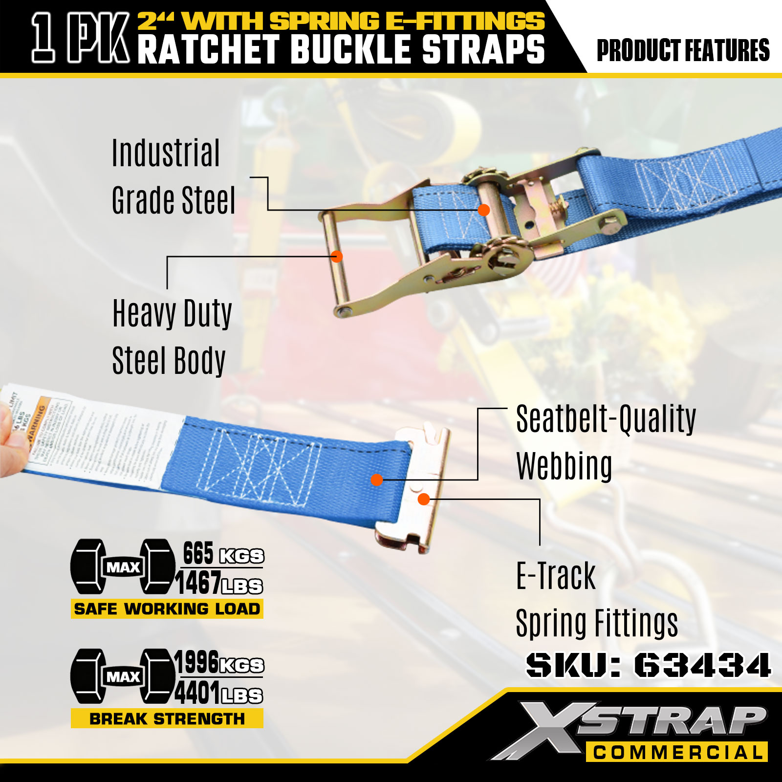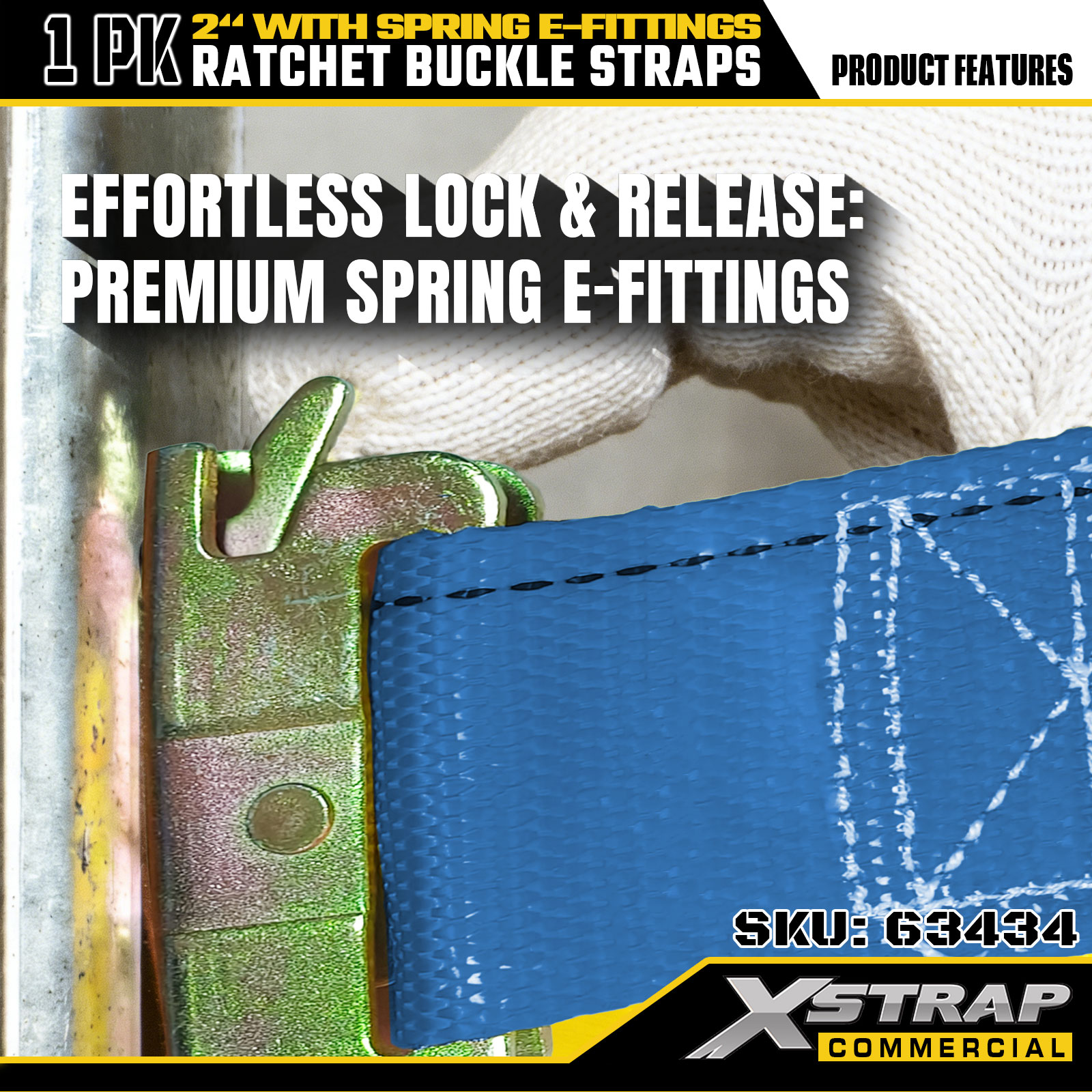 2" x 20' 1PK স্প্রিং ই-ফিটিং সহ র্যাচেট বাকল স্ট্র্যাপস
