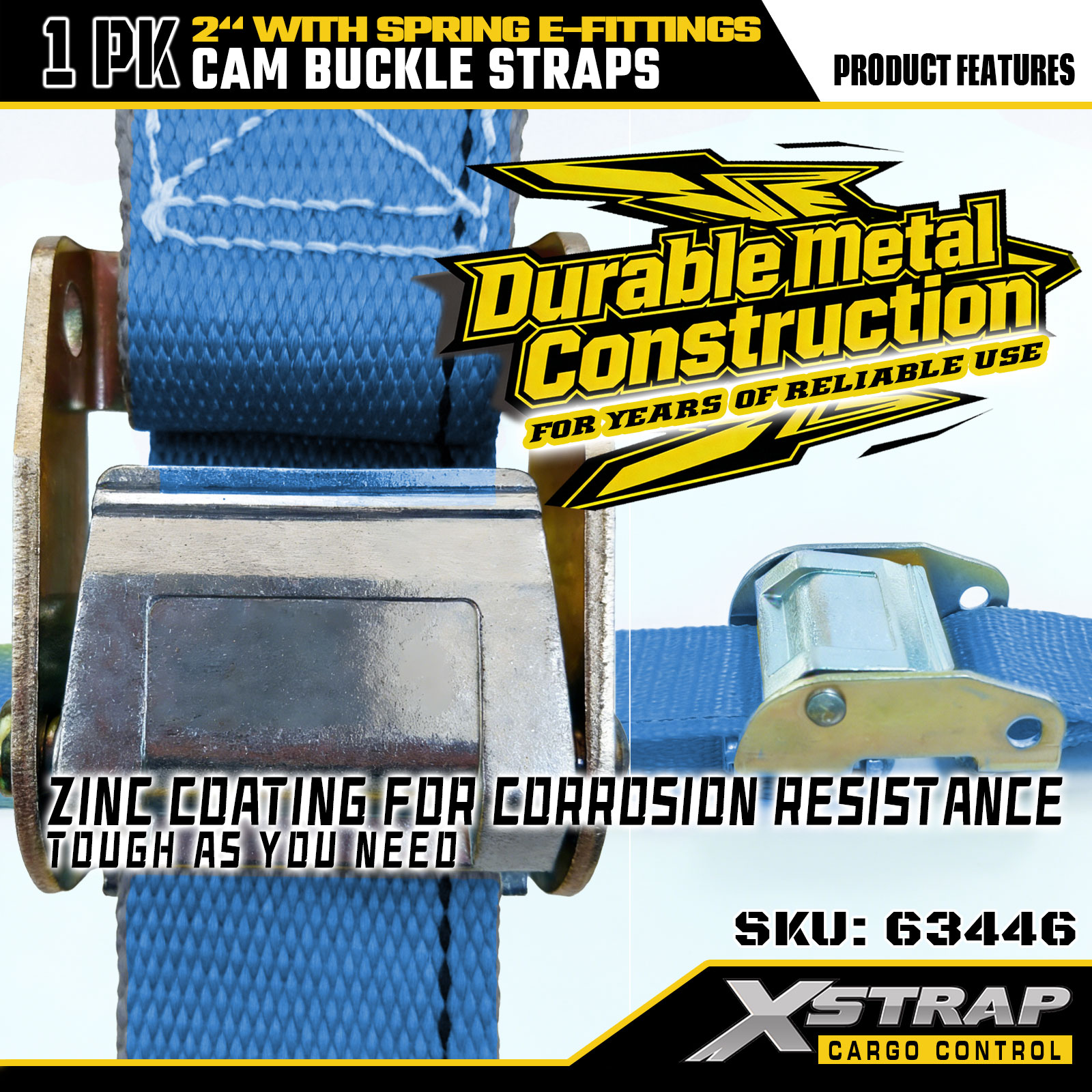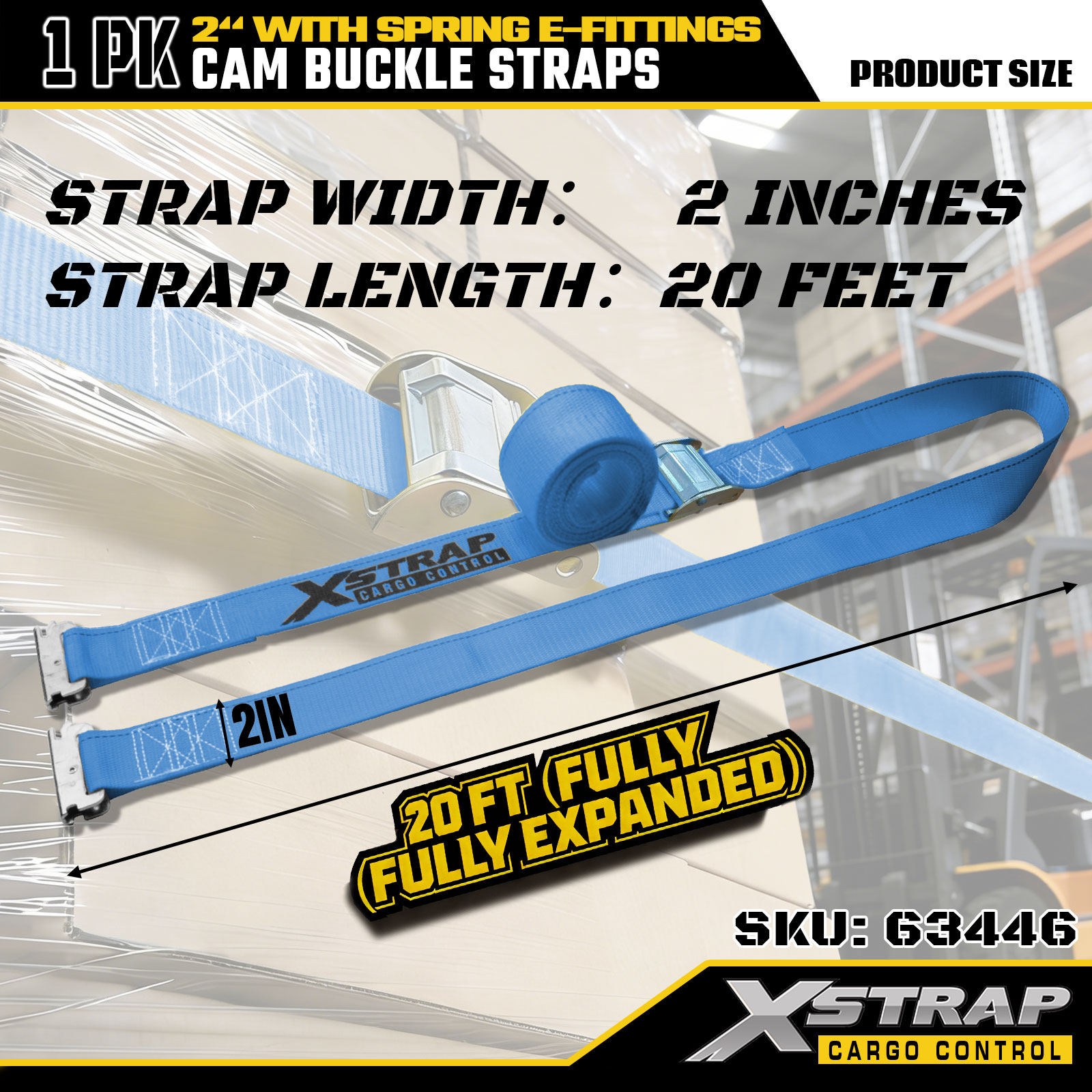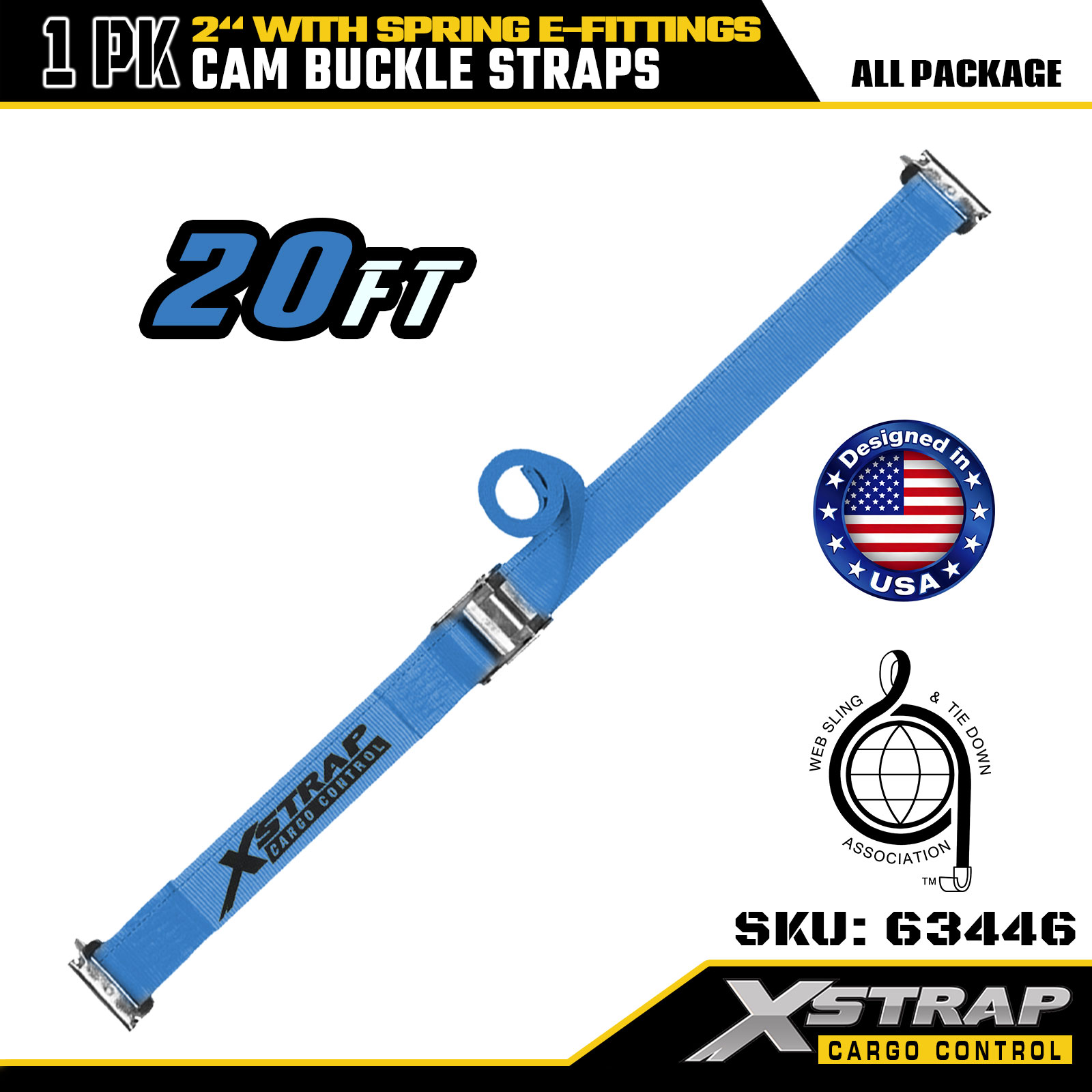 Xstrap 63446 হেভি-ডিউটি র্যাচেট স্ট্র্যাপ 2" x 20' (1PK) - স্প্রিং ই-ফিটিংস এবং এফ হুক সহ নীল পলিয়েস্টার, 733 পাউন্ড এসডব্লিউএল এবং 332 পাউন্ড কার্গো নিয়ন্ত্রণ, চলাচল এবং পরিবহনের জন্য ব্রেকিং স্ট্রেন্থ