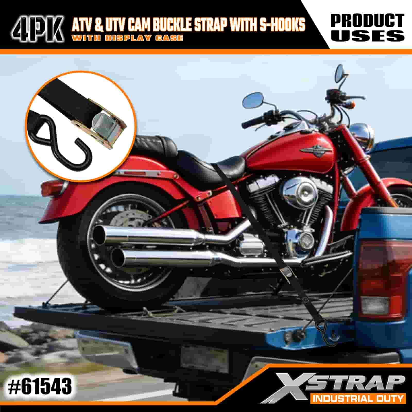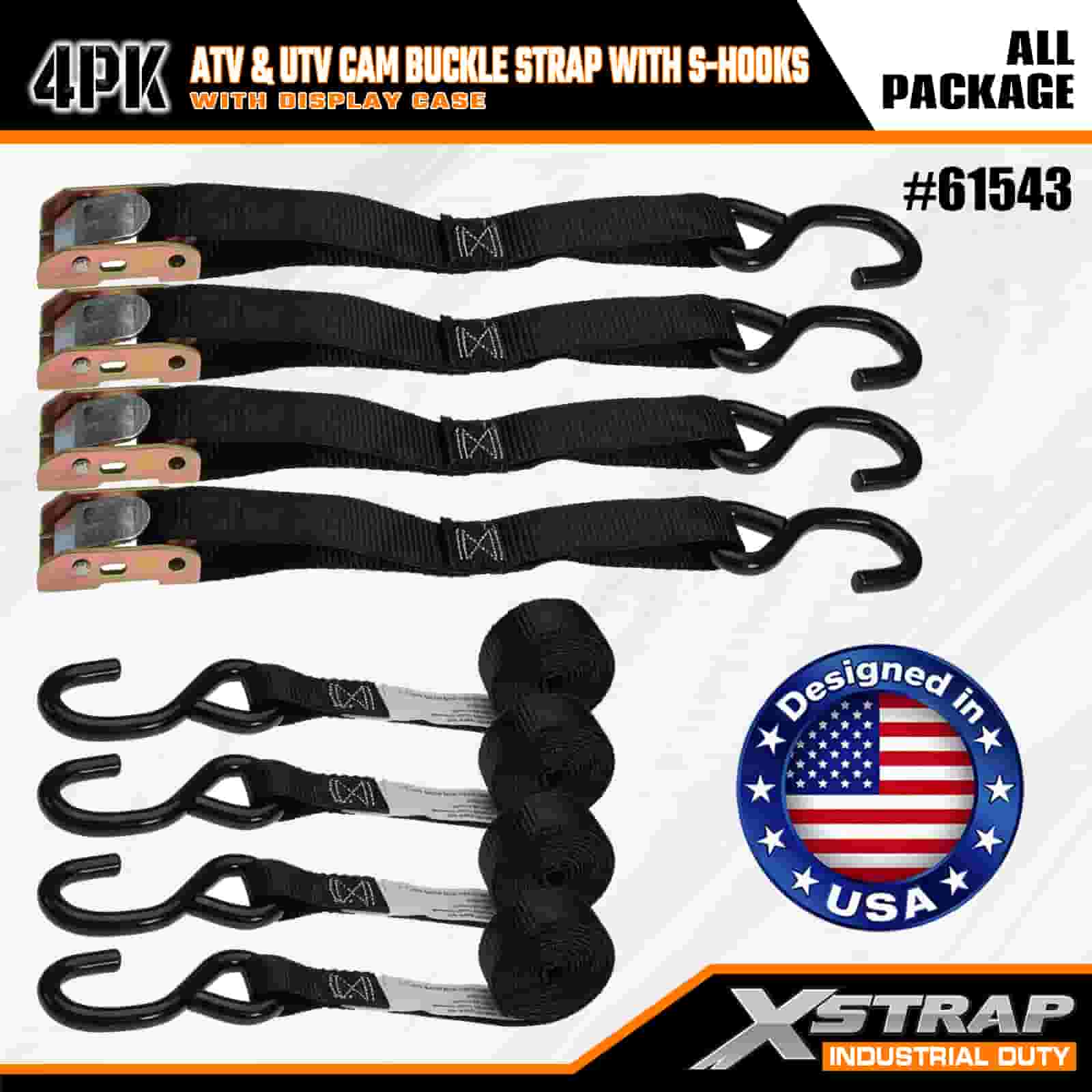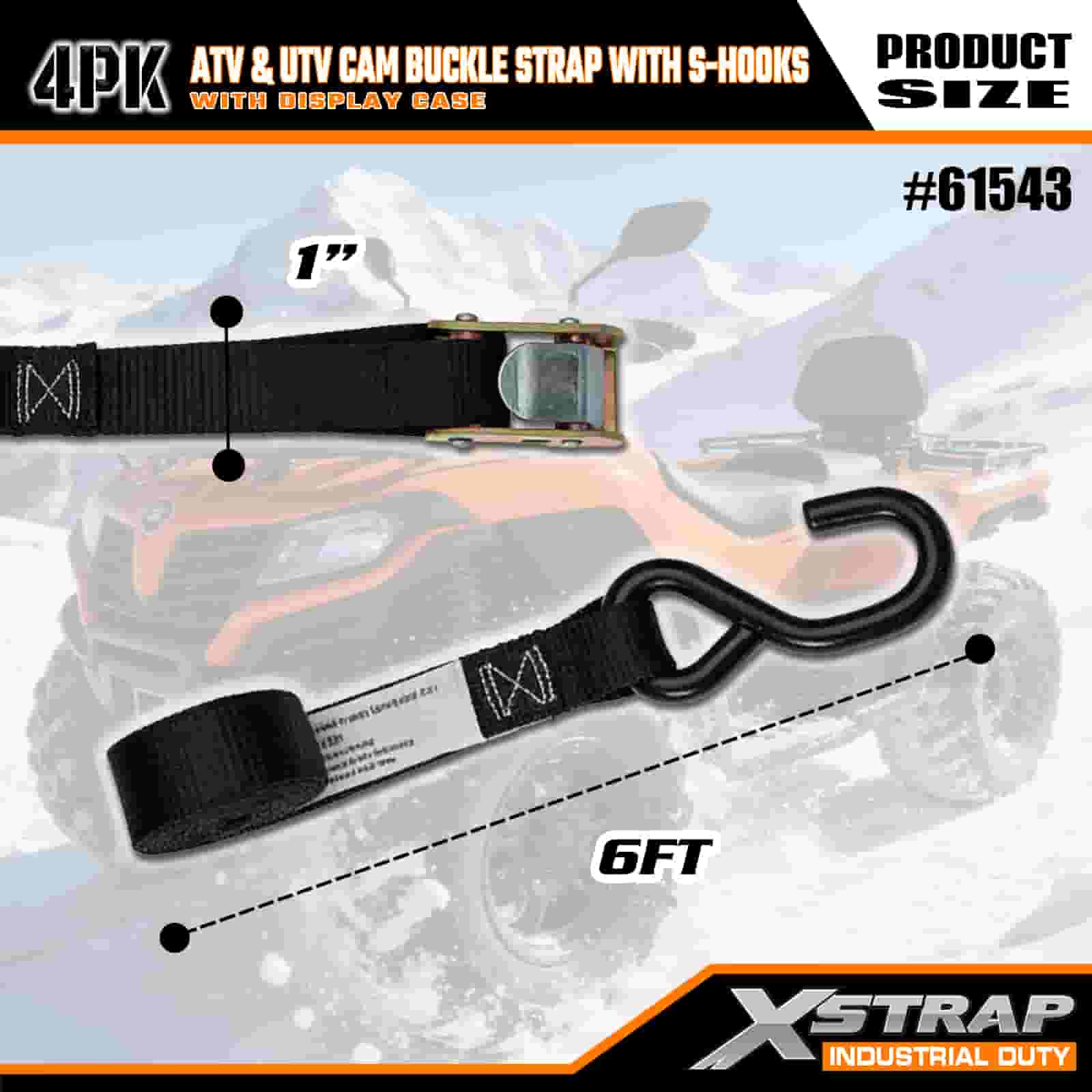 1” x 6’ 4PK ATV এবং AUV ক্যাম বাকল স্ট্র্যাপ এস হুক সহ