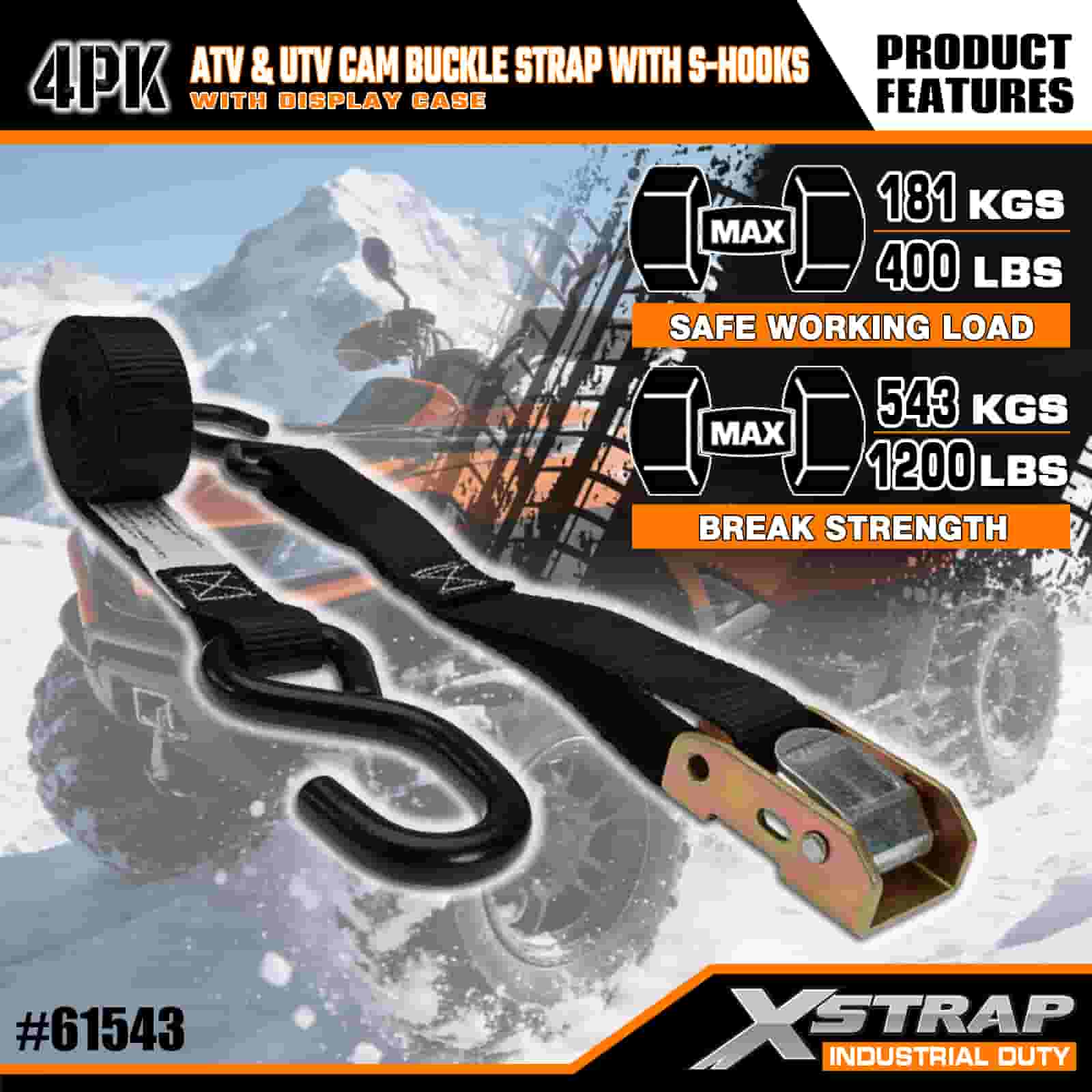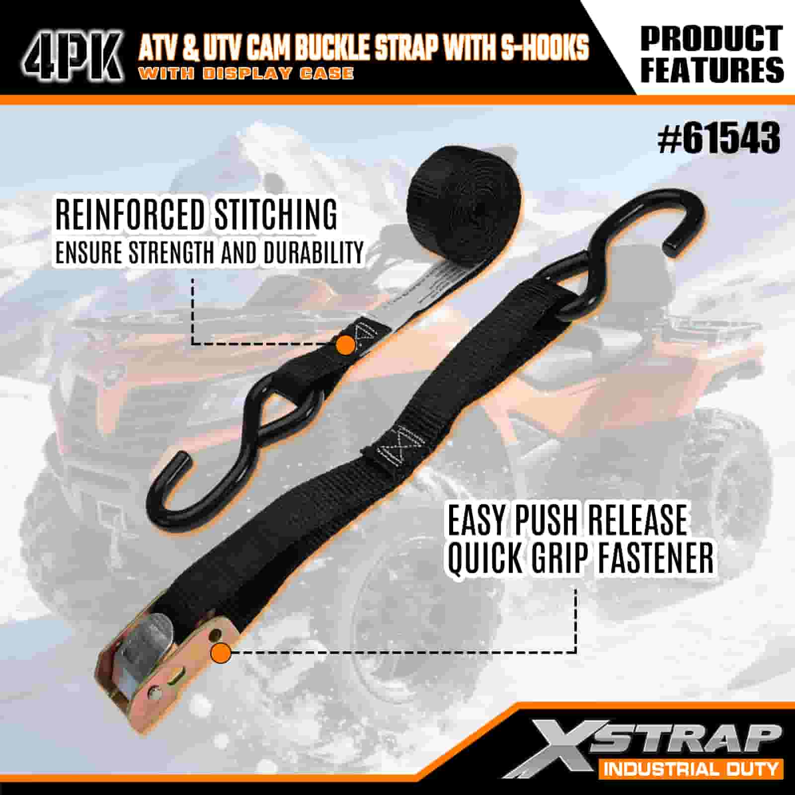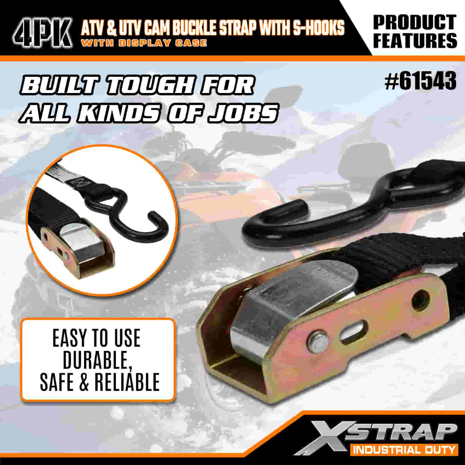 1” x 6’ 4PK ATV এবং AUV ক্যাম বাকল স্ট্র্যাপ এস হুক সহ