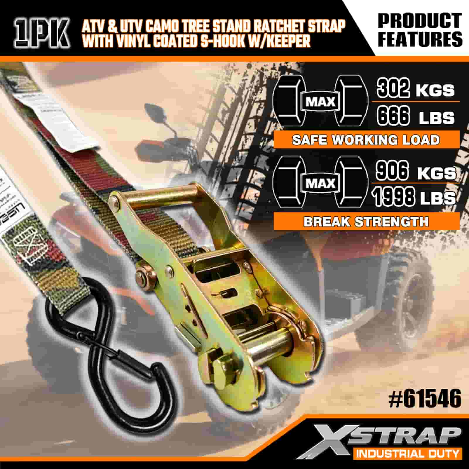 - হান্ট-প্রুফ স্থায়িত্ব: ভিনাইল প্রলিপ্ত S হুকগুলি আপনার যানবাহন বা গাছের স্ট্যান্ডে স্ক্র্যাচ প্রতিরোধ করে, যখন জারা-প্রতিরোধী র্যাচেট বৃষ্টি, কাদা এবং আর্দ্রতা পর্যন্ত দাঁড়ায়। ক্যামো ওয়েবিং ফ্রেটিং এবং ইউভি ক্ষতি প্রতিরোধ করে, তাই এটি ঋতু পর্যায় শক্তিশালী থাকে।