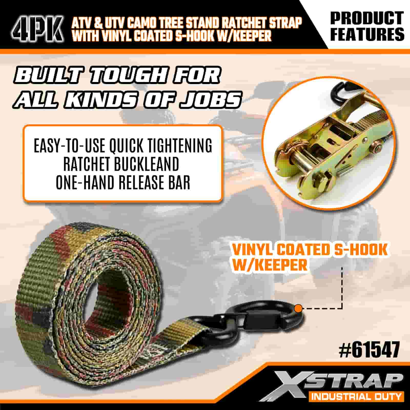 - ওয়েদারপ্রুফ এবং স্ক্র্যাচ প্রতিরোধী: ভিনাইল প্রলিপ্ত S হুকগুলি আপনার গাড়ি বা গাছের স্ট্যান্ডে স্ক্র্যাচ প্রতিরোধ করে, যখন জারা প্রতিরোধী র্যাচেট বৃষ্টি, তুষার এবং আর্দ্রতা পর্যন্ত দাঁড়ায়। ক্যামো ওয়েবিং ইউভি ক্ষয়ক্ষতি এবং ফ্রেয়িং প্রতিরোধ করে, তাই এটি ঋতু পর্যায় শক্তিশালী থাকে।
