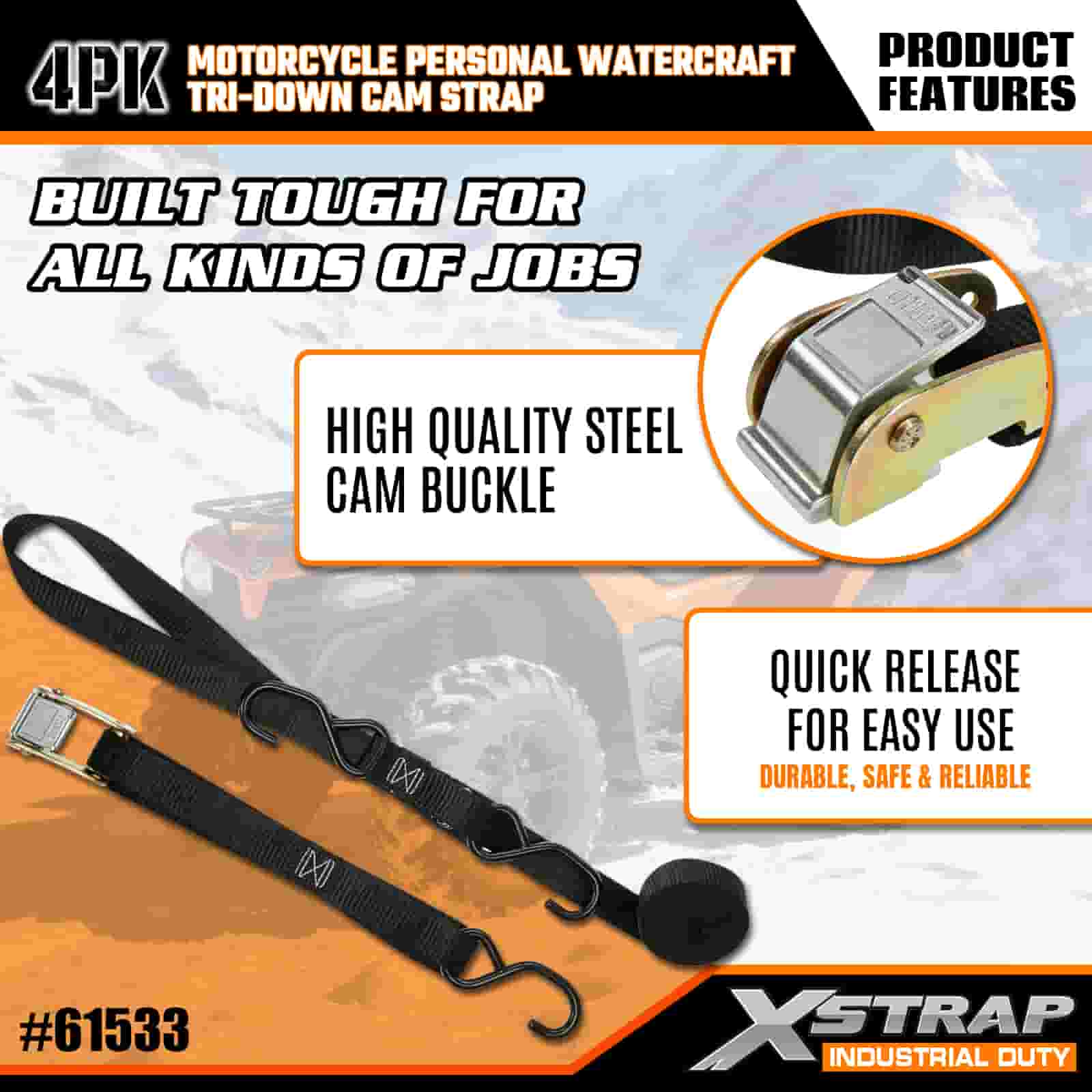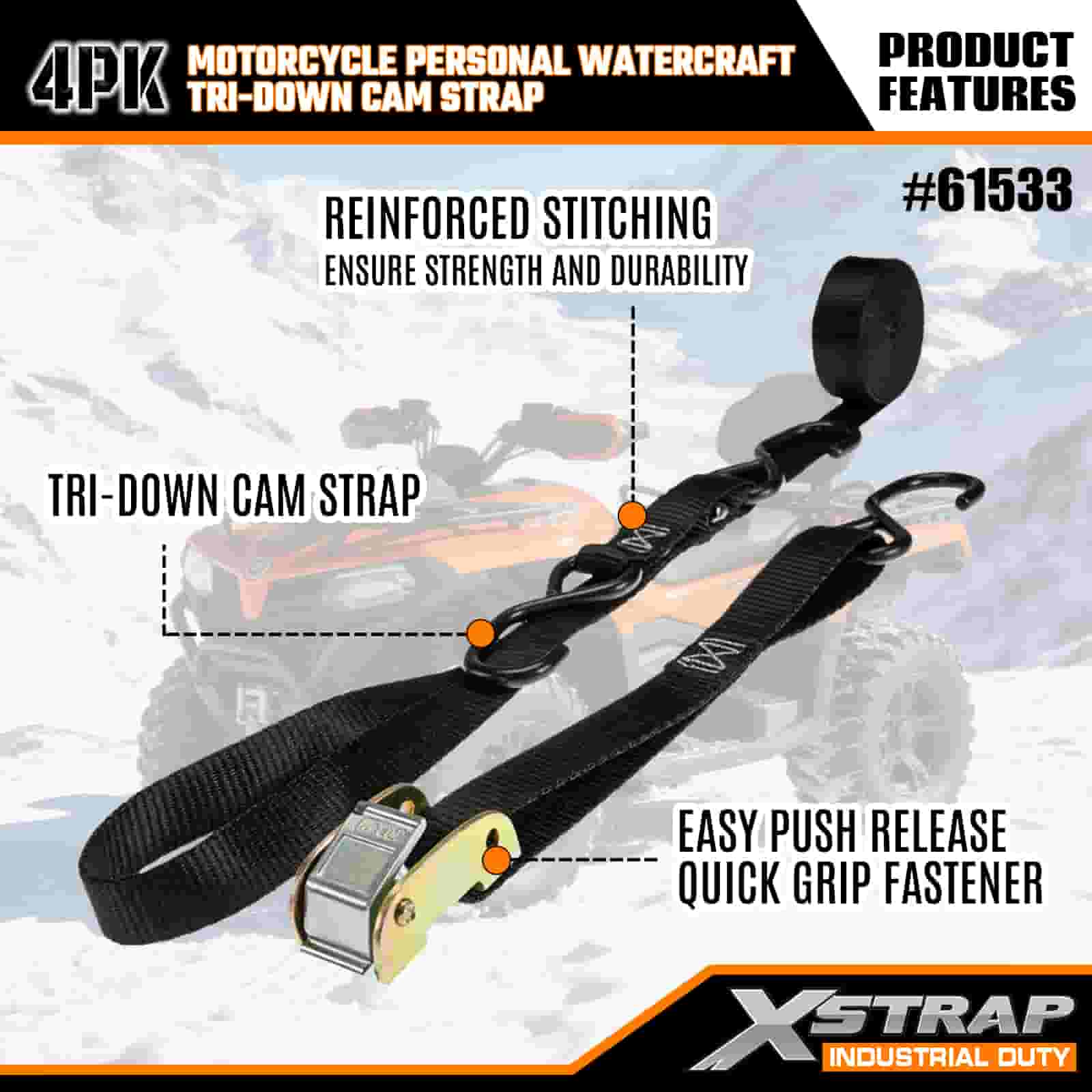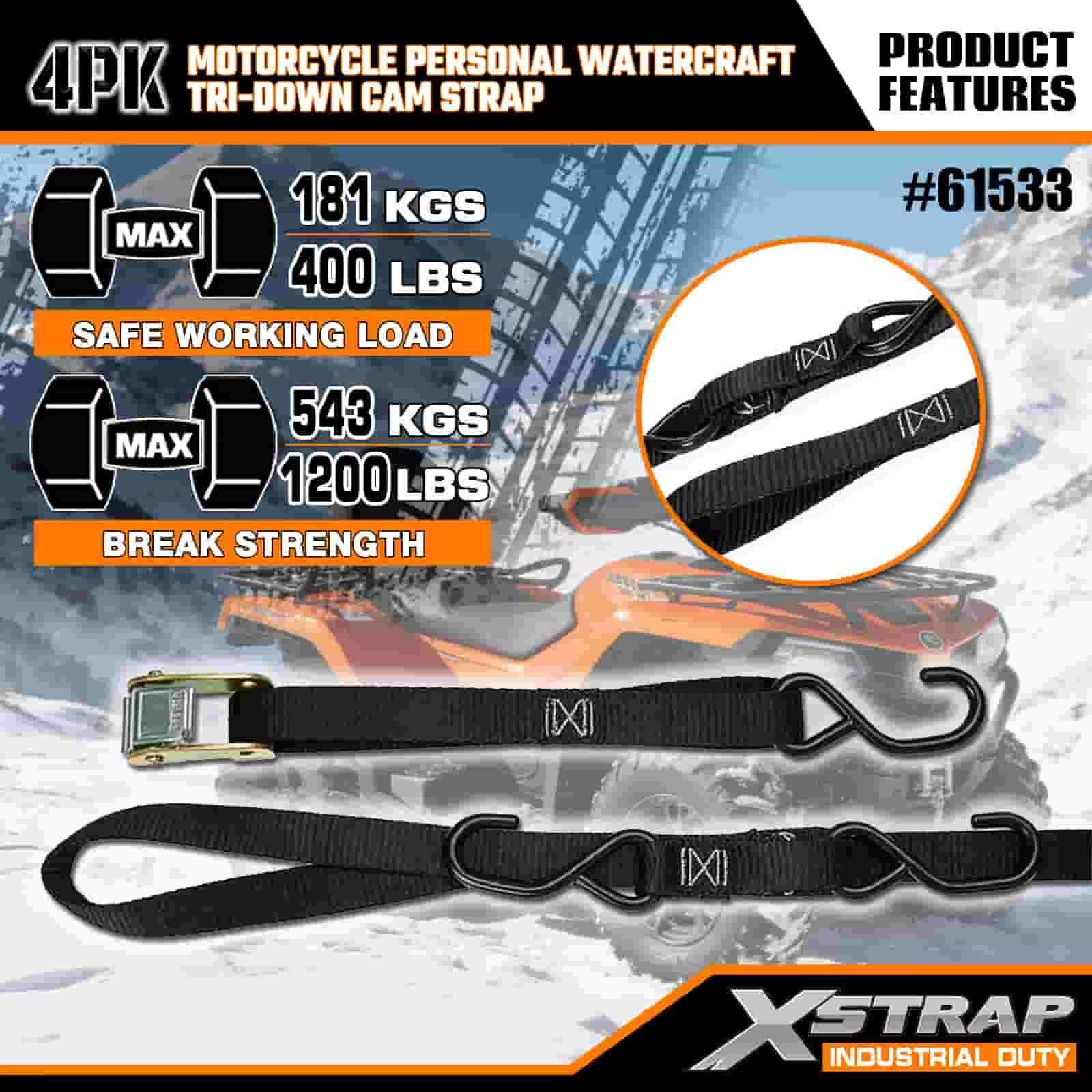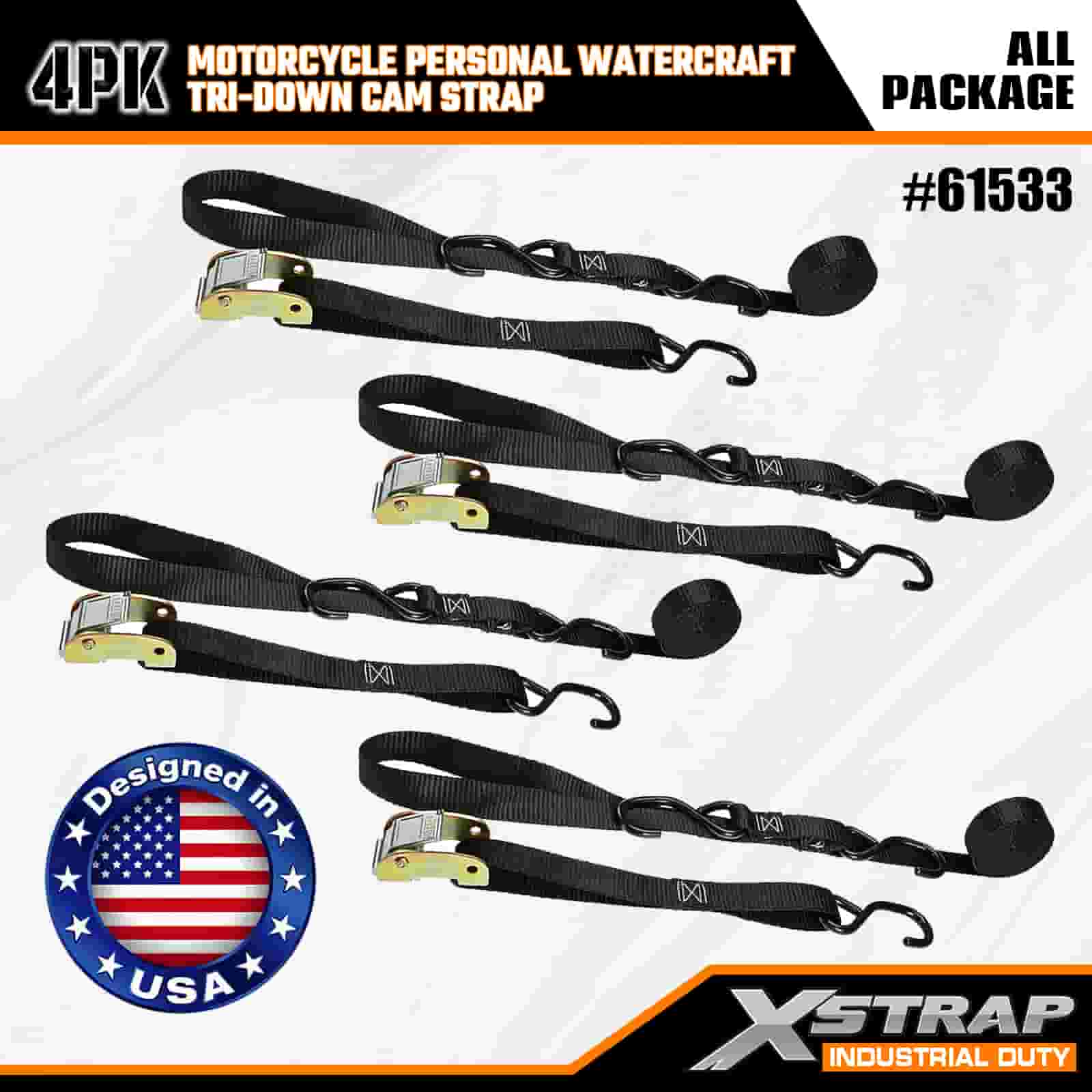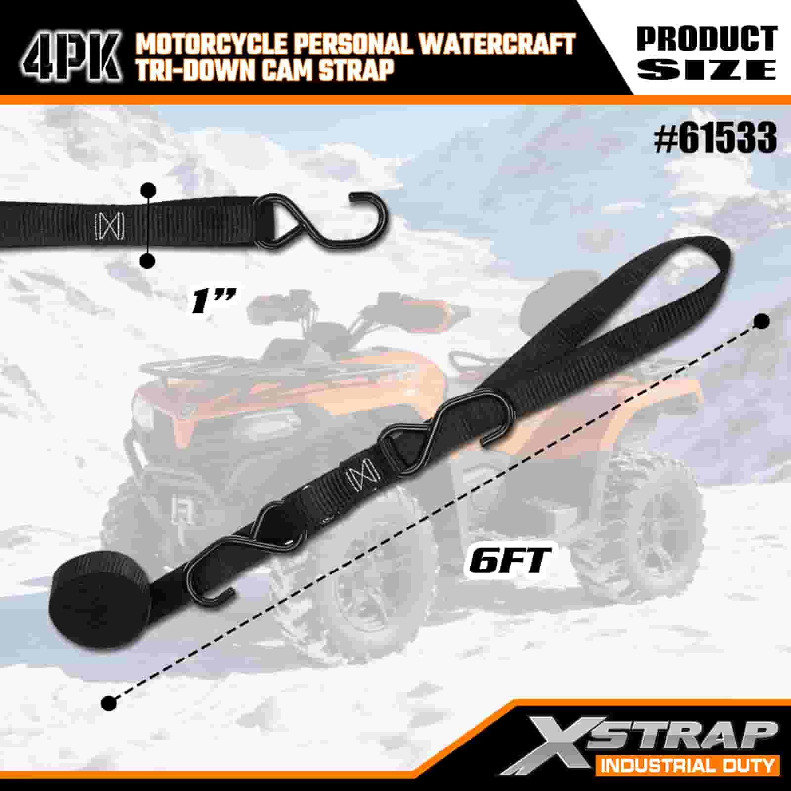 Xstrap 4PK মোটরসাইকেল পার্সোনাল ওয়াটারক্রাফ্ট ট্রাই-ডাউন ক্যাম স্ট্র্যাপ, 1” x 6’ পলিয়েস্টার টাই ডাউন স্ট্র্যাপ পুল র্যাচেট বাকল স্ট্র্যাপ, 400lbs ক্যাপাসিটি কার্গো ল্যাশিং সিকিউরিং স্ট্র্যাপ এস হুক সহ সিরিয়াস প্রফেশনালের জন্য সিকিউর কার্গো ট্রেলার, ফ্ল্যাট কার্গো ট্রেলার, ফ্ল্যাট ব্লেড।
