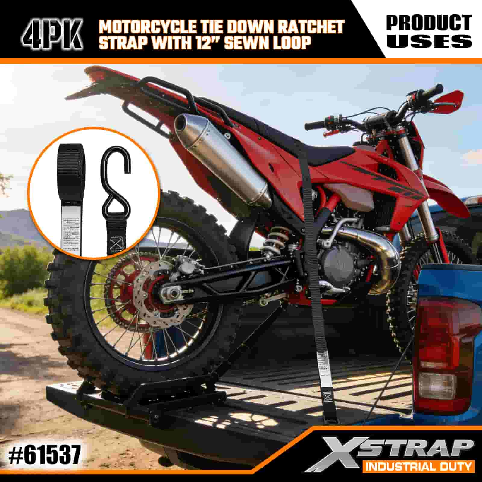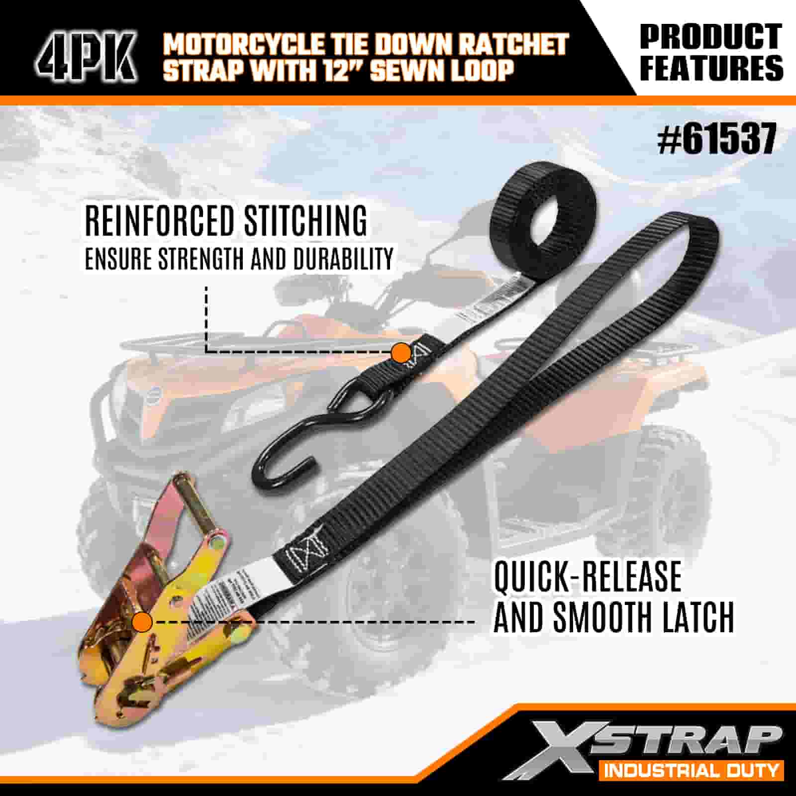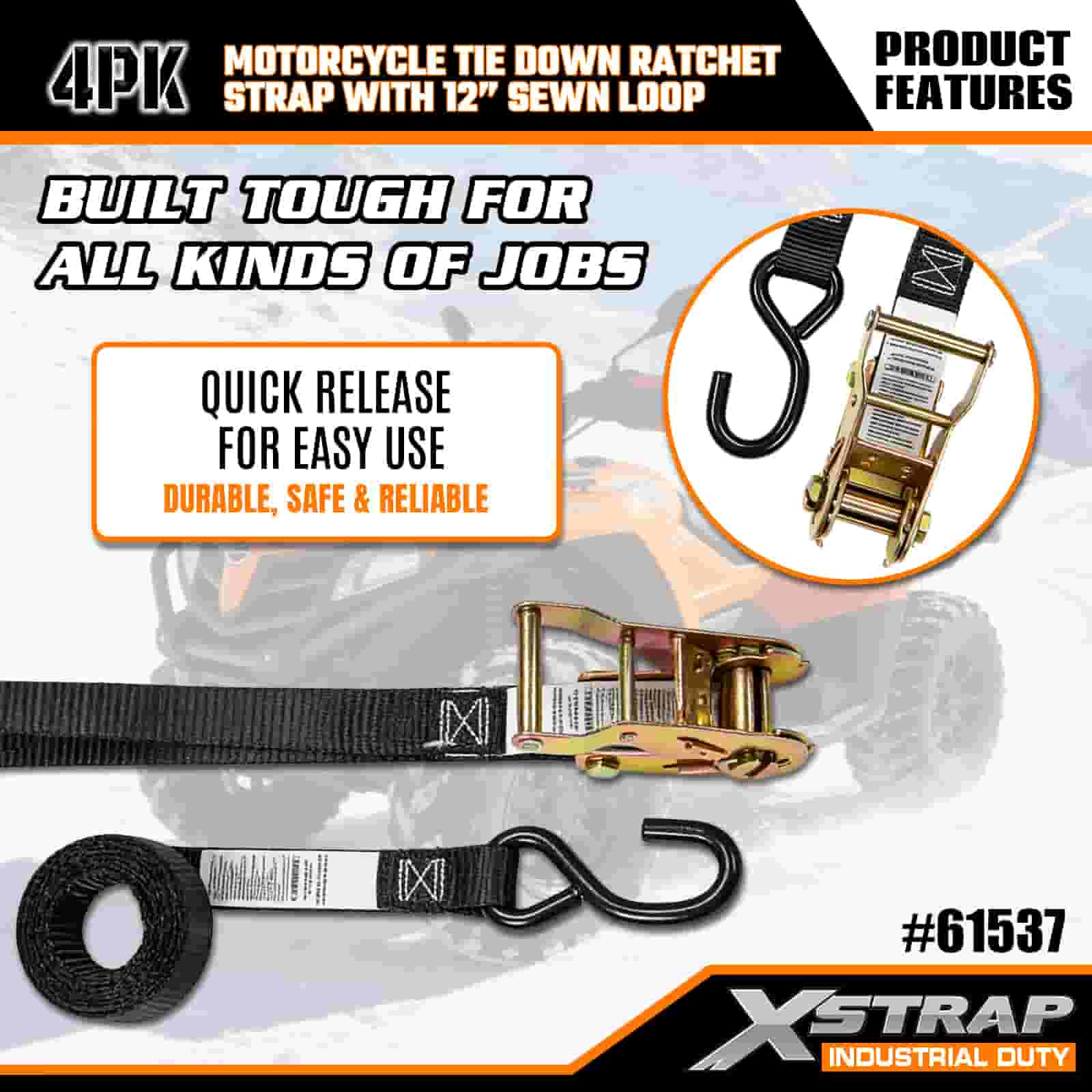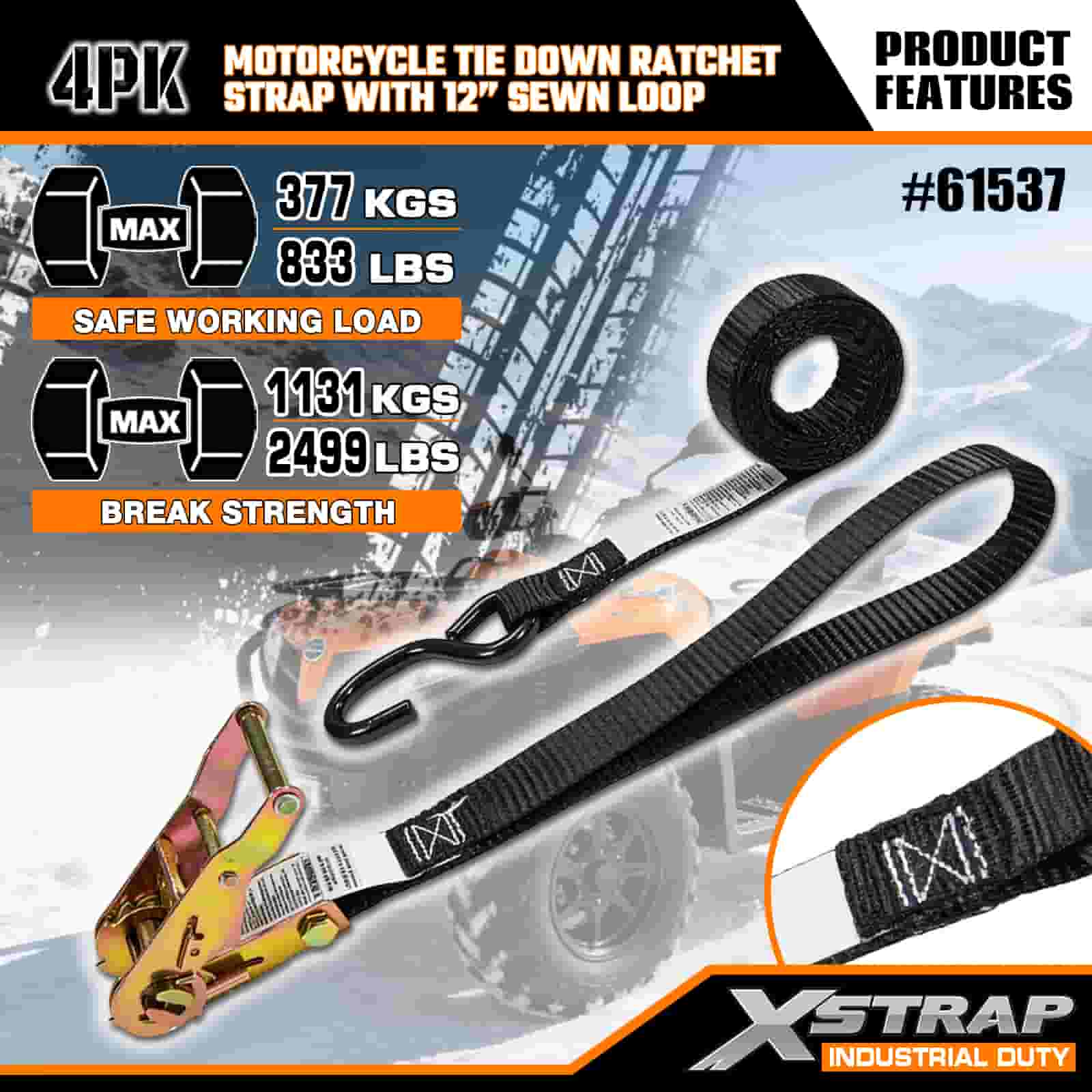 Xstrap 4PK মোটরসাইকেল টাই ডাউন র্যাচেট স্ট্র্যাপ 12” সেলাইন লুপ, 1”x 6’ পলিয়েস্টার টাই ডাউন স্ট্র্যাপ পুল র্যাচেট স্ট্র্যাপ, 833lbs ক্যাপাসিটি কার্গো ল্যাশিং সিকিউরিং স্ট্র্যাপস এস হুক সহ সিরিয়াস প্রফেশনাল টু সিকিউর, ফ্ল্যাট কার্গো ট্র্যাল, ফ্ল্যাট কার্গো ট্র্যাপ।