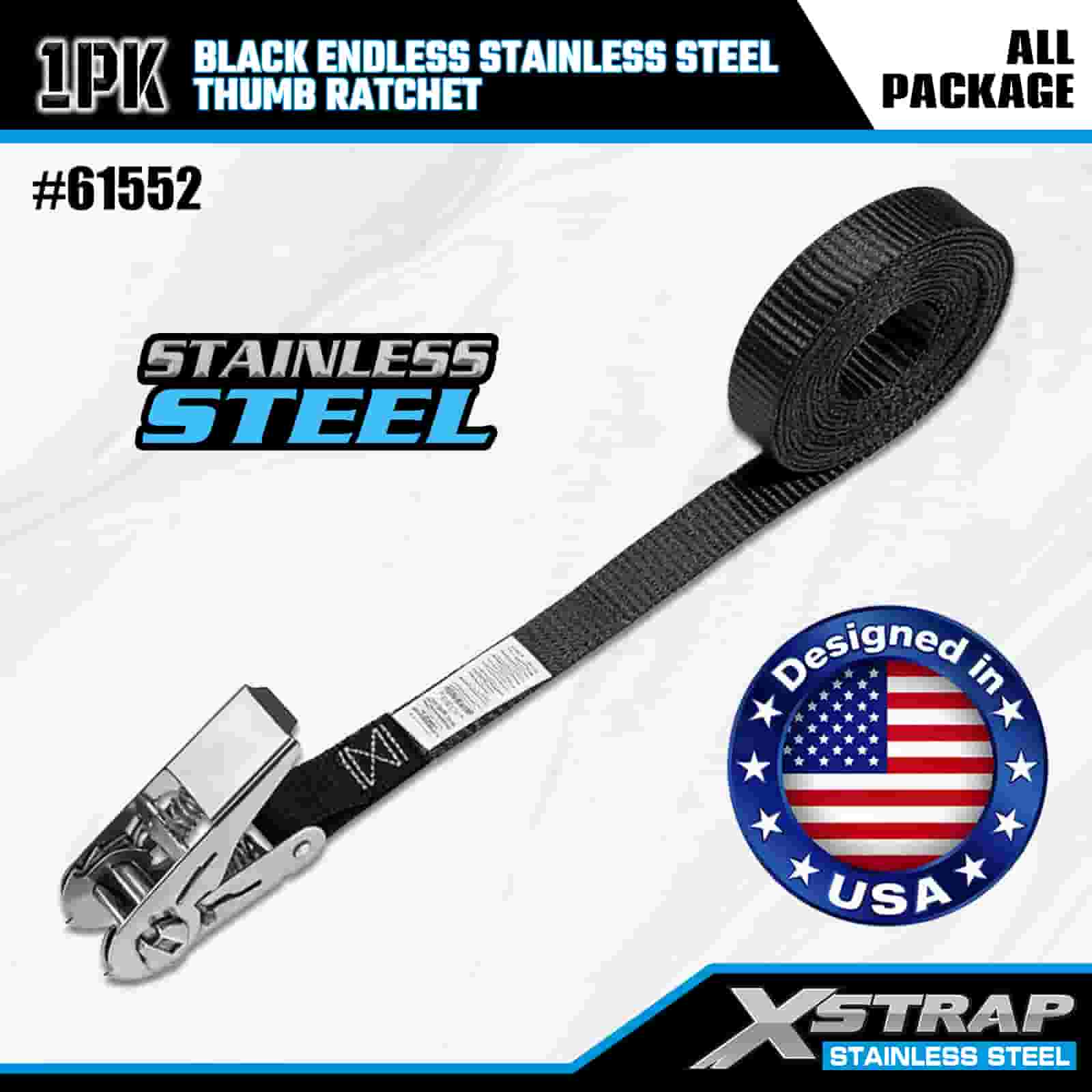 1” x 15’ ব্ল্যাক এন্ডলেস স্টেইনলেস স্টিলের থাম্ব র্যাচেট