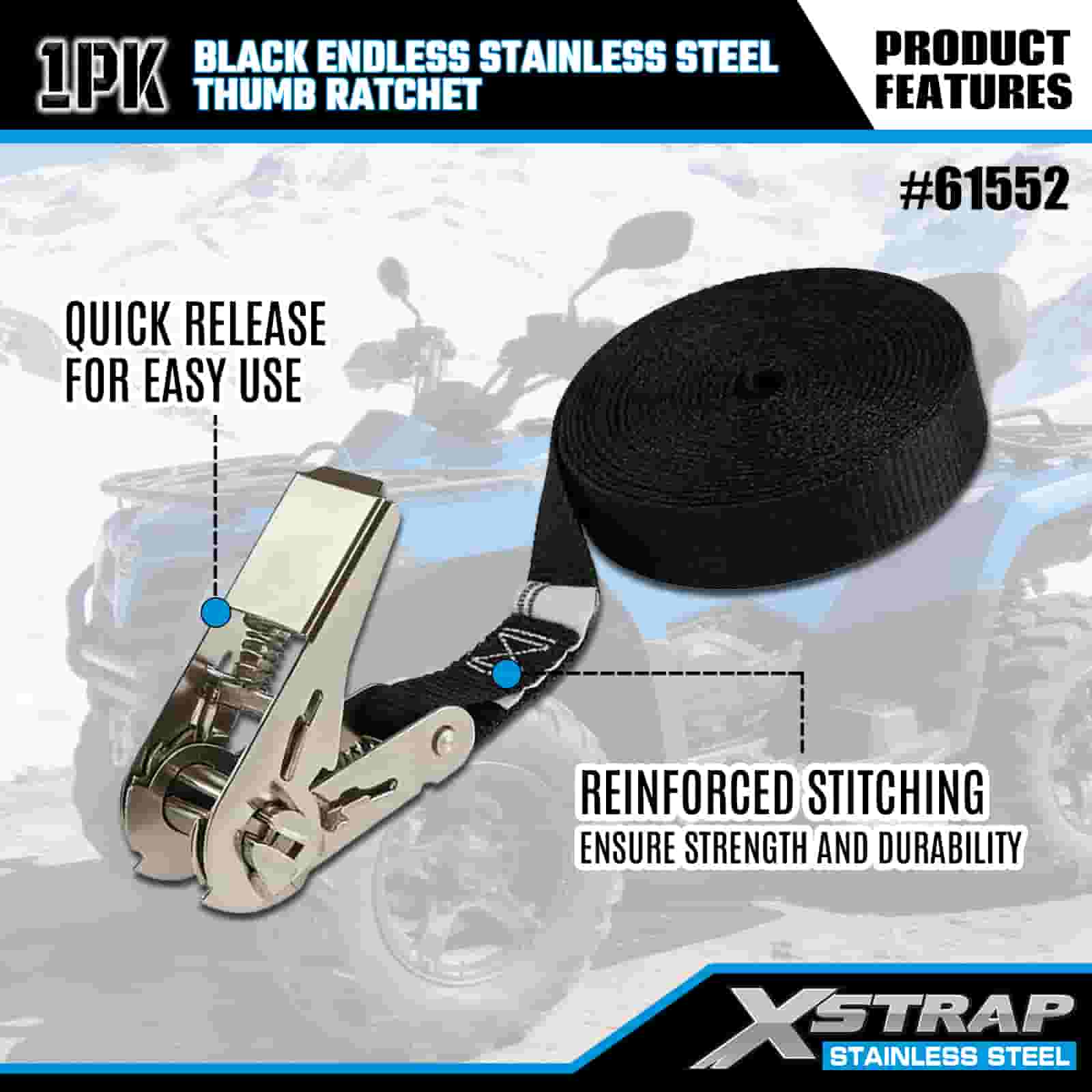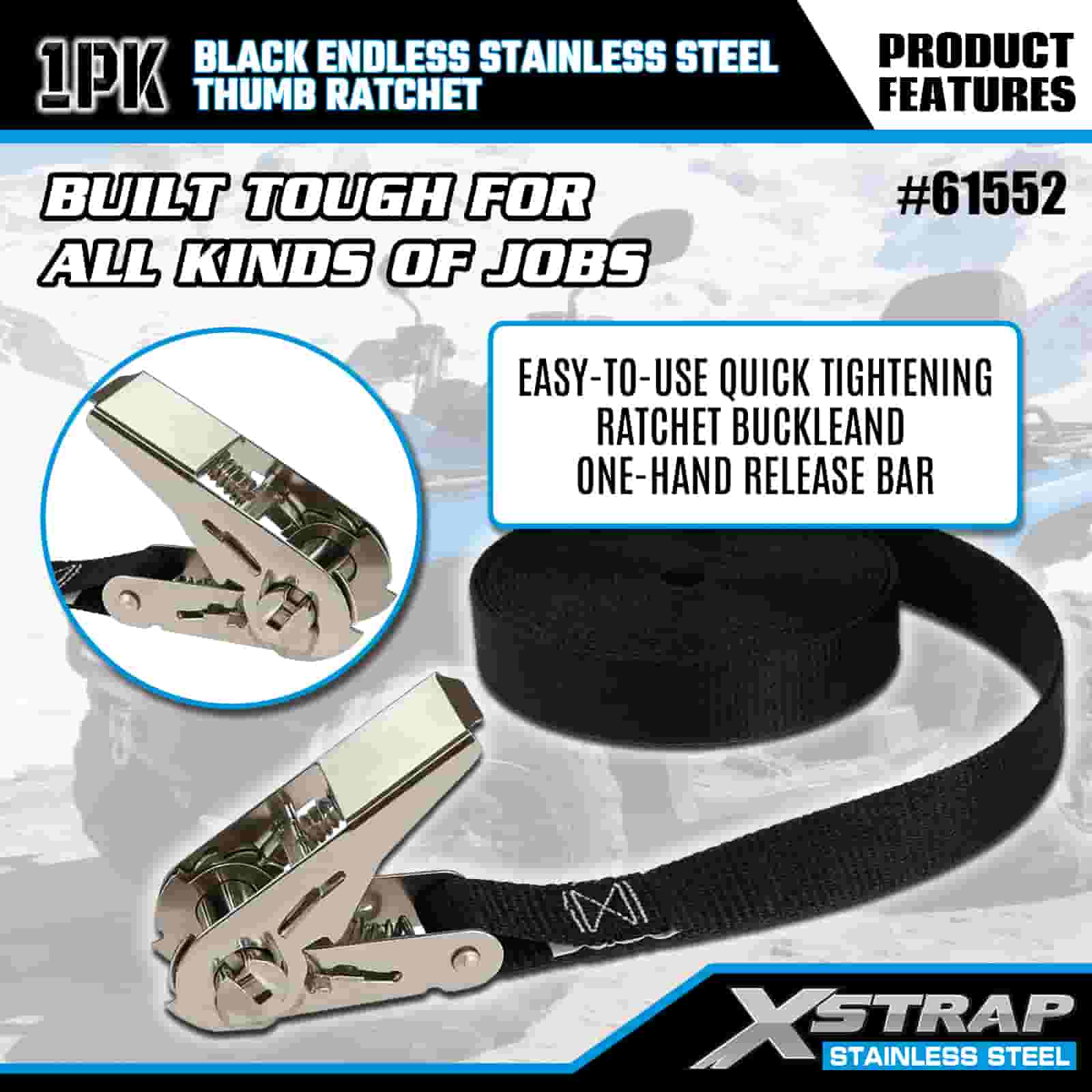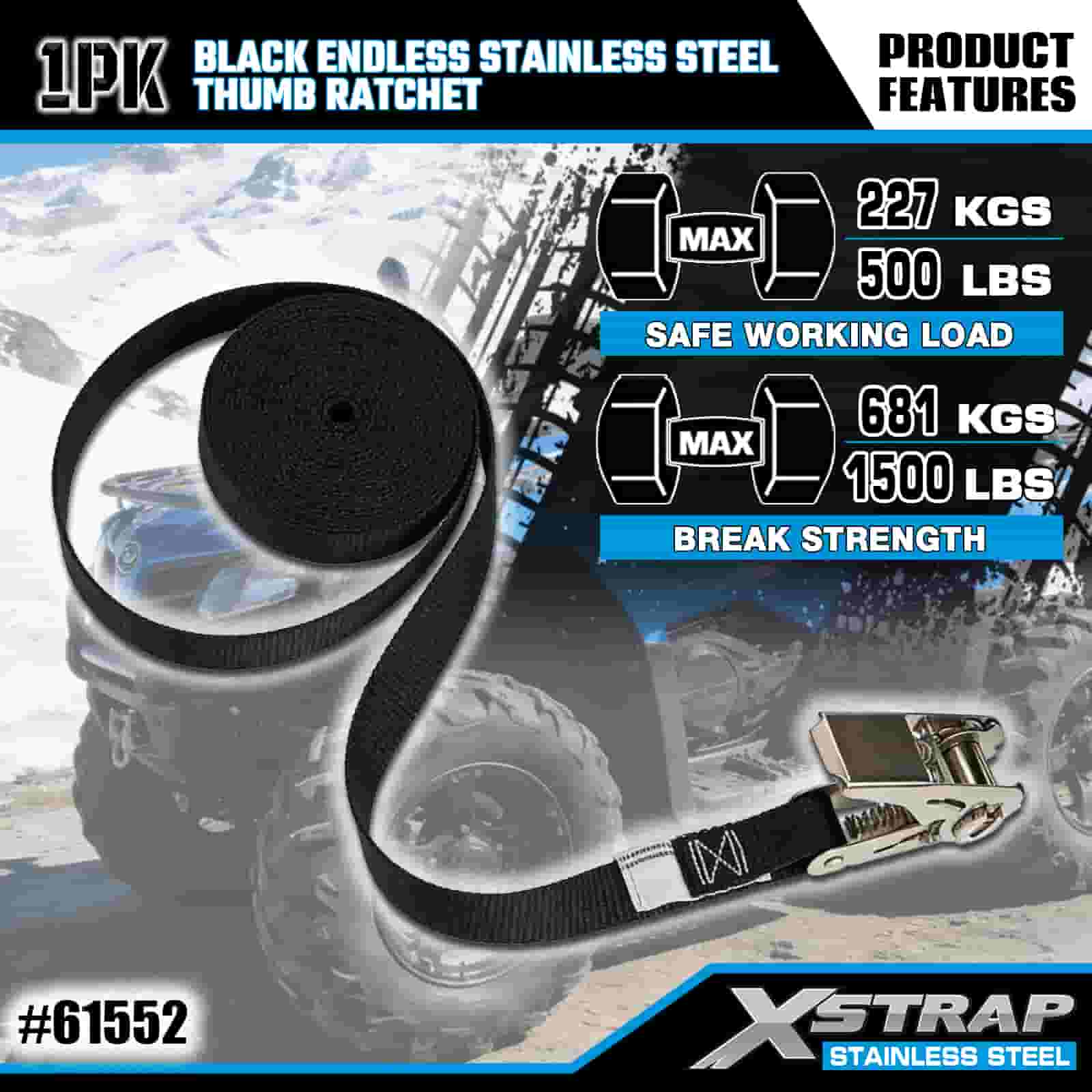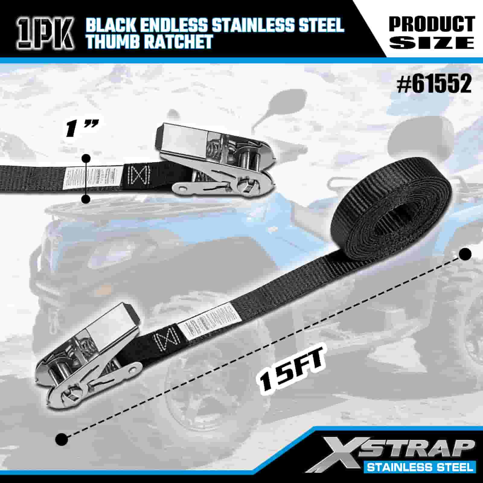 এক্সস্ট্র্যাপ ব্ল্যাক এন্ডলেস স্টেইনলেস স্টিল থাম্ব র্যাচেট, 1” x 15’ পলিয়েস্টার টাই ডাউন স্ট্র্যাপ র্যাচেট স্ট্র্যাপ, ট্রেলারের জন্য 500lbs ক্যাপাসিটি কার্গো ল্যাশিং সিকিউরিং স্ট্র্যাপ, ফ্ল্যাট বেড ট্রেলার স্কি বোট, ছোট গাড়ি, ভারী সরঞ্জাম।