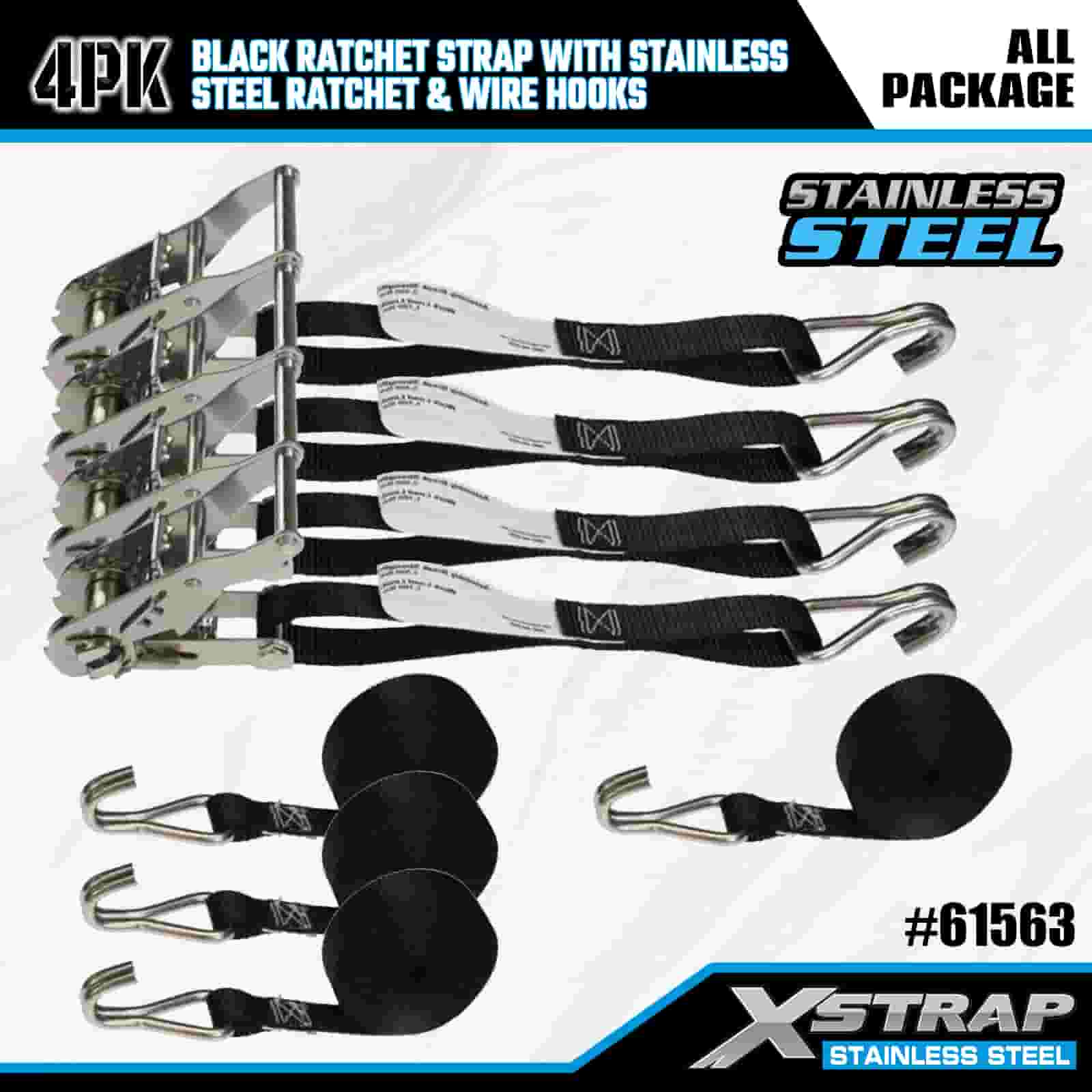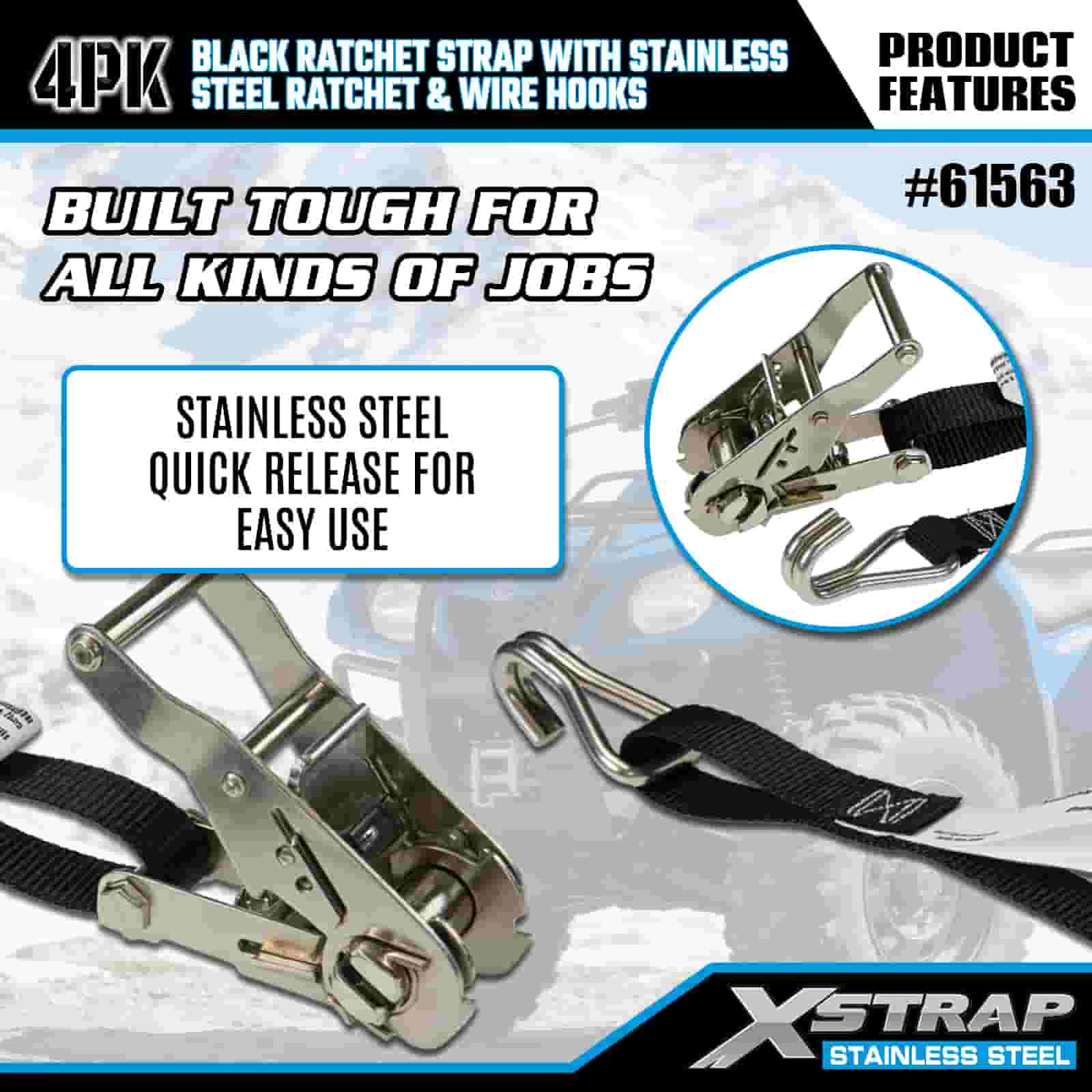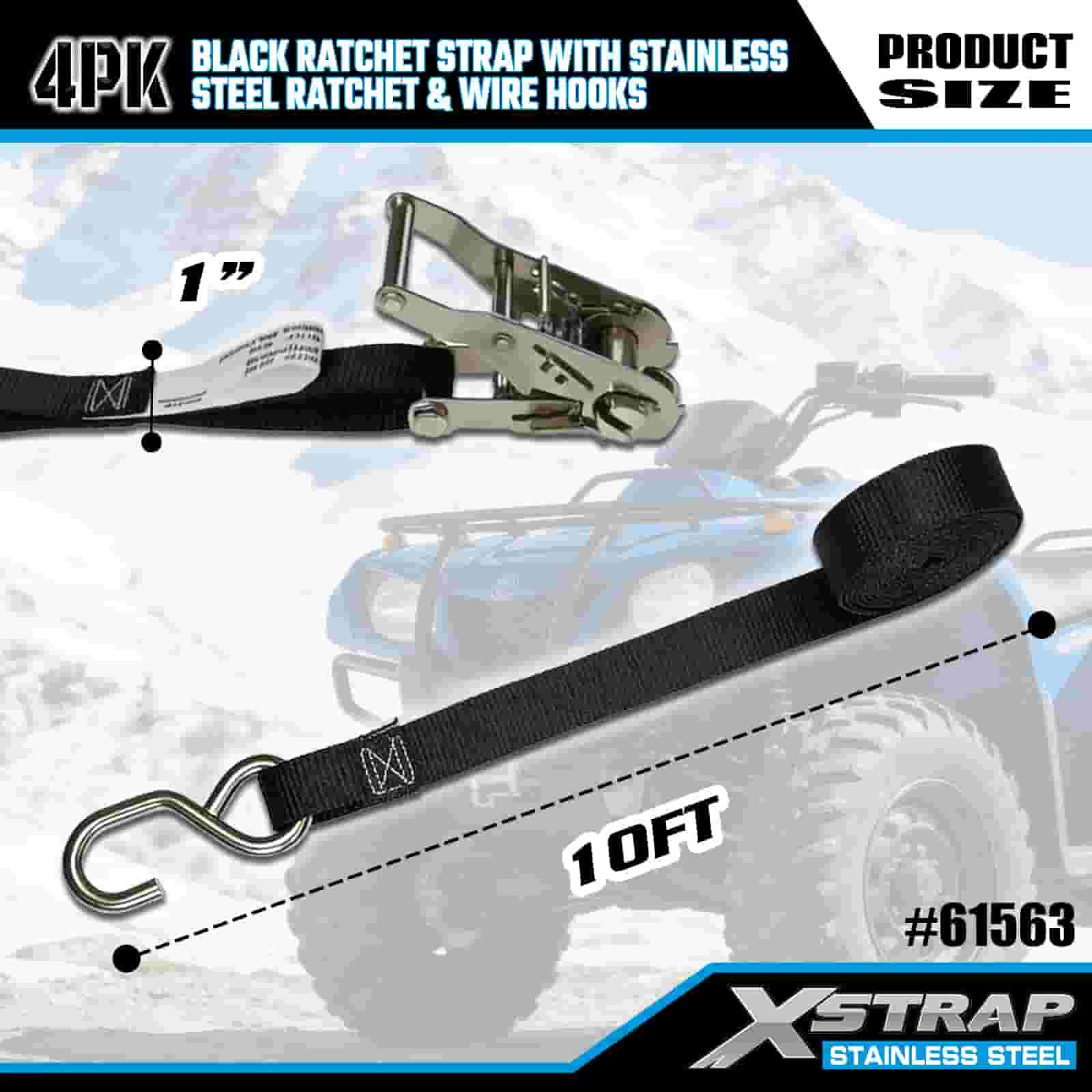 স্টেইনলেস স্টীল র্যাচেট এবং তারের হুক সহ Xstrap 4PK কালো র্যাচেট স্ট্র্যাপ, 1” x 10’ পলিয়েস্টার টাই ডাউন স্ট্র্যাপ র্যাচেট স্ট্র্যাপ, ট্রেলারের জন্য ওয়্যার হুক সহ 1000lbs ক্যাপাসিটি কার্গো ল্যাশিং সিকিউরিং স্ট্র্যাপ, ফ্ল্যাট বেড ট্রেলার স্কি বোট, ফ্ল্যাট বেড ট্রেলার স্কি বোট।