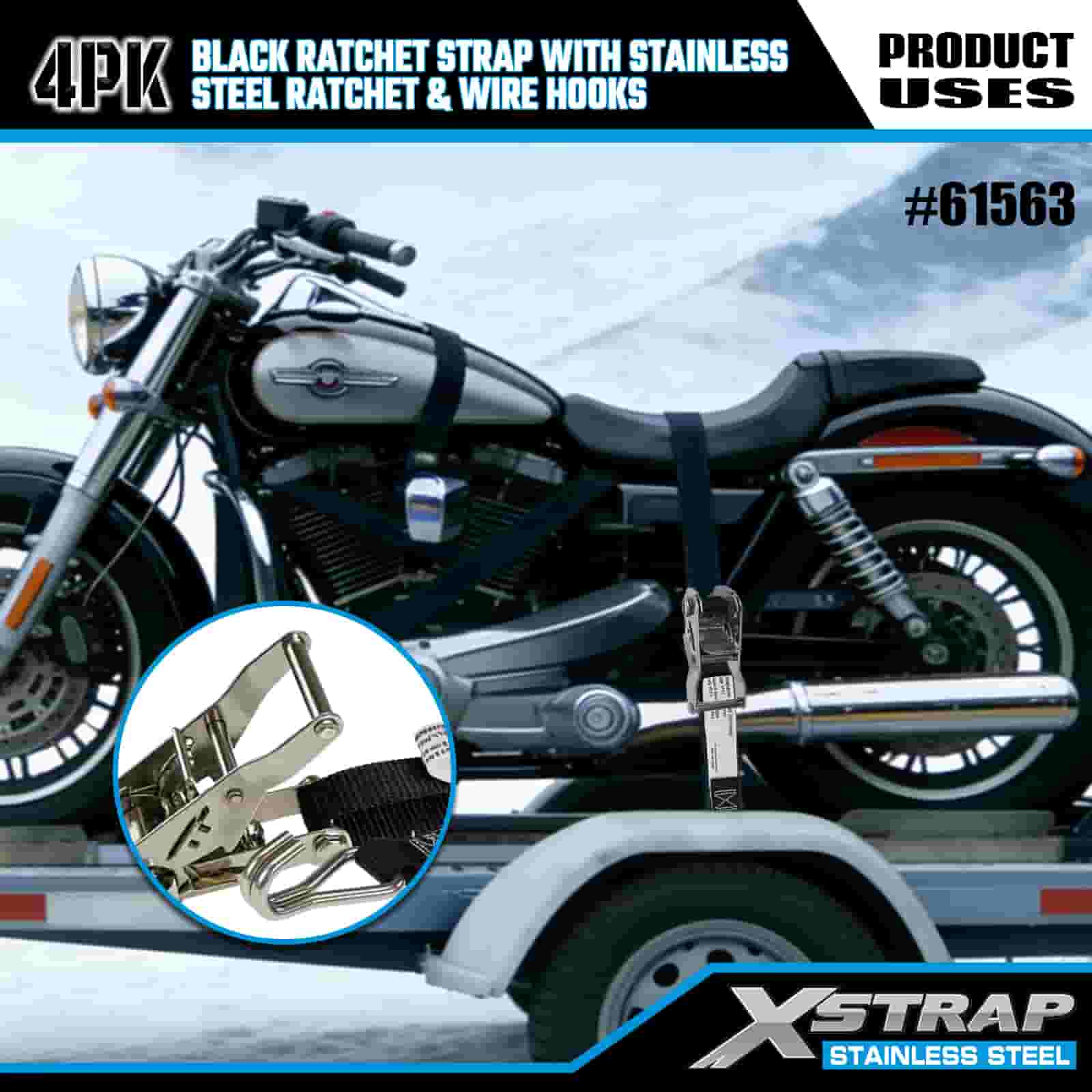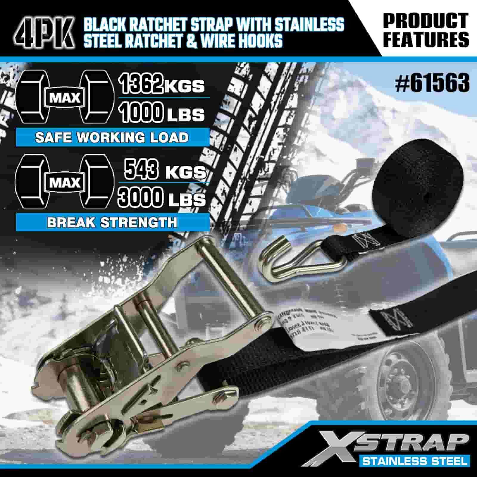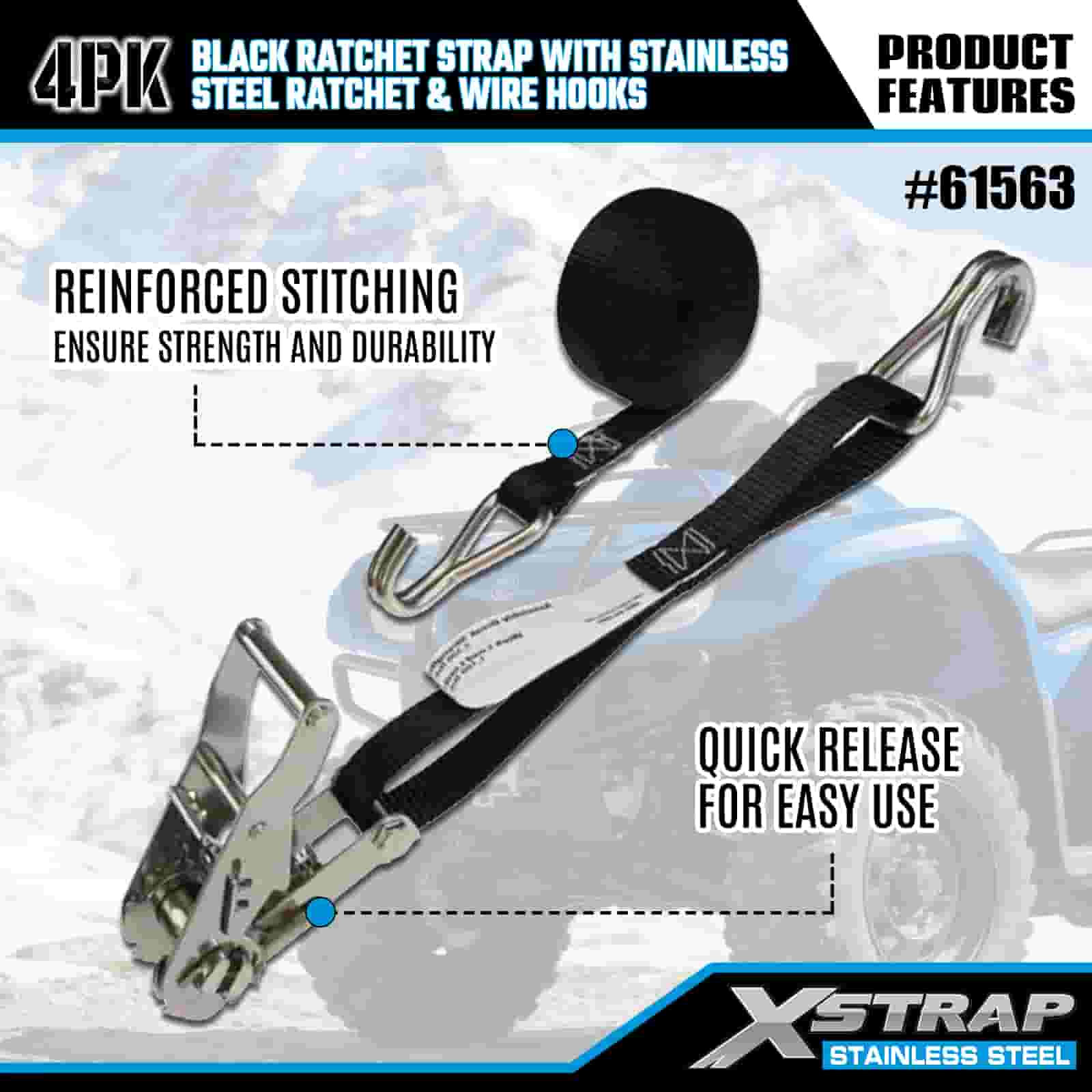 স্টেইনলেস স্টীল র্যাচেট এবং তারের হুক সহ Xstrap 4PK কালো র্যাচেট স্ট্র্যাপ, 1” x 10’ পলিয়েস্টার টাই ডাউন স্ট্র্যাপ র্যাচেট স্ট্র্যাপ, ট্রেলারের জন্য ওয়্যার হুক সহ 1000lbs ক্যাপাসিটি কার্গো ল্যাশিং সিকিউরিং স্ট্র্যাপ, ফ্ল্যাট বেড ট্রেলার স্কি বোট, ফ্ল্যাট বেড ট্রেলার স্কি বোট।