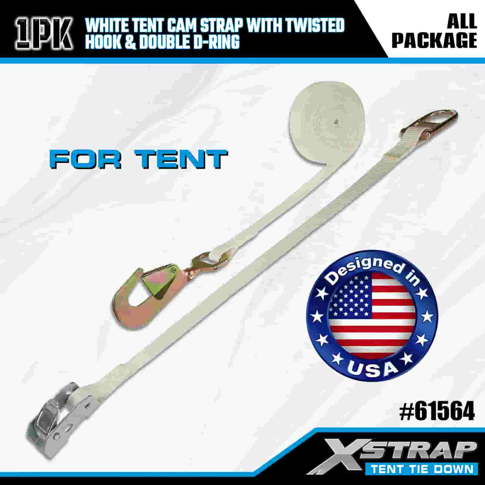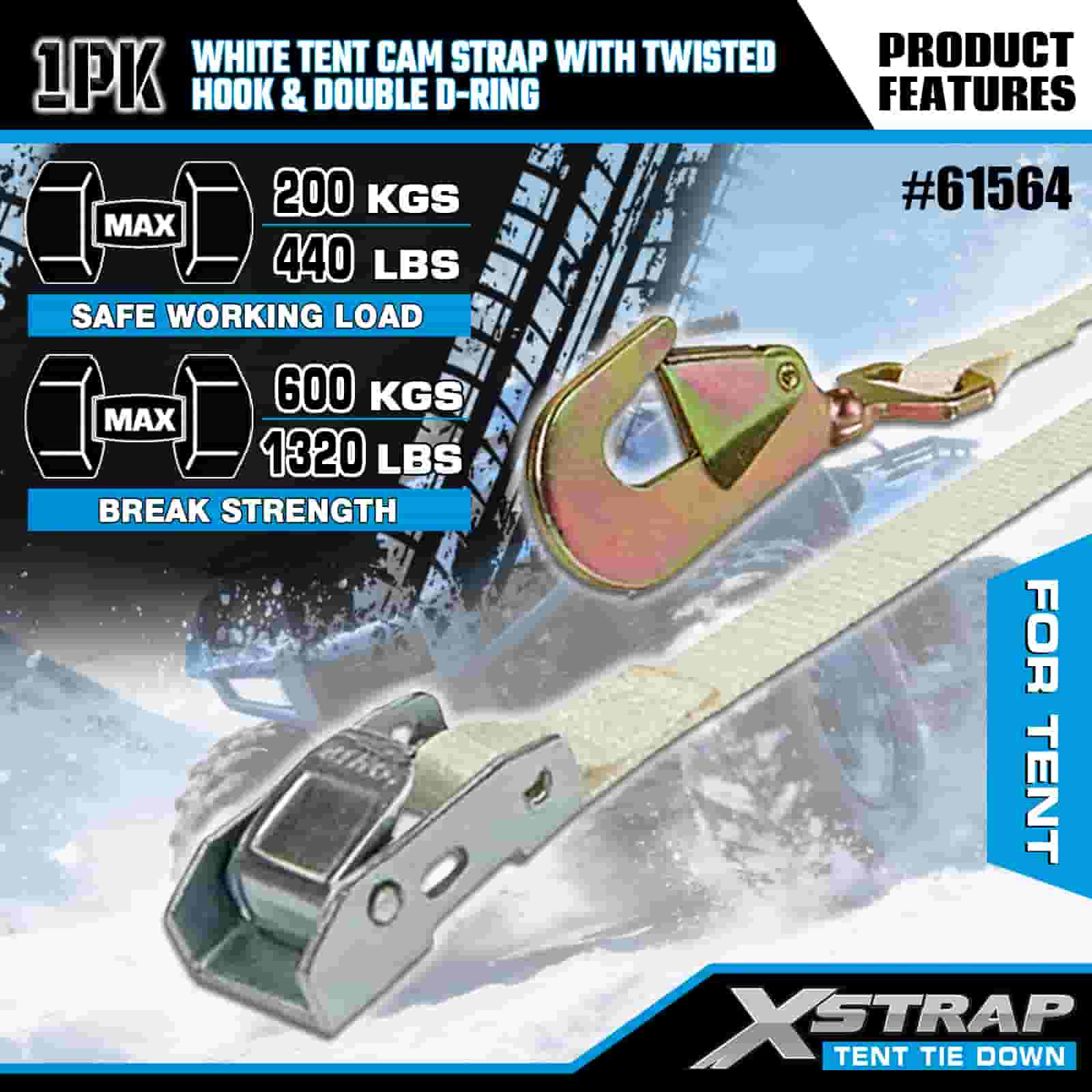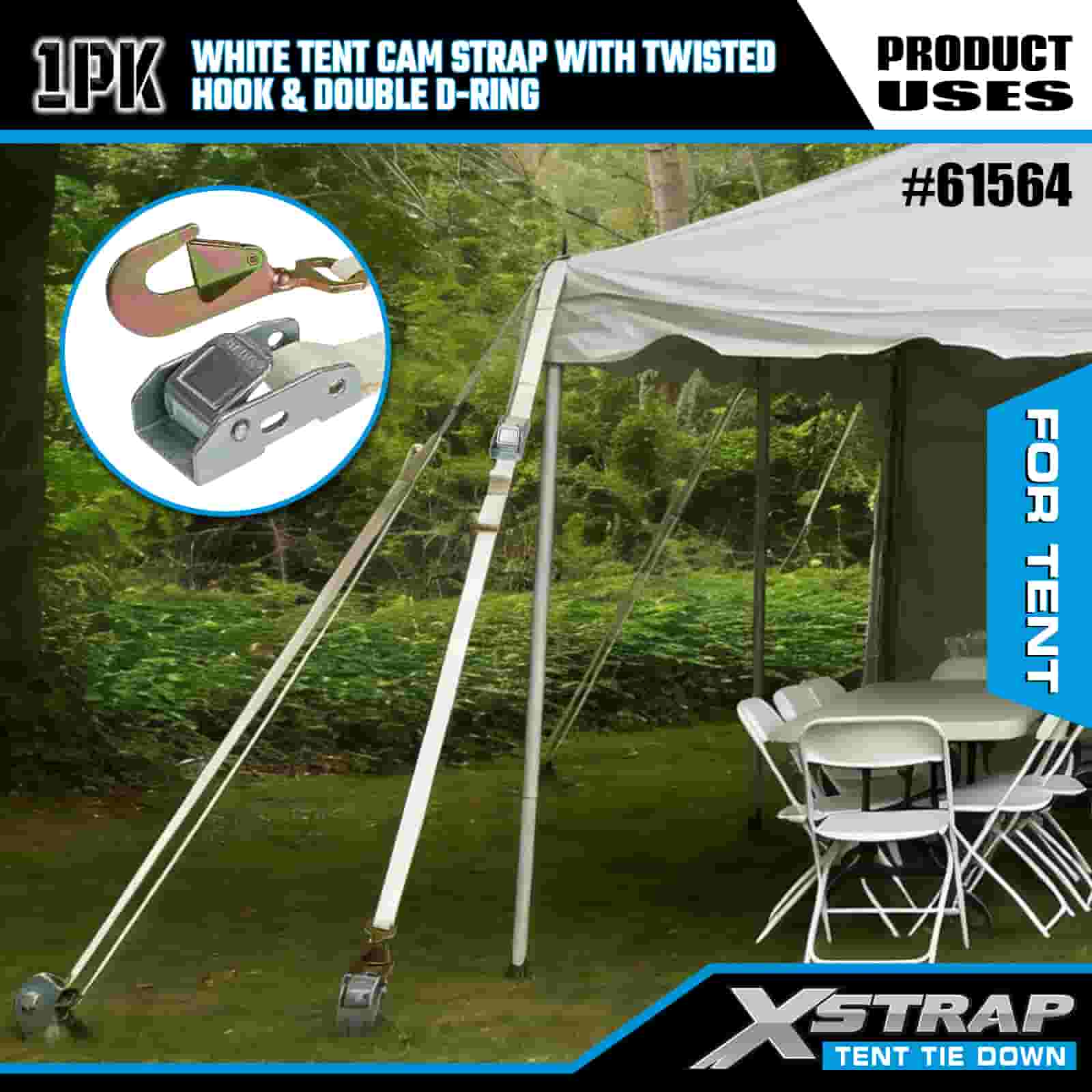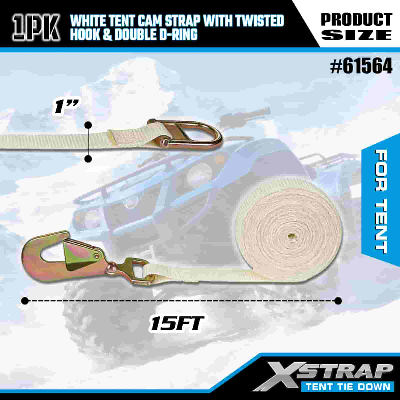 টুইস্টেড হুক এবং ডাবল ডি রিং সহ এক্সস্ট্র্যাপ হোয়াইট টেন্ট ক্যাম স্ট্র্যাপ, 1” x 15’ পলিয়েস্টার টাই ডাউন স্ট্র্যাপ র্যাচেট স্ট্র্যাপ, 440lbs ক্যাপাসিটি কার্গো ল্যাশিং সিকিউরিং স্ট্র্যাপ। টুইস্টেড হুক এবং ডাবল ডি রিং পণ্যসম্ভার নিয়ন্ত্রণ, তাঁবু স্থির জন্য.