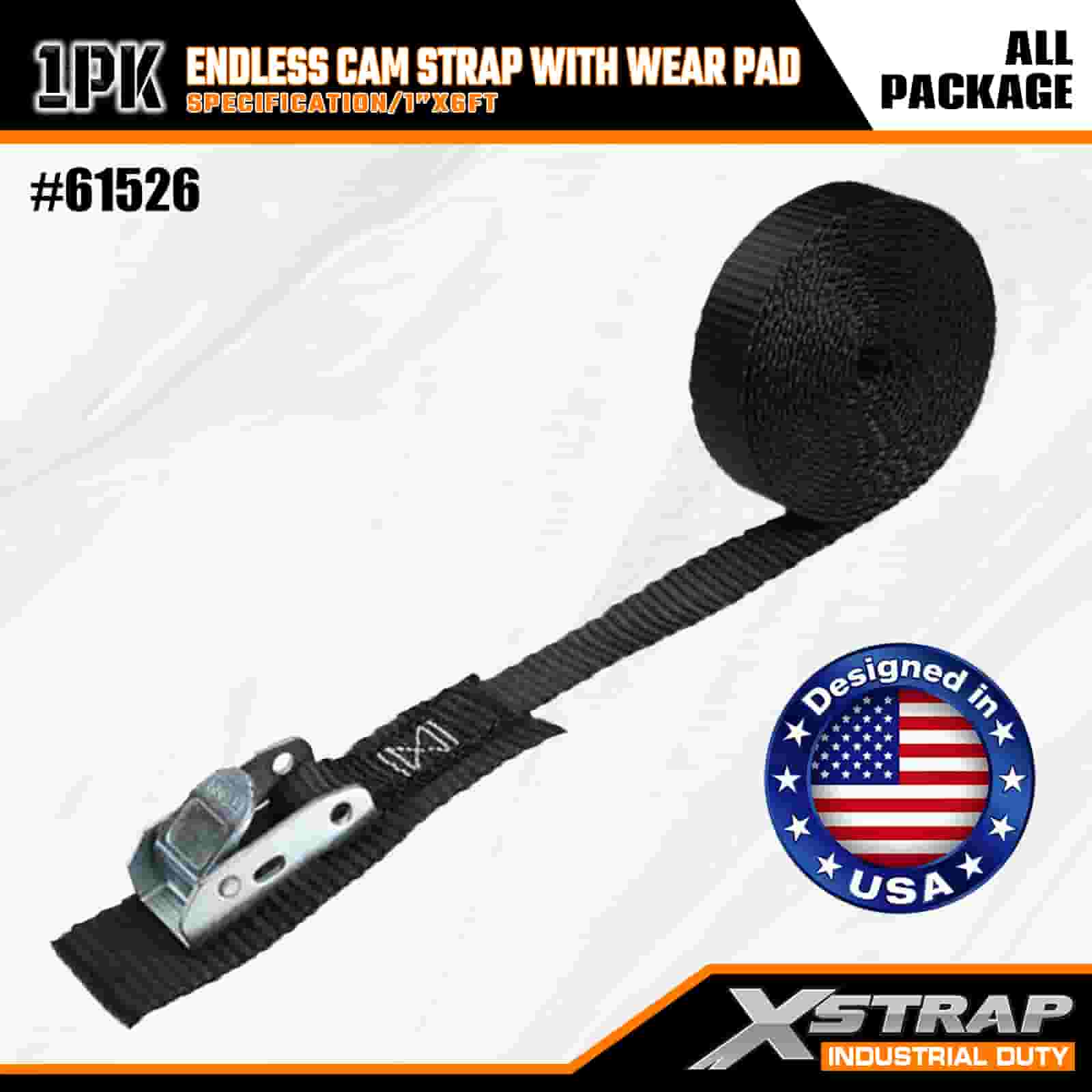 পরিধান প্যাড সহ 1" x 6' অন্তহীন ক্যাম স্ট্র্যাপ