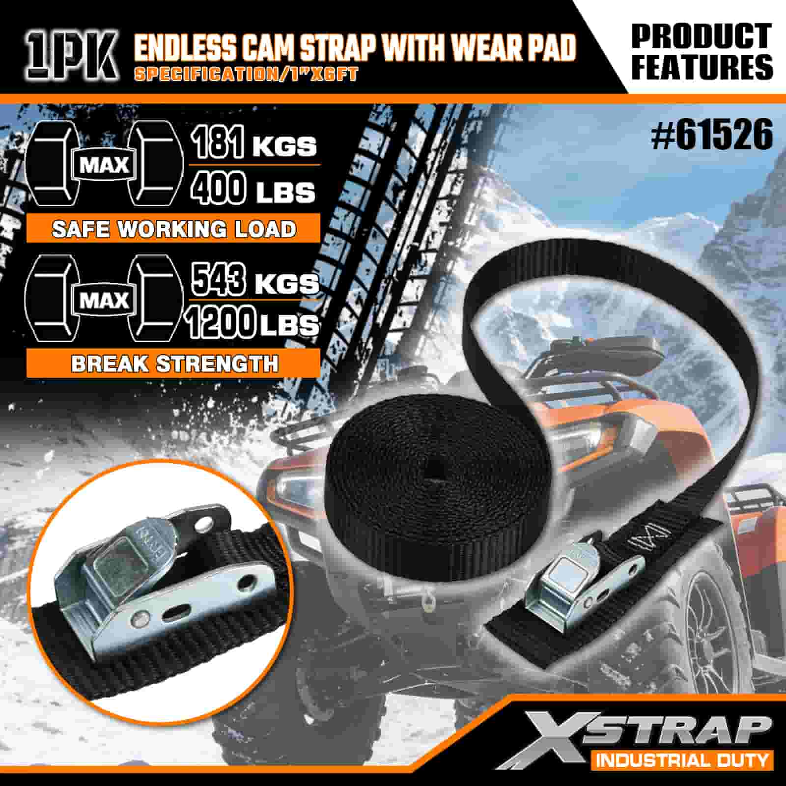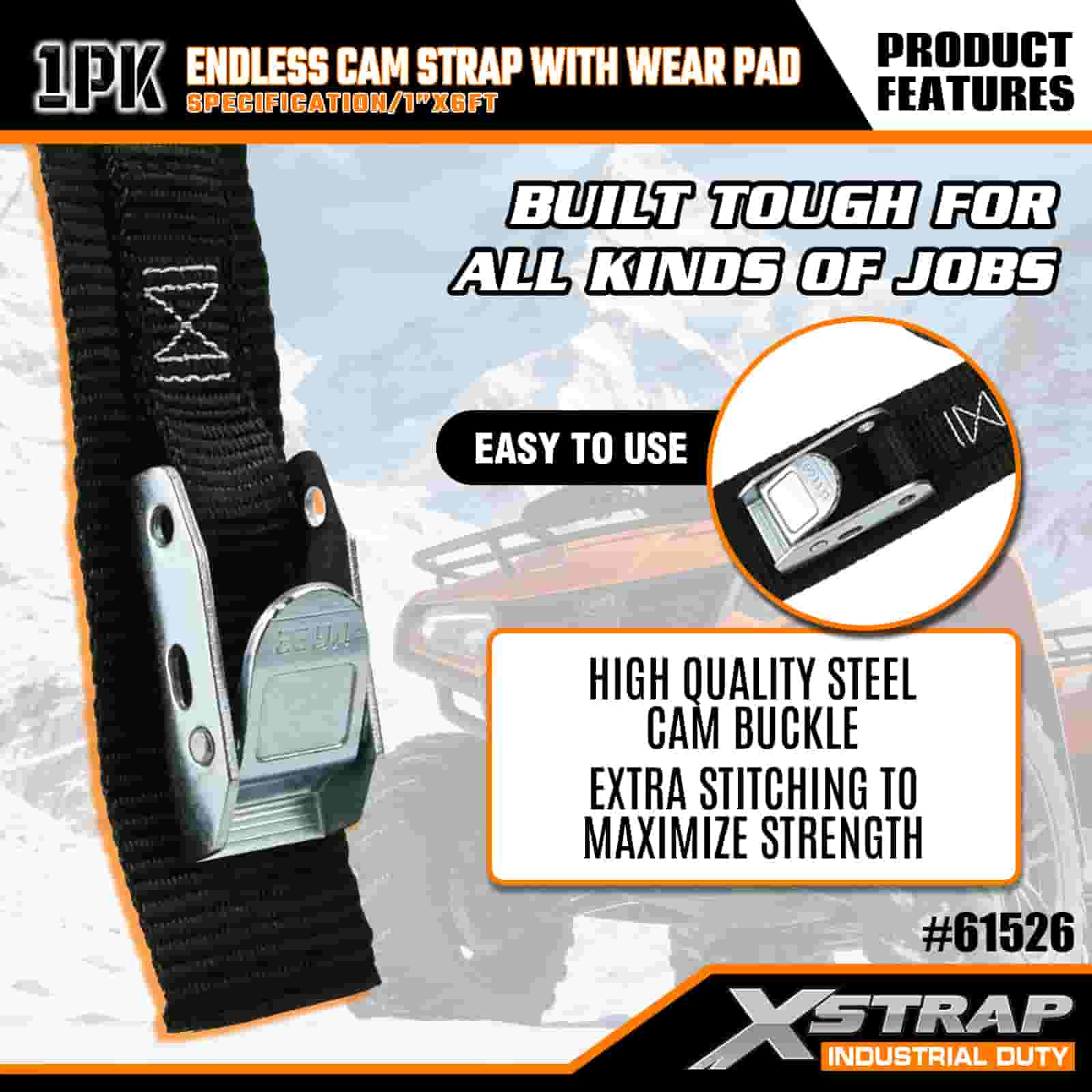 পরিধান প্যাড সহ এক্সস্ট্র্যাপ এন্ডলেস ক্যাম স্ট্র্যাপ, 1” x 6’ পলিয়েস্টার টাই ডাউন স্ট্র্যাপ পুল ক্যাম বাকল স্ট্র্যাপ, কার্গো ট্রেলার, ফ্ল্যাট বেড ট্রেলার, স্কি বোট, ছোট গাড়ি সুরক্ষিত করার জন্য গুরুতর পেশাদারদের জন্য 400lbs ক্ষমতার কার্গো ল্যাশিং সিকিউরিং স্ট্র্যাপ।