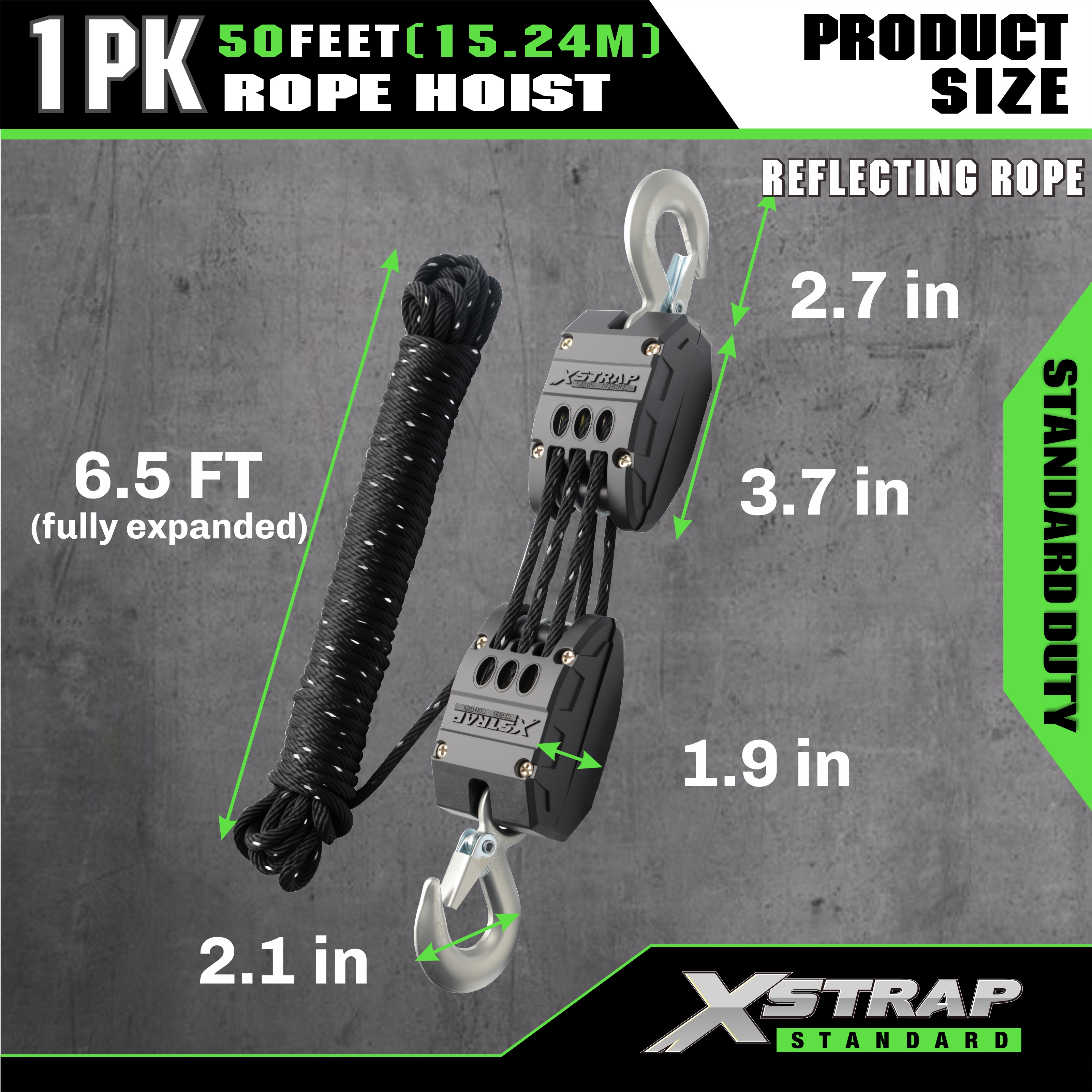 XSTRAP AHLT0003-প্রতিফলিত কালো দড়ি হোস্ট পুলি সিস্টেম 1000LB