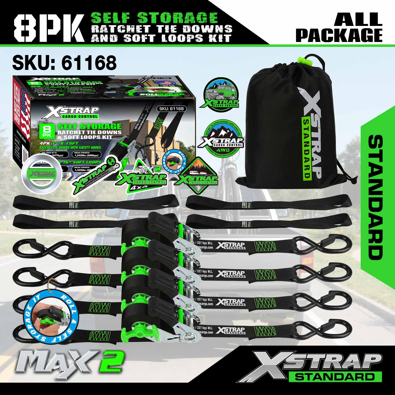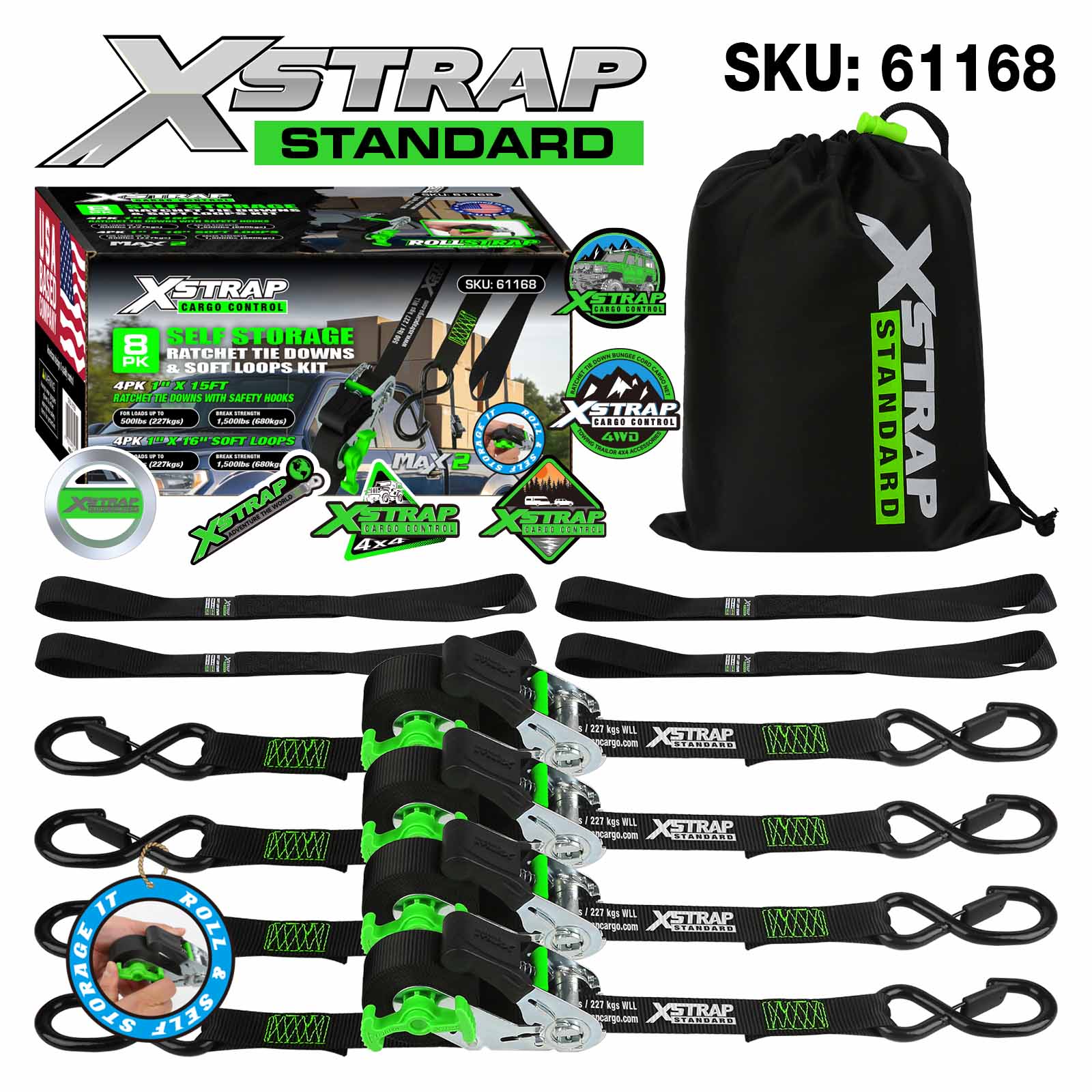 এটি হল Xstrap 1”×15’ র্যাচেট টাই ডাউন স্ট্র্যাপ। এটি একটি 4pk সেট। র্যাচেট স্ট্র্যাপগুলি সাধারণত চলন্ত, যন্ত্রপাতি এবং মোটরসাইকেল চালানোর জন্য ব্যবহৃত হয়।