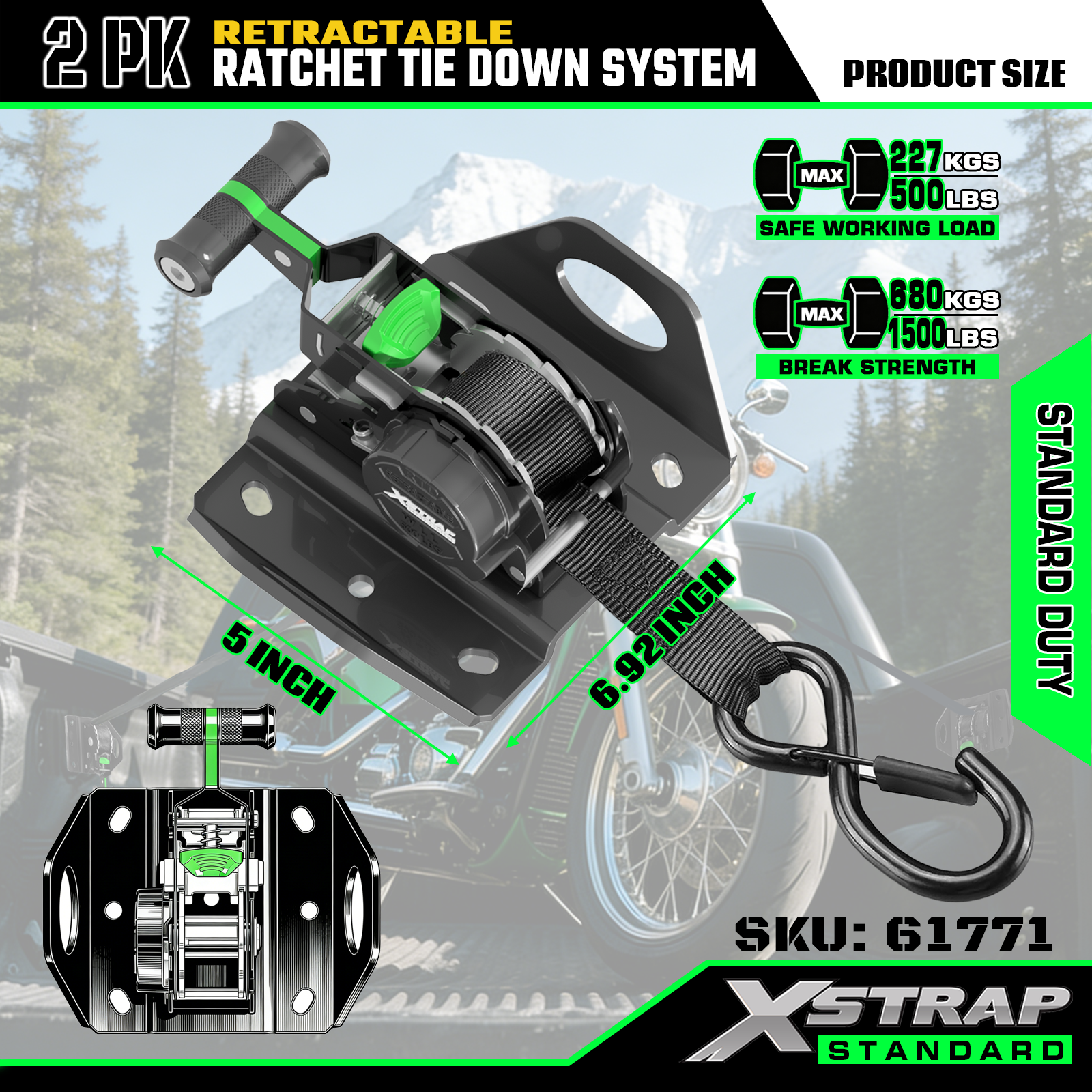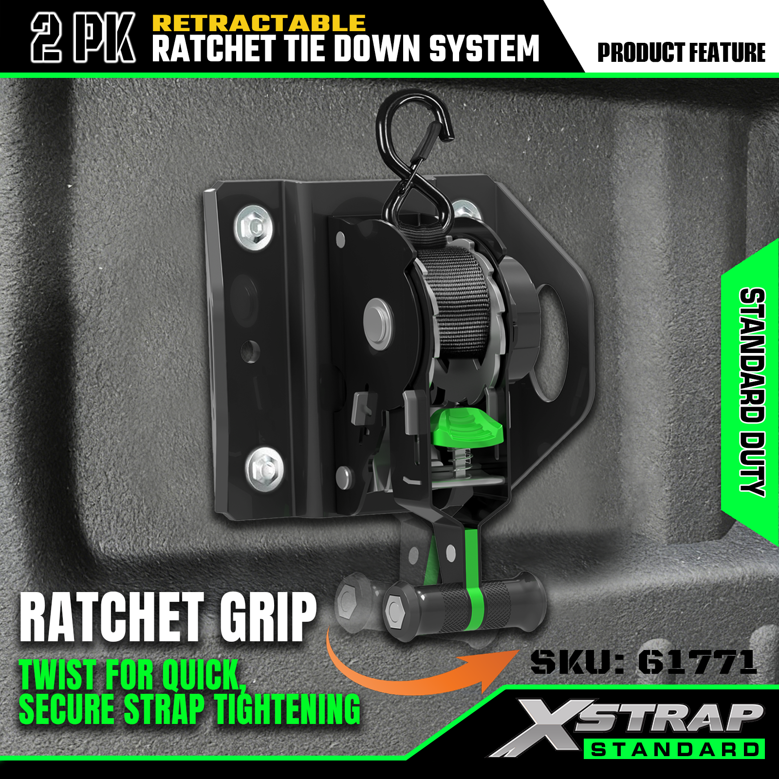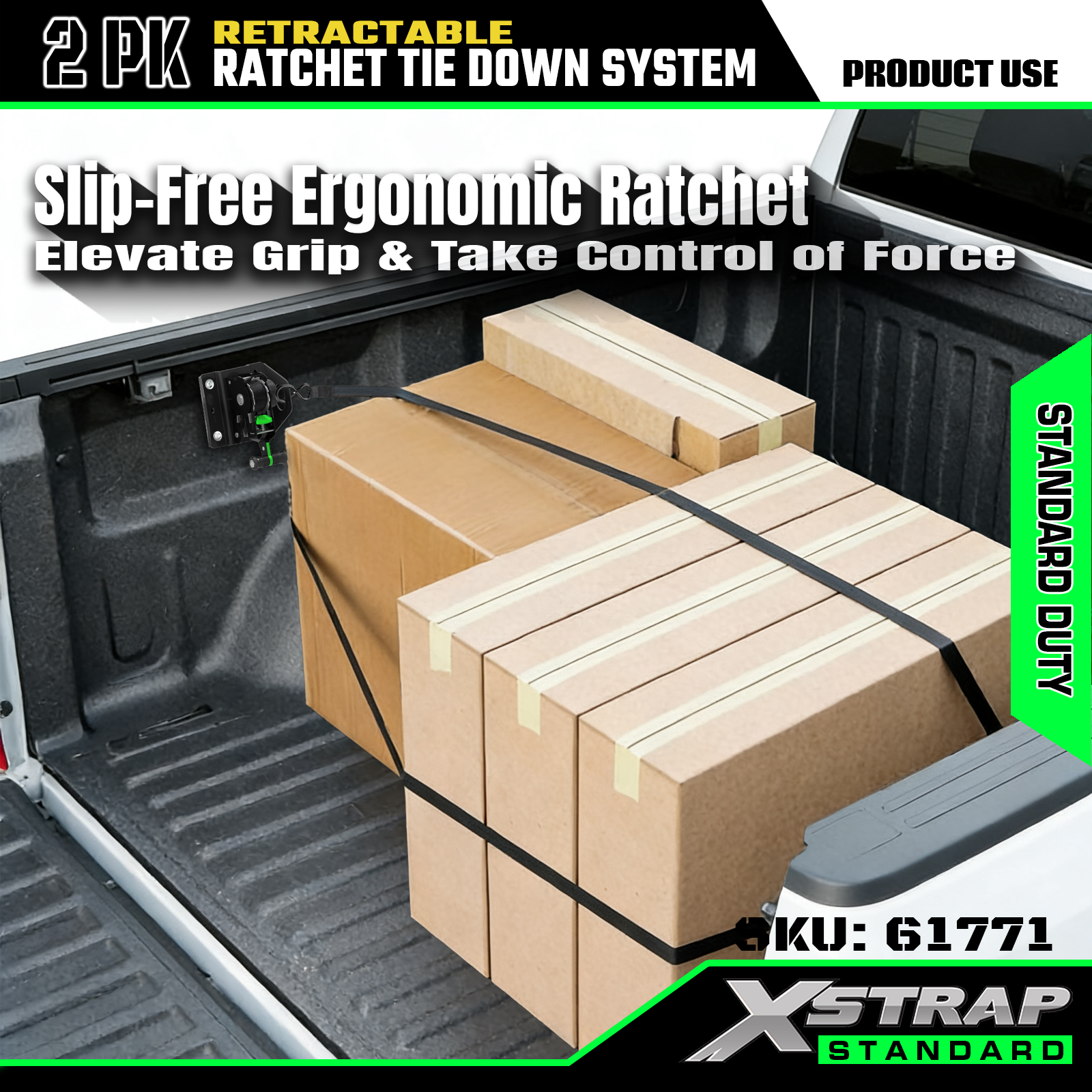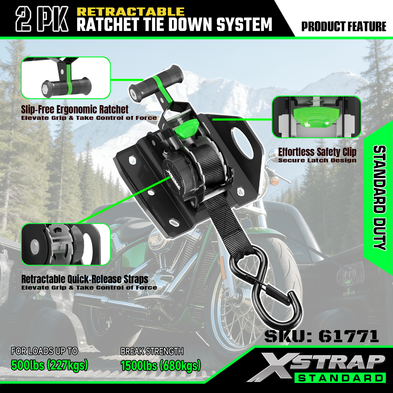 Xstrap 61771 প্রত্যাহারযোগ্য র্যাচেট স্ট্র্যাপগুলি F150 গাড়ির আনুষাঙ্গিক 500LB SWL এর জন্য ফিট করে