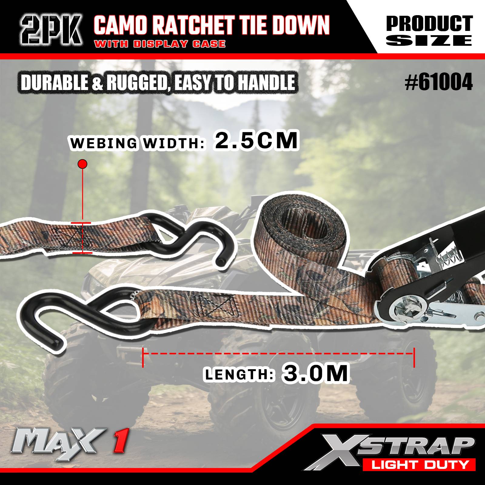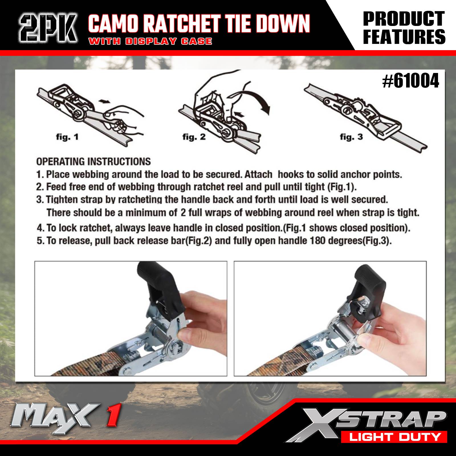 1” x 10’ 2PK ক্যামোফ্লেজ র্যাচেট টাই ডাউন