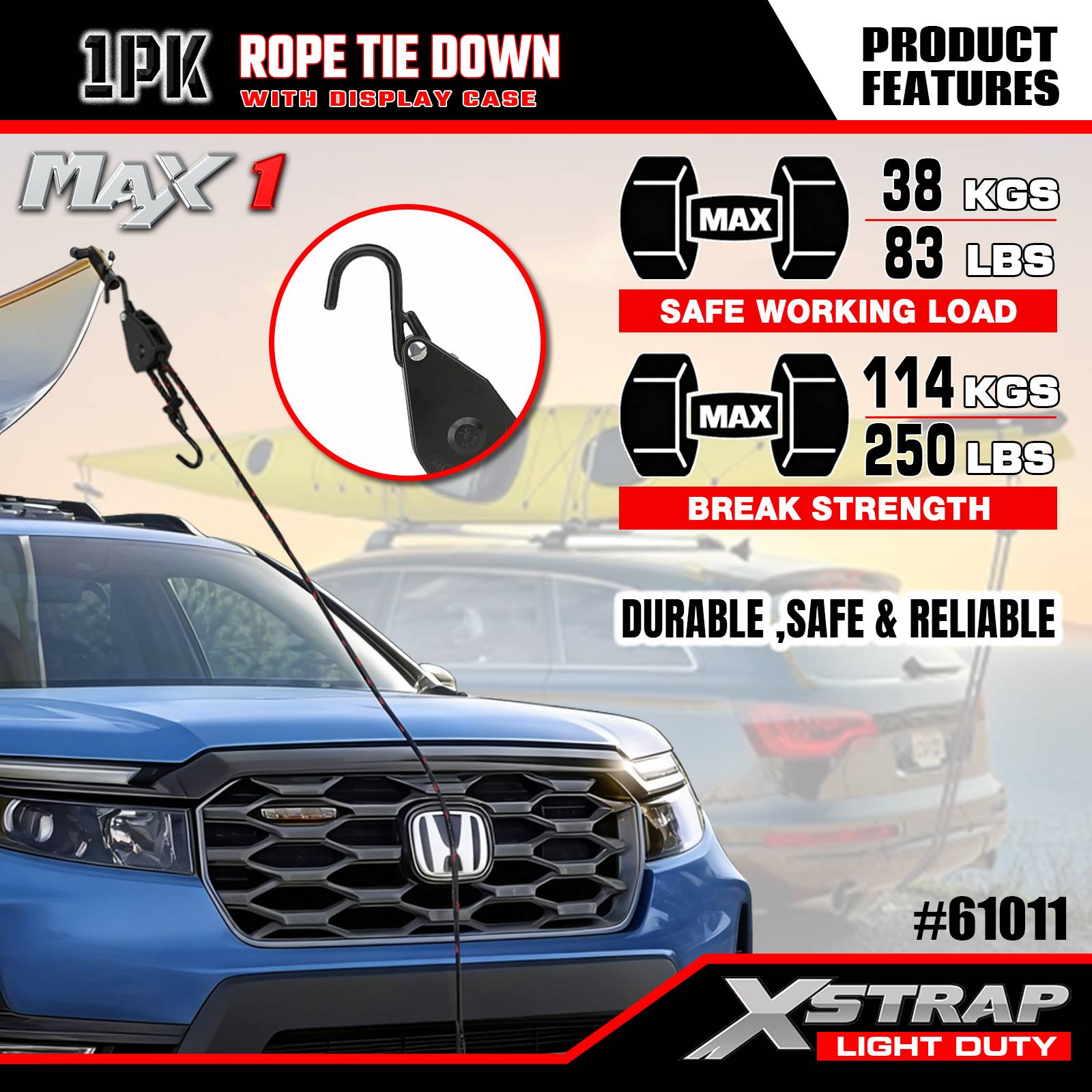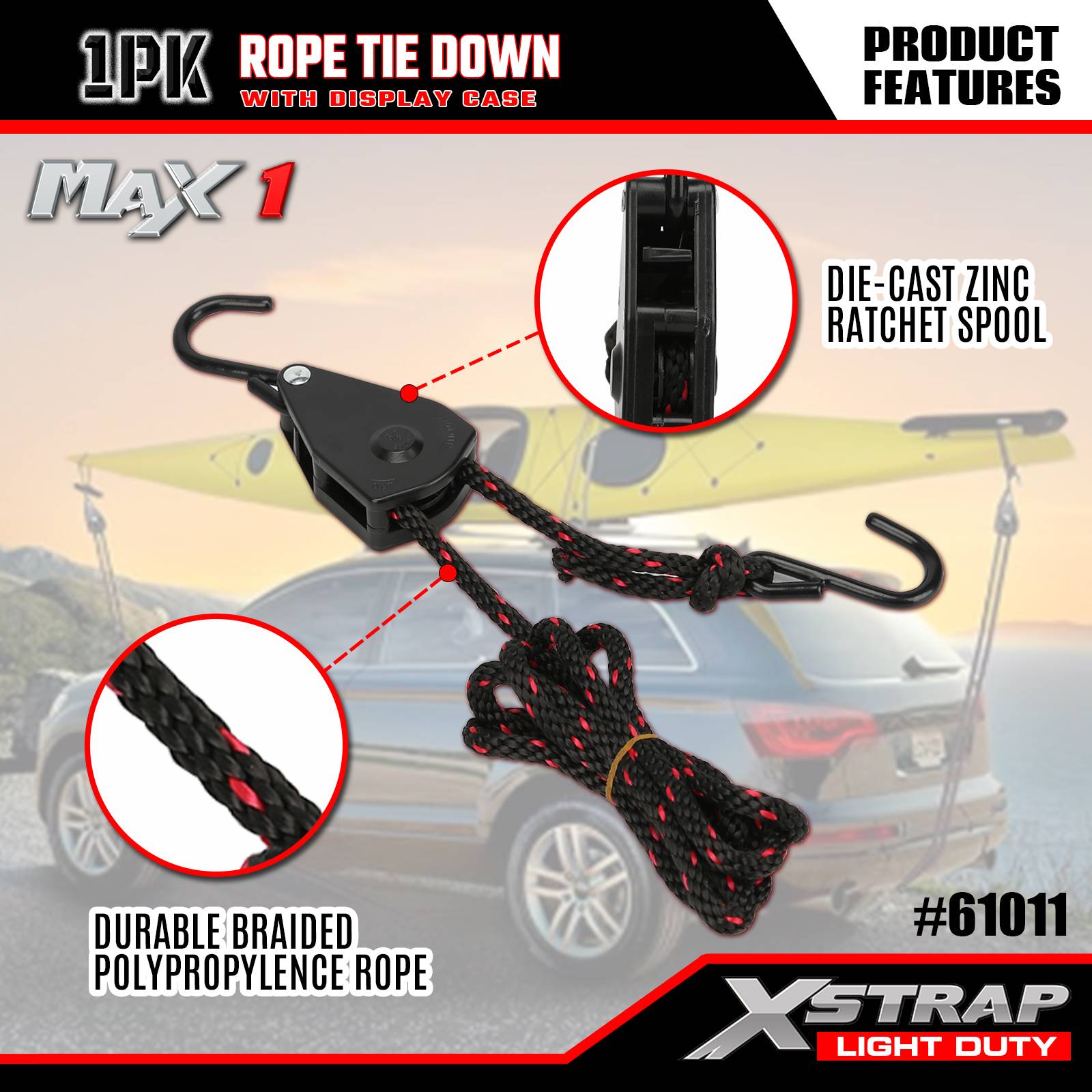 - সহজে-ব্যবহারযোগ্য জিঙ্ক র্যাচেট সিস্টেম: ডাই-কাস্ট জিঙ্ক র্যাচেট স্পুল মসৃণ, নির্ভরযোগ্য টান নিশ্চিত করে: কেবল দড়িটি শক্ত করার জন্য টানুন, তারপর নিরাপদ পরিবহনের জন্য র্যাচেটটিকে লক করুন। কমপ্যাক্ট র্যাচেট ডিজাইন এক হাত দিয়ে কাজ করা সহজ, এমনকি আঁটসাঁট জায়গায়ও।