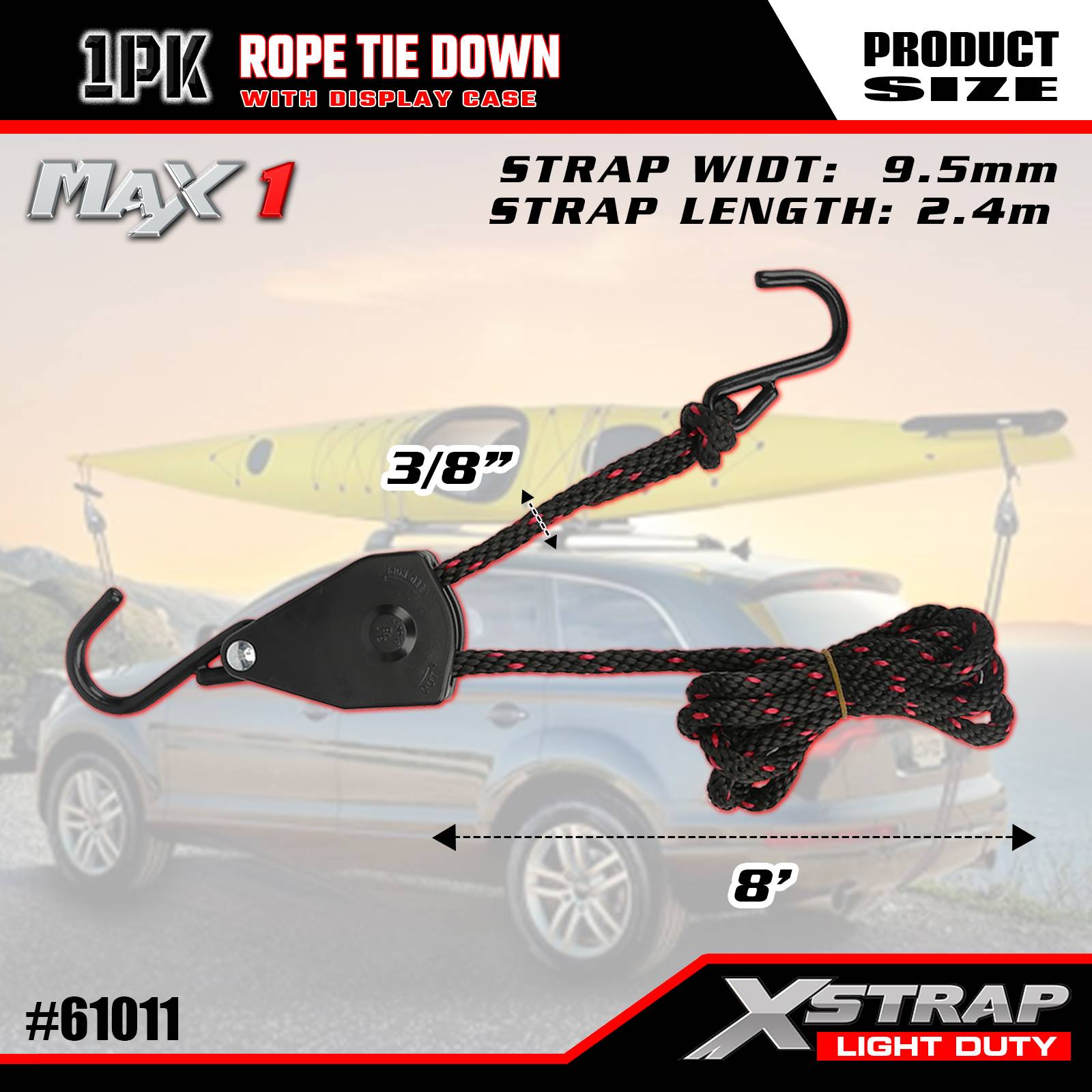 3/8" x 8' 1PK দড়ি টাই ডাউন স্ট্র্যাপ