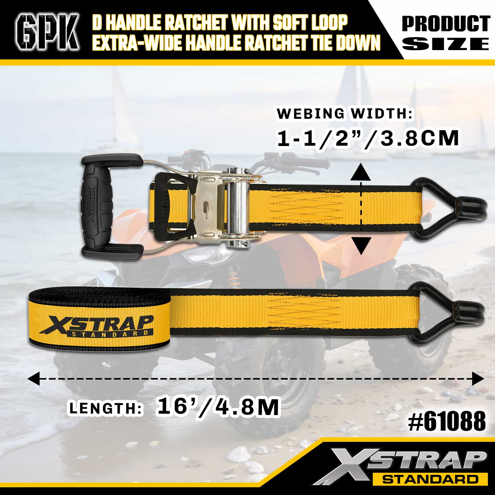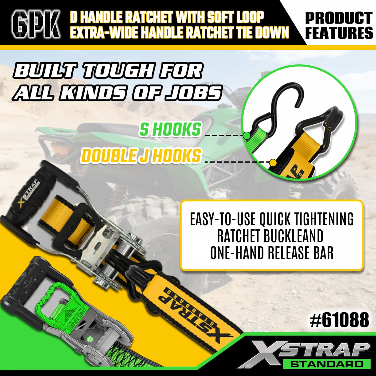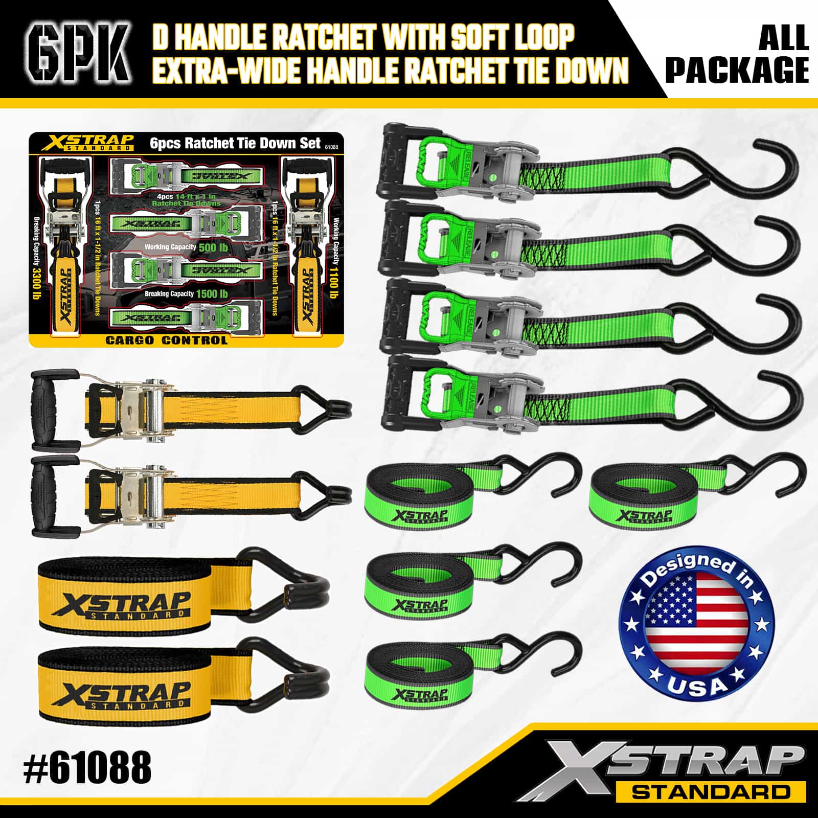 2PK 1” x 14’ D হ্যান্ডেল র্যাচেট সফট লুপ সহ এবং 6PK 1” x 16’এক্সট্রা-ওয়াইড হ্যান্ডেল র্যাচেট টাই ডাউন