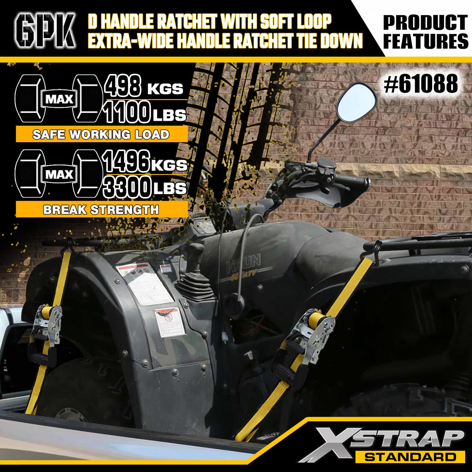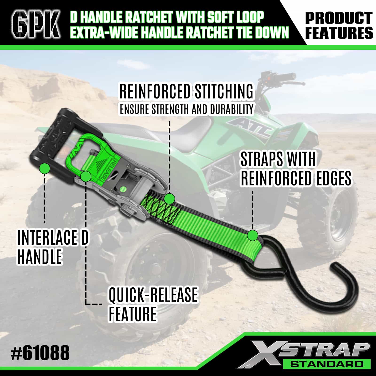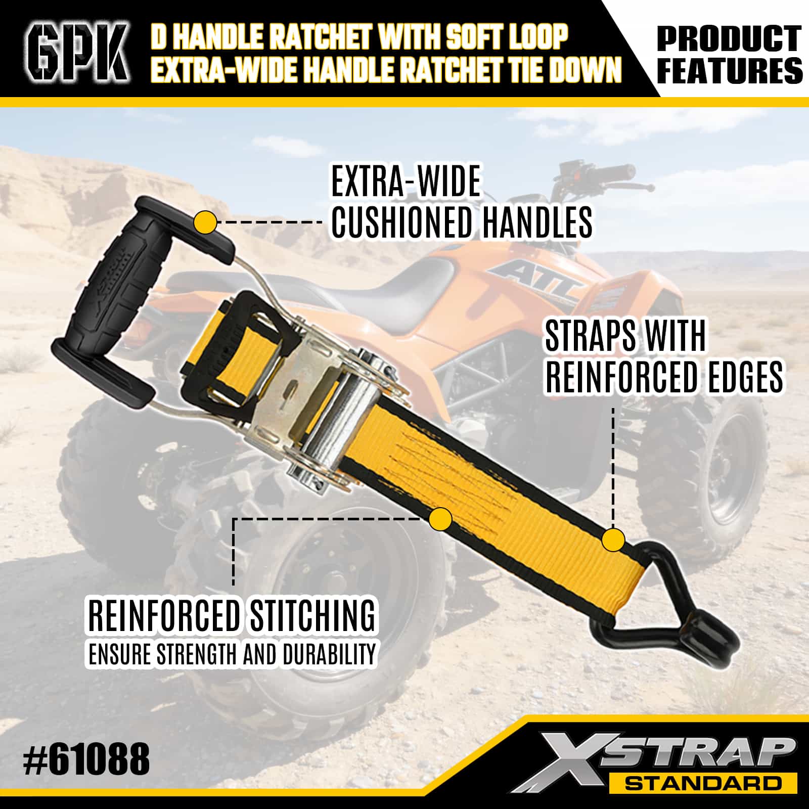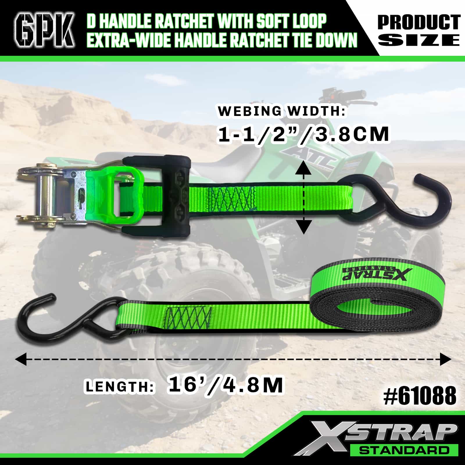 2PK 1” x 14’ D হ্যান্ডেল র্যাচেট সফট লুপ সহ এবং 6PK 1” x 16’এক্সট্রা-ওয়াইড হ্যান্ডেল র্যাচেট টাই ডাউন