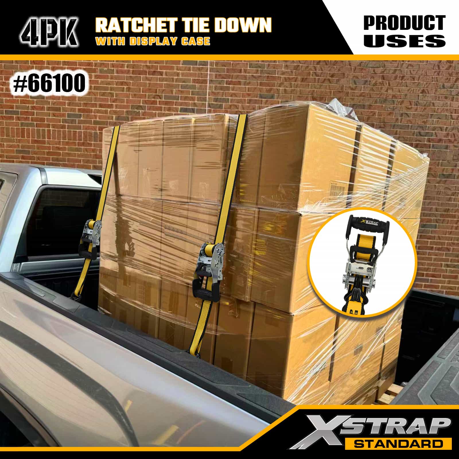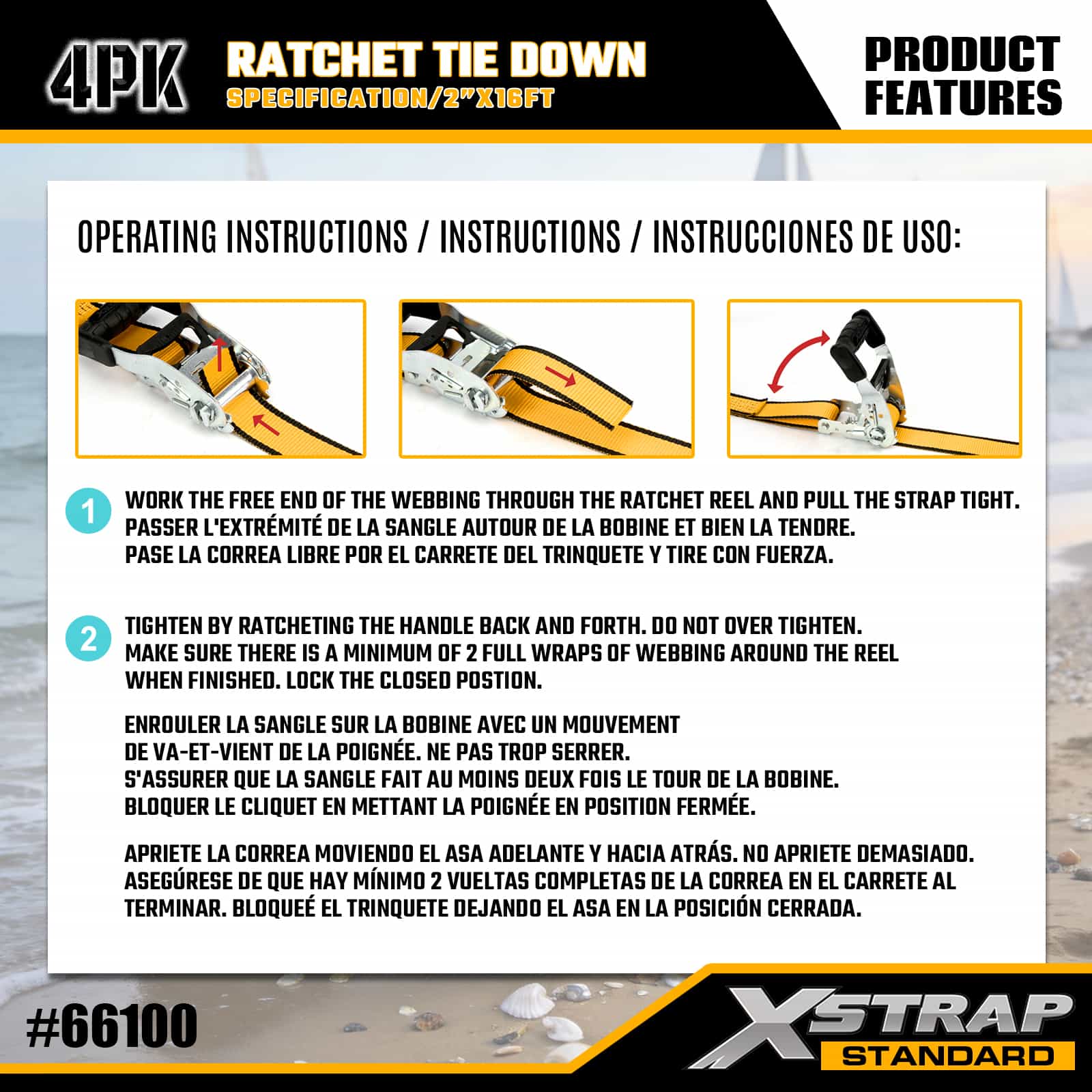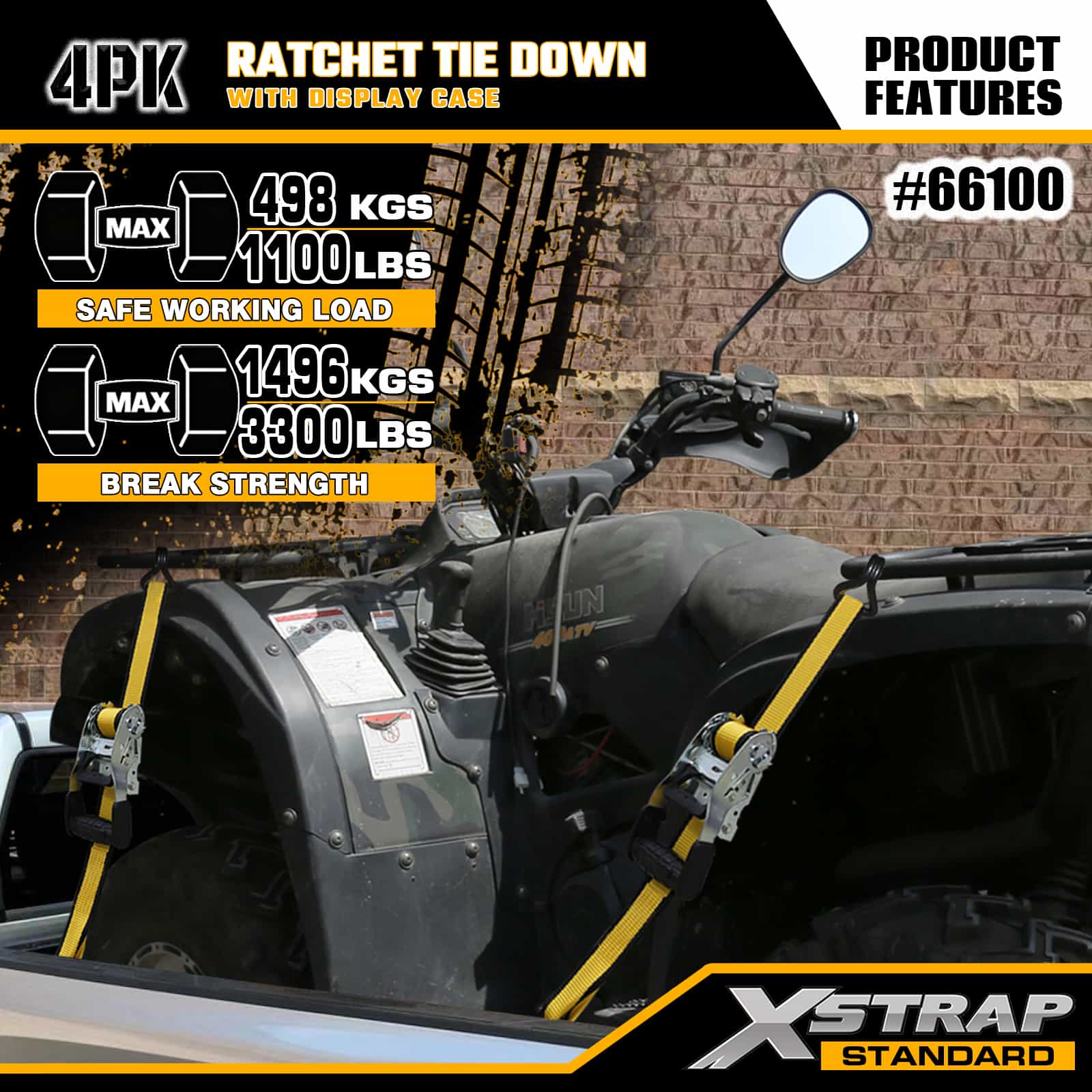 এক্সস্ট্র্যাপ 4 প্যাক র্যাচেট ডাবল জে হুকগুলির সাথে টাই ডাউন, 1-1/2" x 16’ পলিয়েস্টার টাই ডাউন স্ট্র্যাপ পুল র্যাচেট স্ট্র্যাপ, 1100lbs ক্ষমতাসম্পন্ন কার্গো ল্যাশিং সিকিউরিং স্ট্র্যাপগুলি পিকআপ ট্রাক, SUV, কার, মোটরসাইকেল, টপ জেটকি, এফ জেট র্যাকগুলির জন্য ডাবল জে হুক সহ স্নোমোবাইল, লন ট্রাক্টর।
