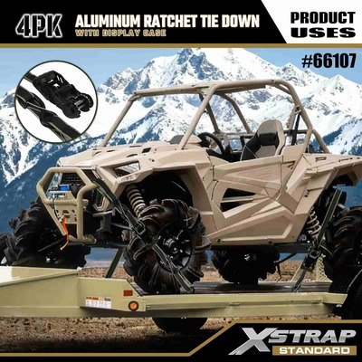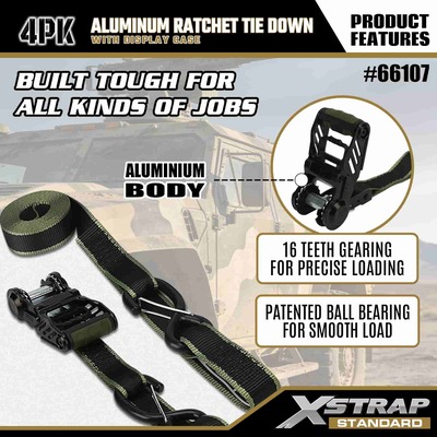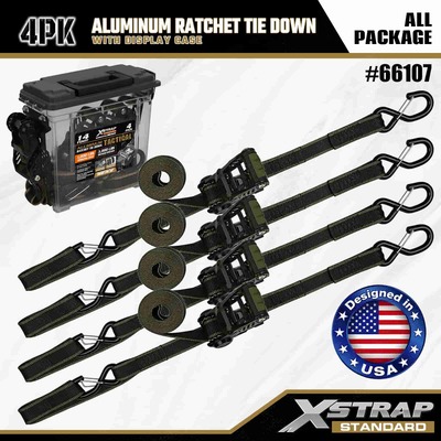 Xstrap 4 প্যাক অ্যালুমিনিয়াম র্যাচেট টাই ডাউন, 1-1/4” x 14’ পলিয়েস্টার টাই ডাউন স্ট্র্যাপ সহ সফট লুপ পুল র্যাচেট স্ট্র্যাপ, কার্গো কন্ট্রোল পিকআপ ট্রাক, র্যাকসাইকেল, টপ মোটরসাইকেল এর জন্য সেফটি এস হুক সহ 1000lbs ক্যাপাসিটি কার্গো ল্যাশিং সিকিউরিং স্ট্র্যাপ।
