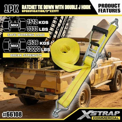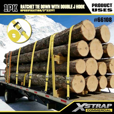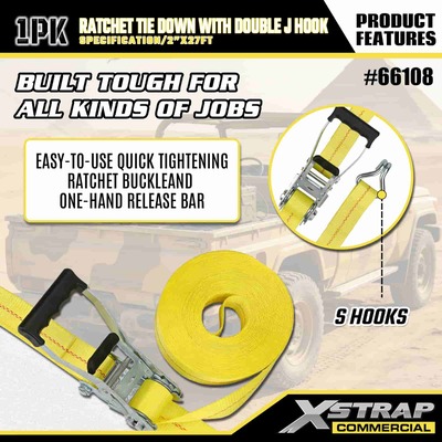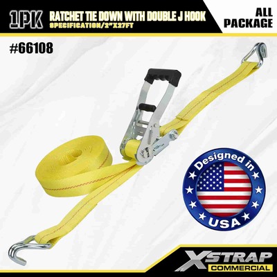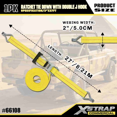 2” x 27’ র্যাচেট টাই ডাউন ডাবল জে হুক দিয়ে