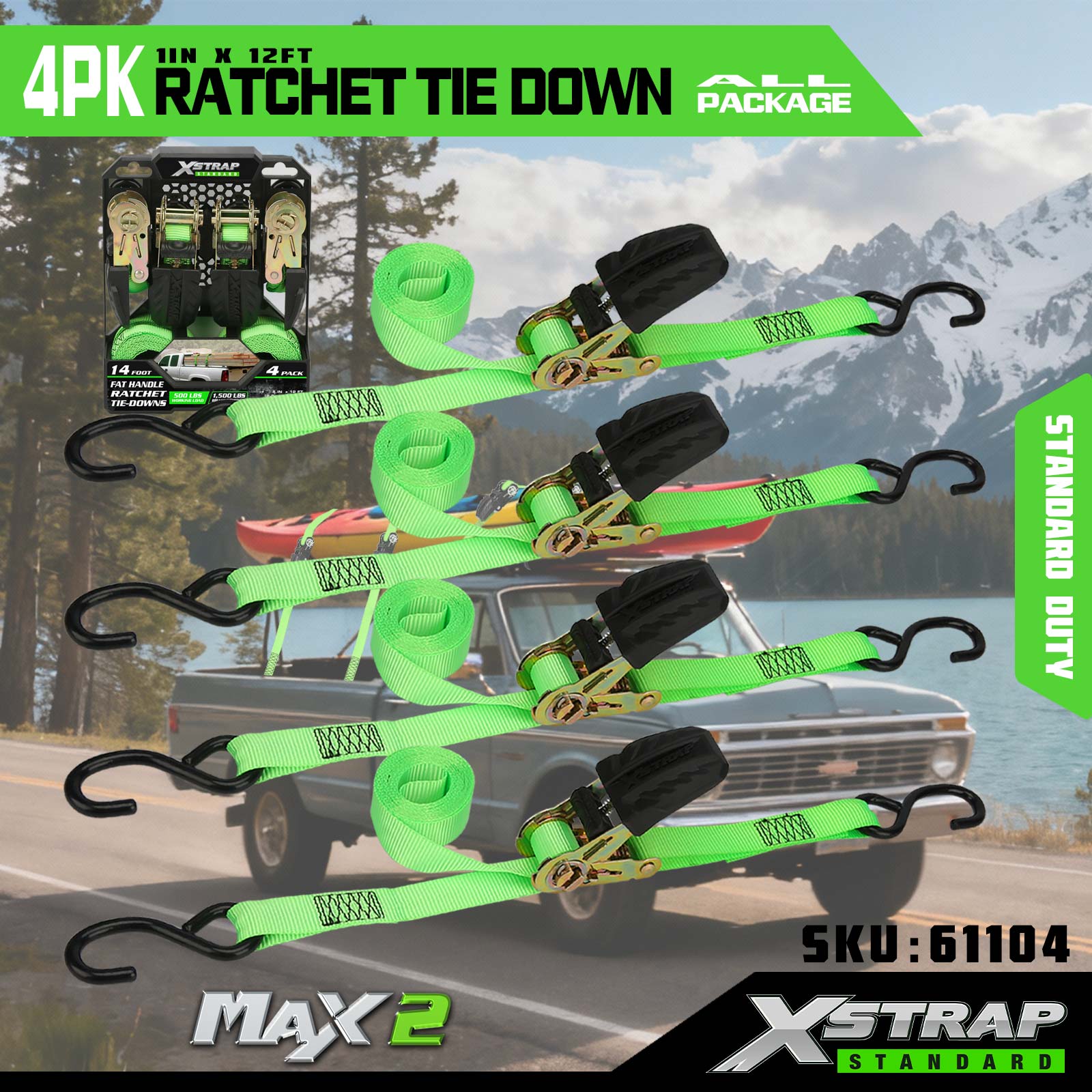 1” x 12’ 4PK র্যাচেট টাই ডাউন স্ট্র্যাপ