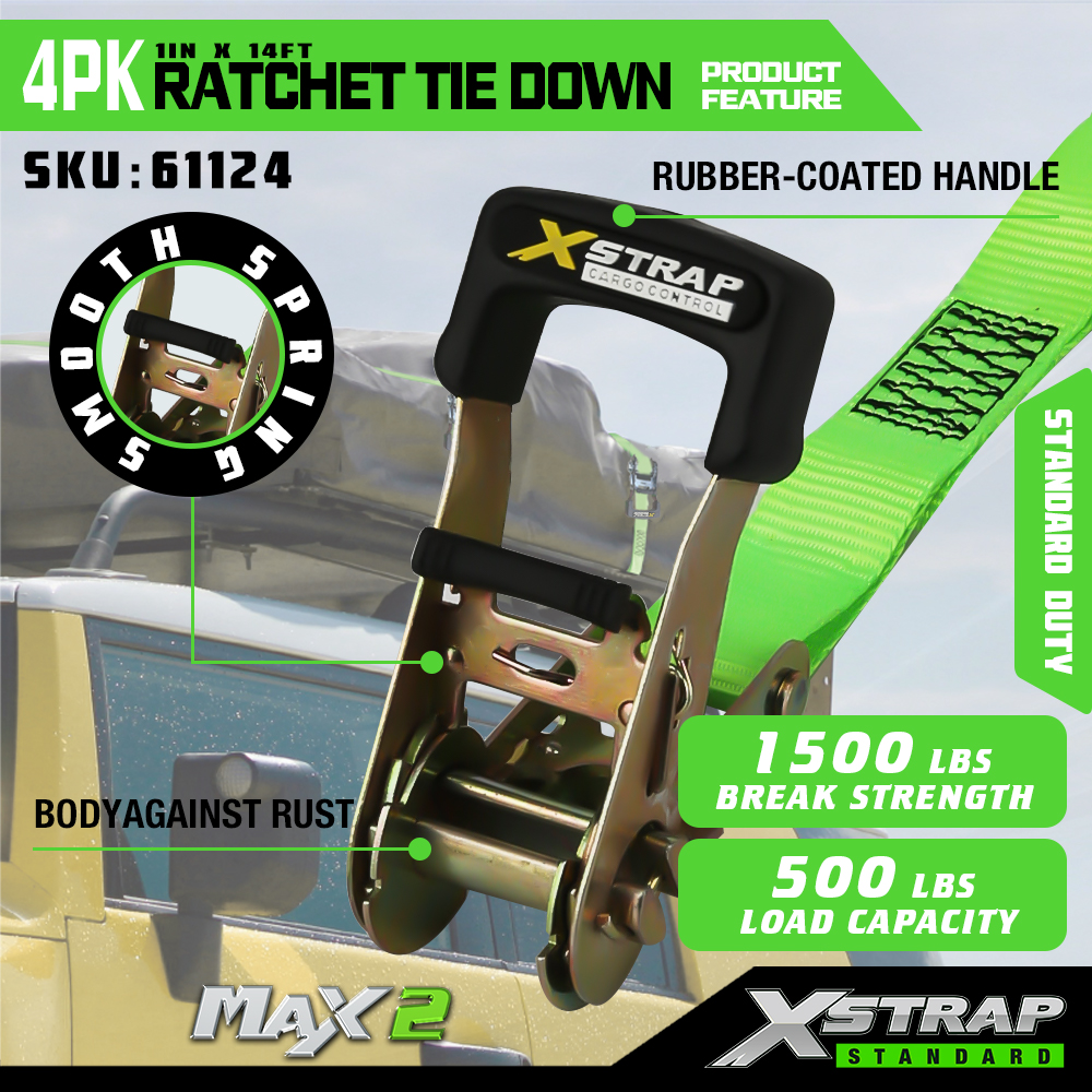 1” x 14’ 4PK র্যাচেট টাই ডাউন
